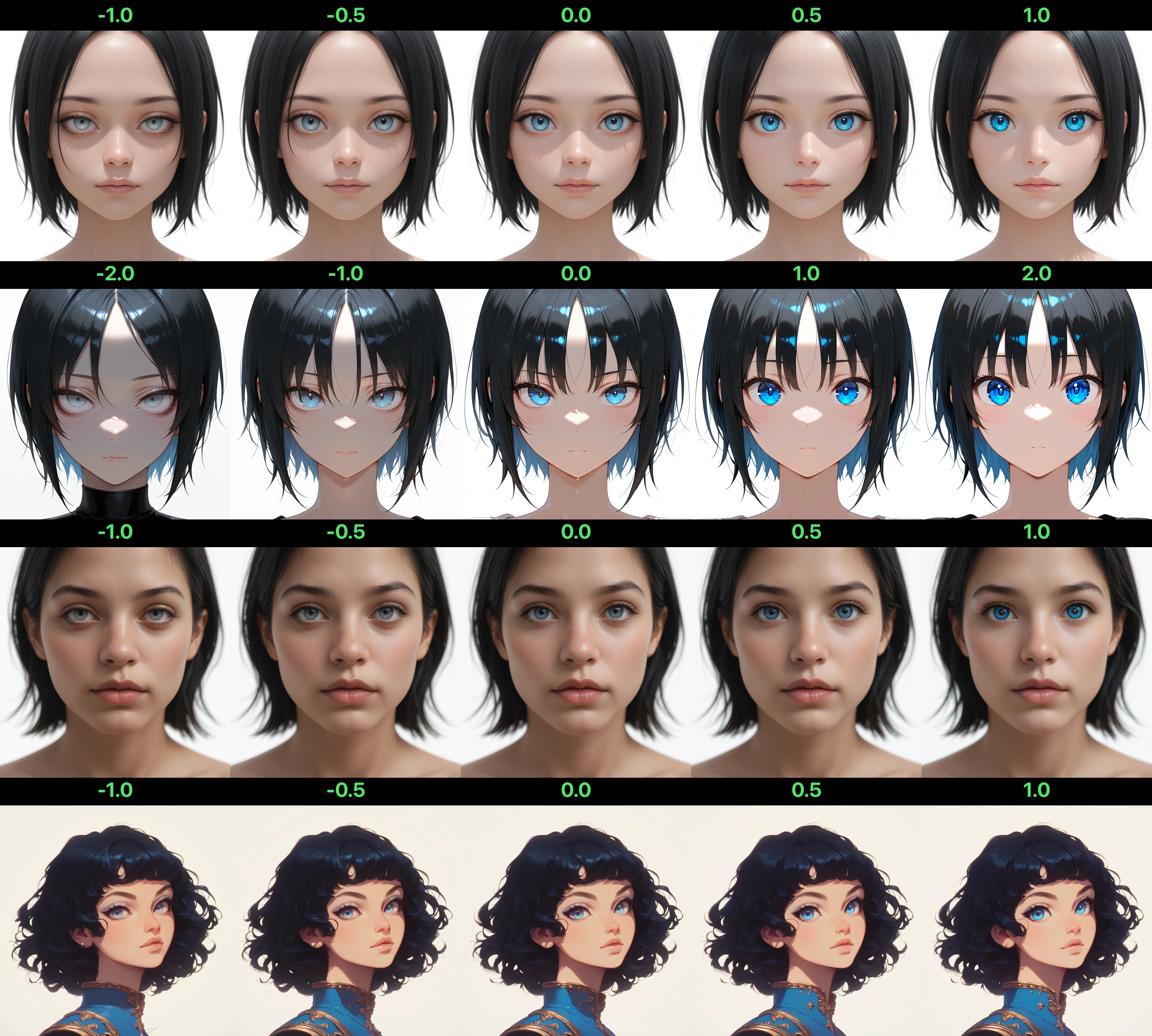 Slide Left (-): Softer, natural, or lower-detail eyes