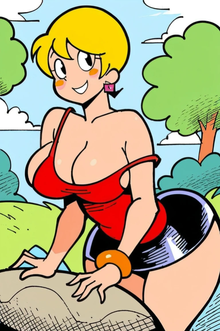 l0l1t4, blonde hair, short hair, black eyes, blush stickers, earrings