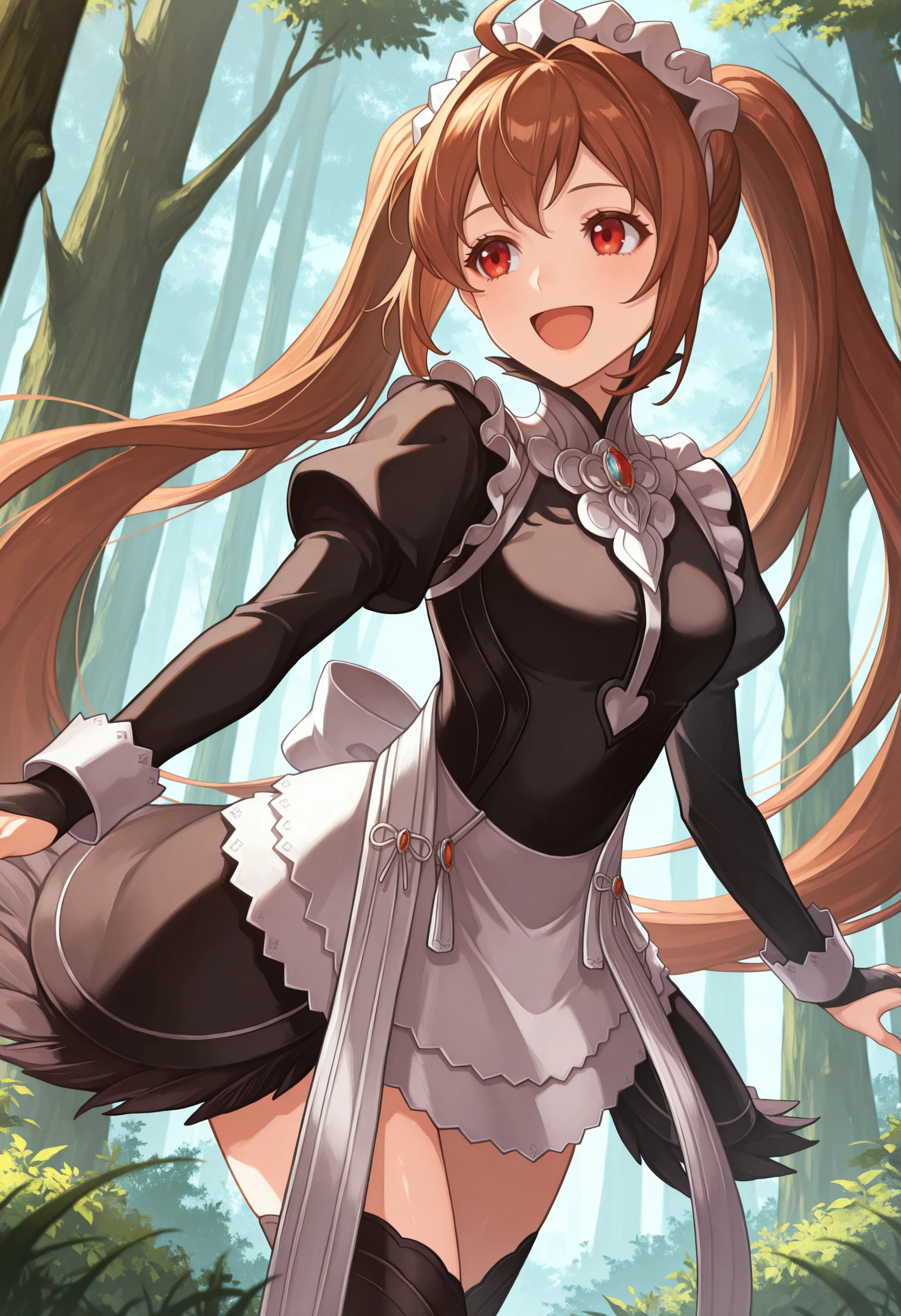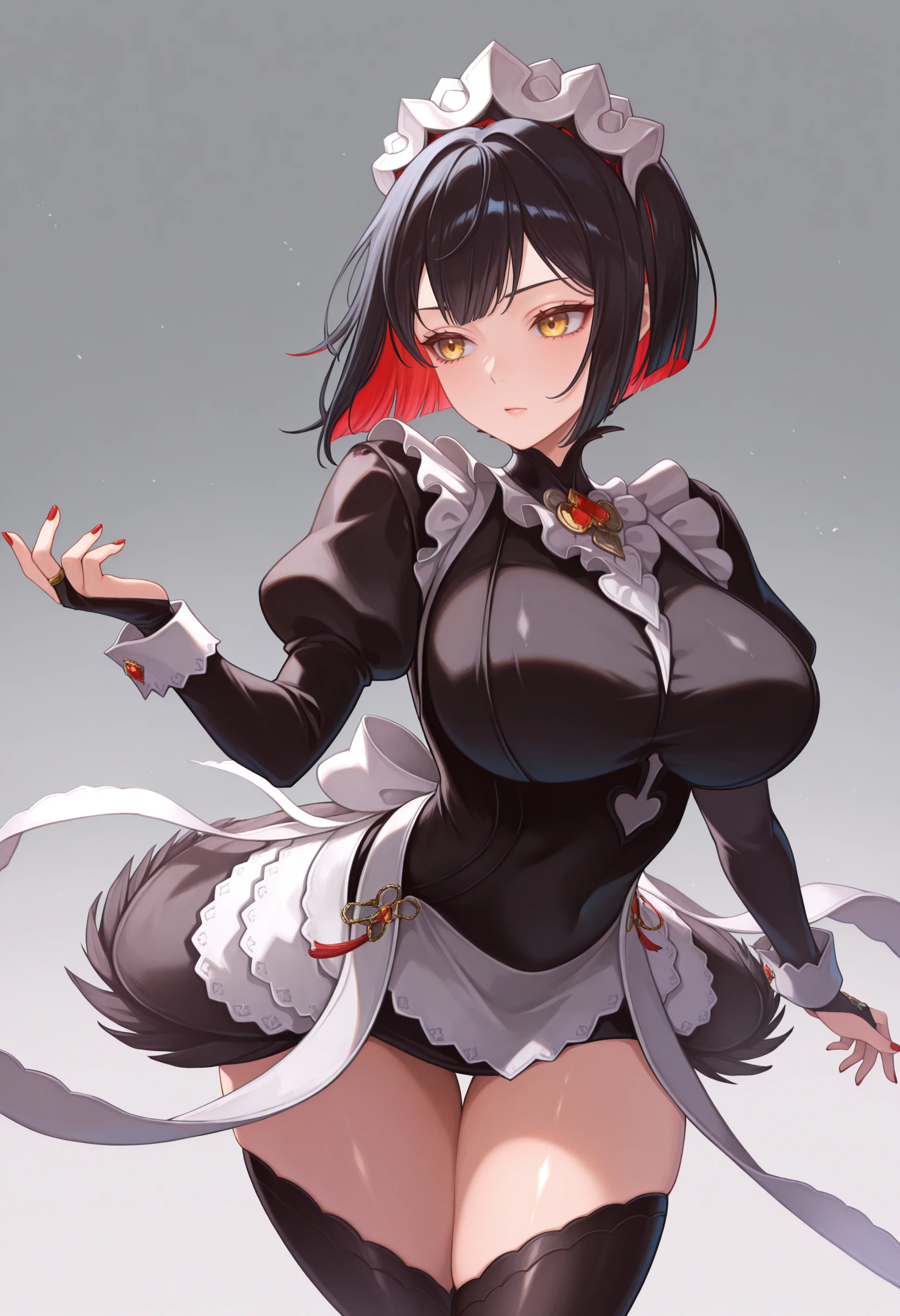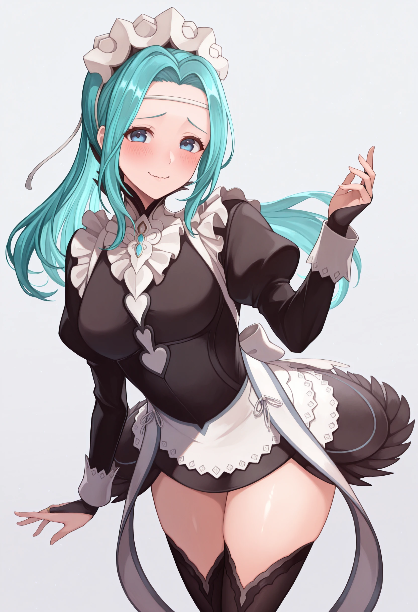 ftsmd, maid headdress, maid apron, black dress, bridal gauntlets, black thighhighs, long sleeves, juliet sleeves
