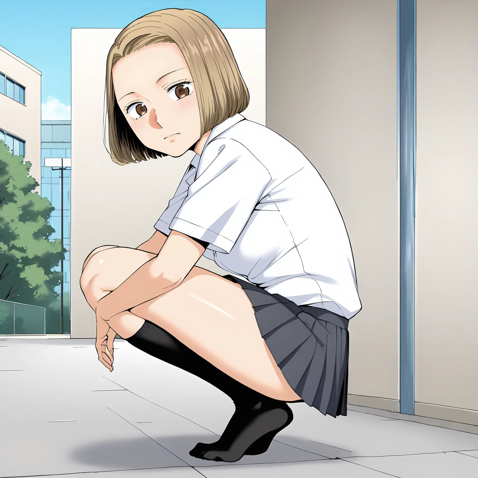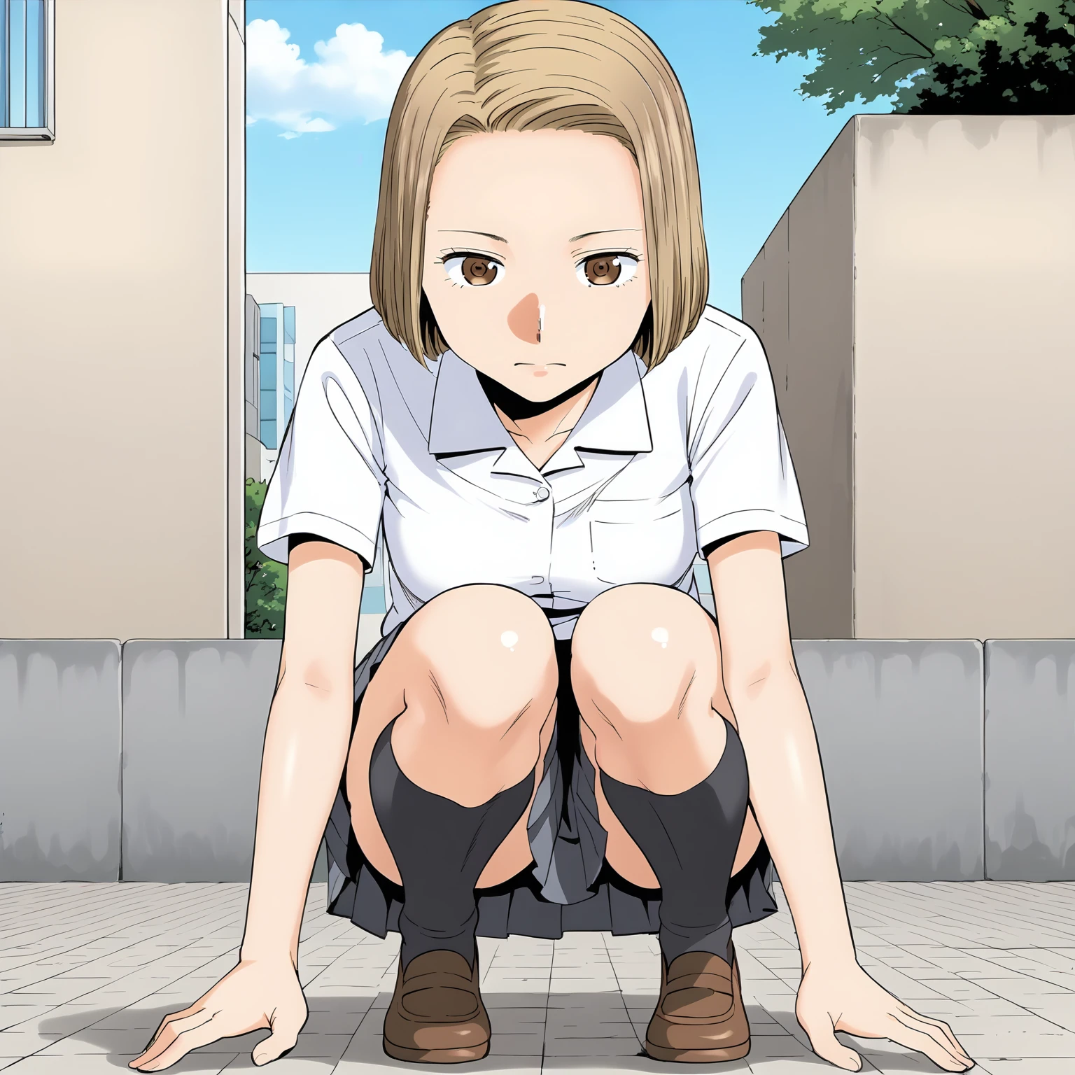 TomonoNiiyama,1girl,blonde hair,bob_cut,forehead,brown eyes, medium breasts,