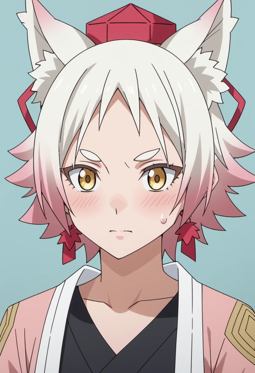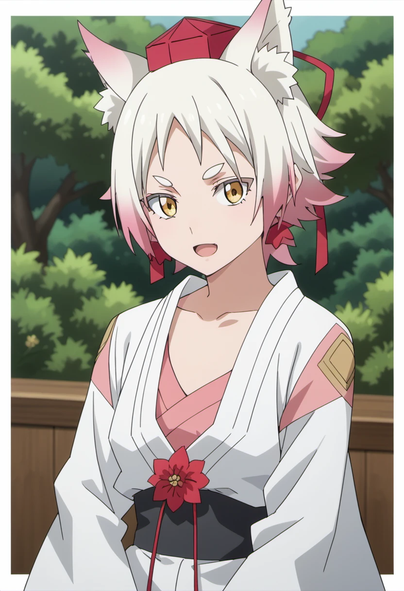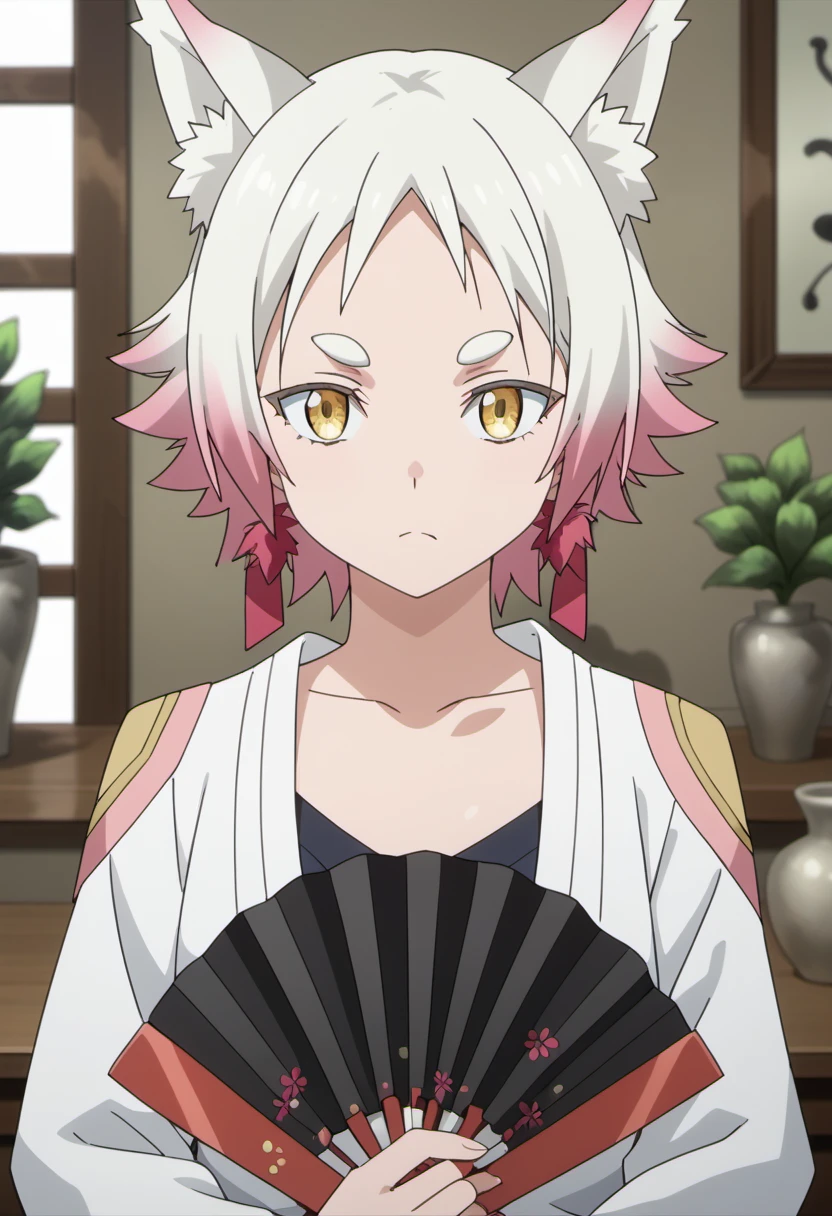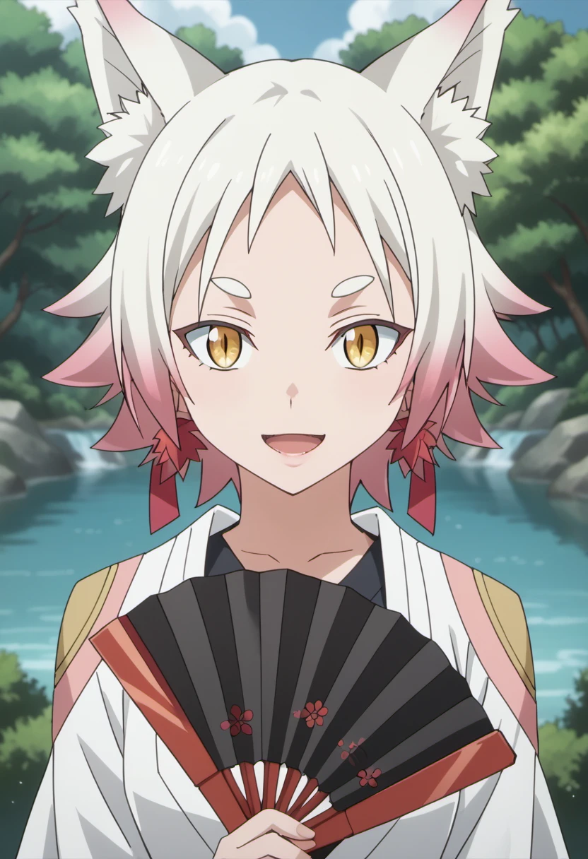 Trigger Words: momiji (tensura), white hair, short hair, animal ears, yellow eyes, pink hair, multicolored hair, two-tone hair