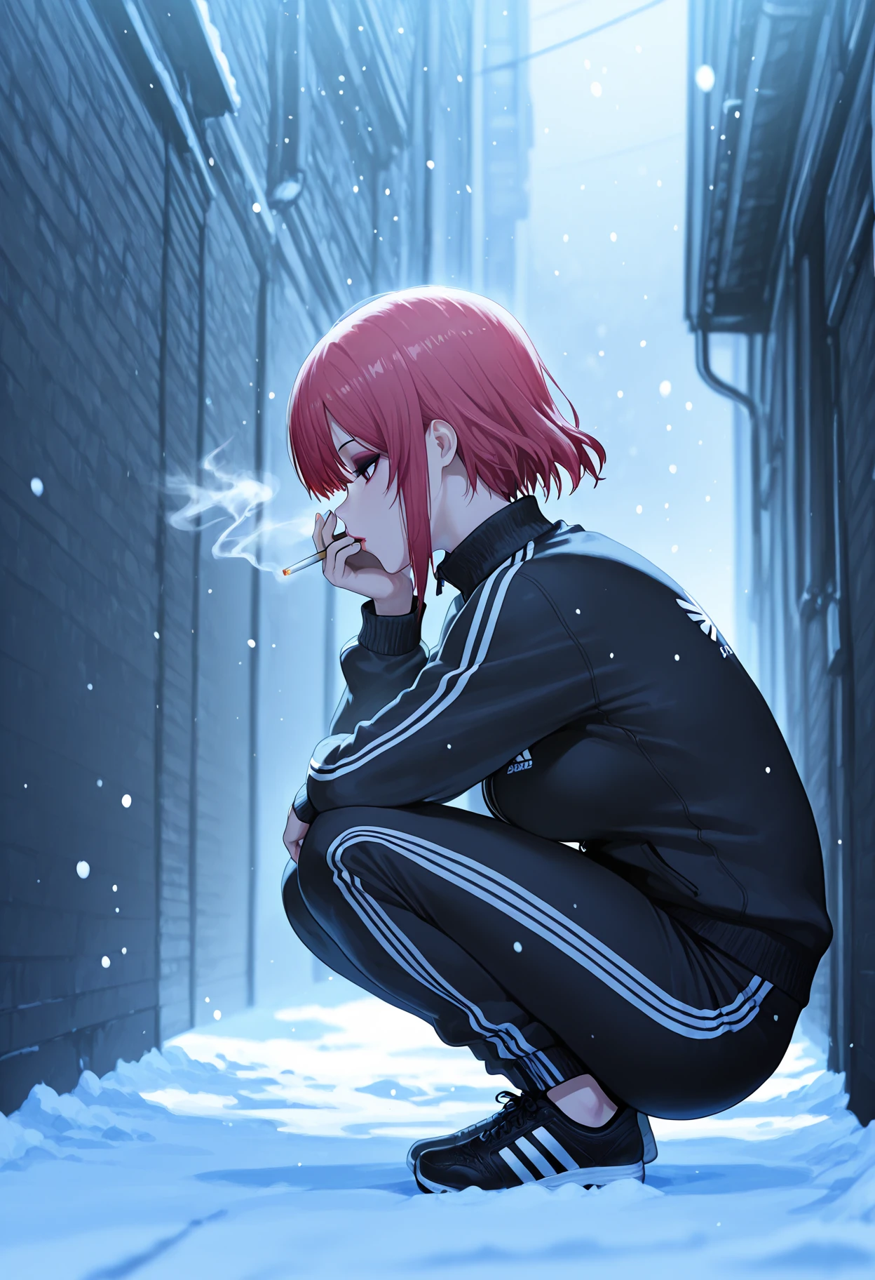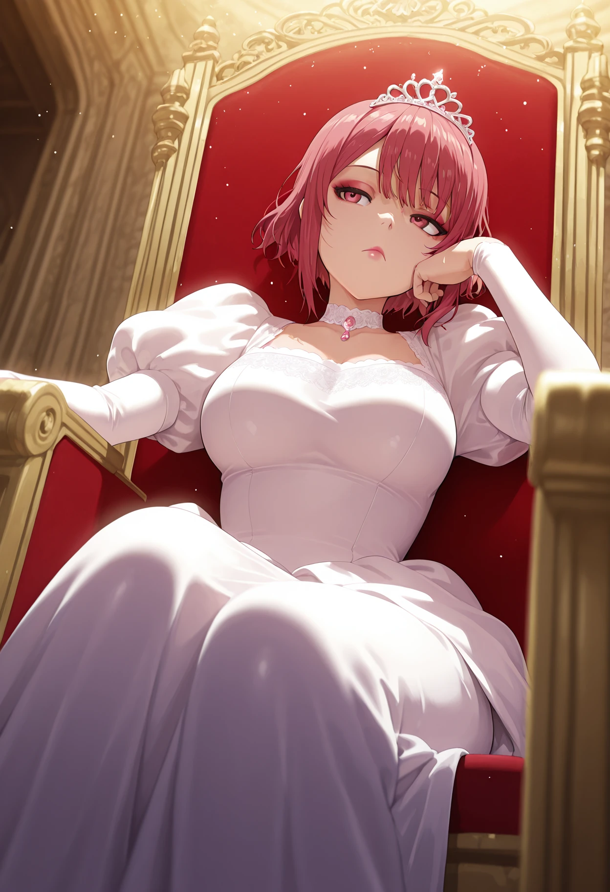 Character: 'tsujinaka-miho, pink eyes, pink hair, eyeshadow, lipstick'