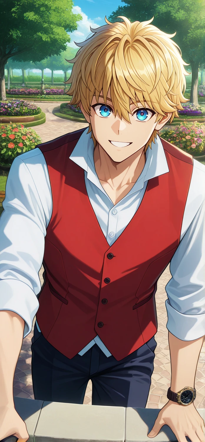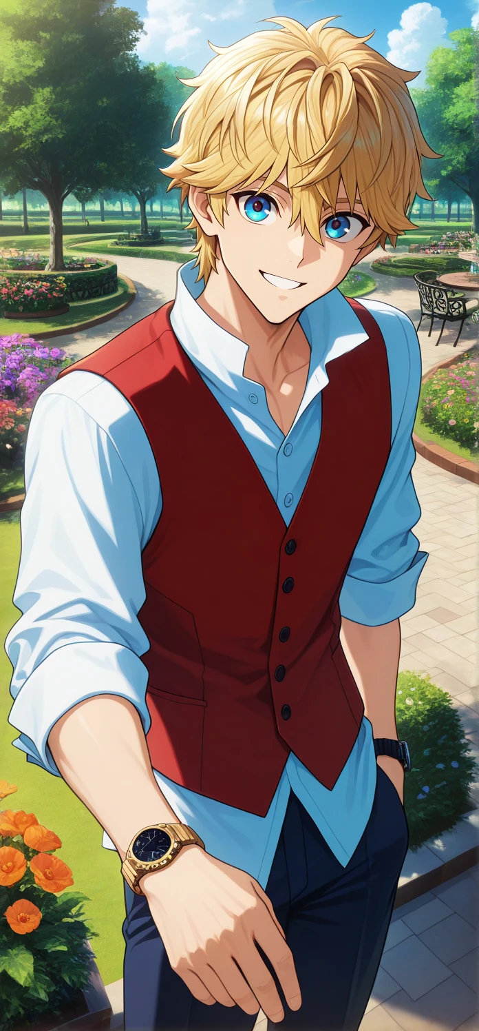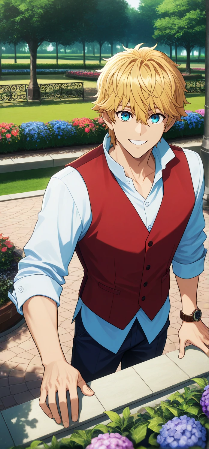 Trigger words: flatescardos,blonde hair,short hair,blue eyes,hair between eyes
