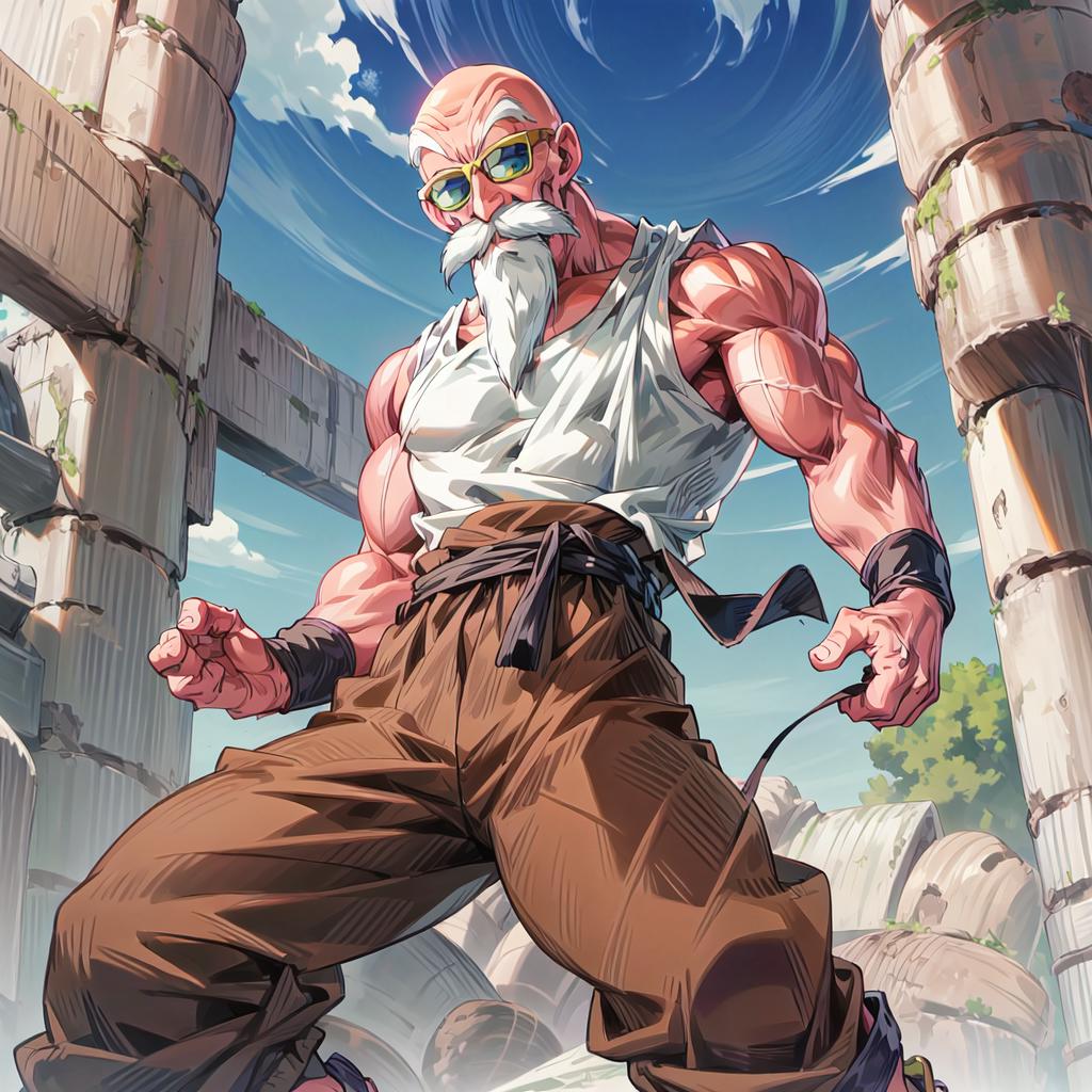 About the LoRA, his appereance is muten roushi, old man, black eyes,bald, facial hair, beard, mustache, white hair. That's it, you can make the Max Power form with muscular male . As always, I'll leave examples in the gallery, I didn't inpaint anything so there's always room for improvement. All the pictures are made with weight 1. The source is sometimes old, so I recommend using hires with 0.3-0.5 denoise depending on the model, buuuuuut, at 0.5 sometimes it makes things that shouldn't be there, like double eyebrows from the wrinkles on his forehead, which I can't fix because I lose the orange jacket, but it almost never happens.