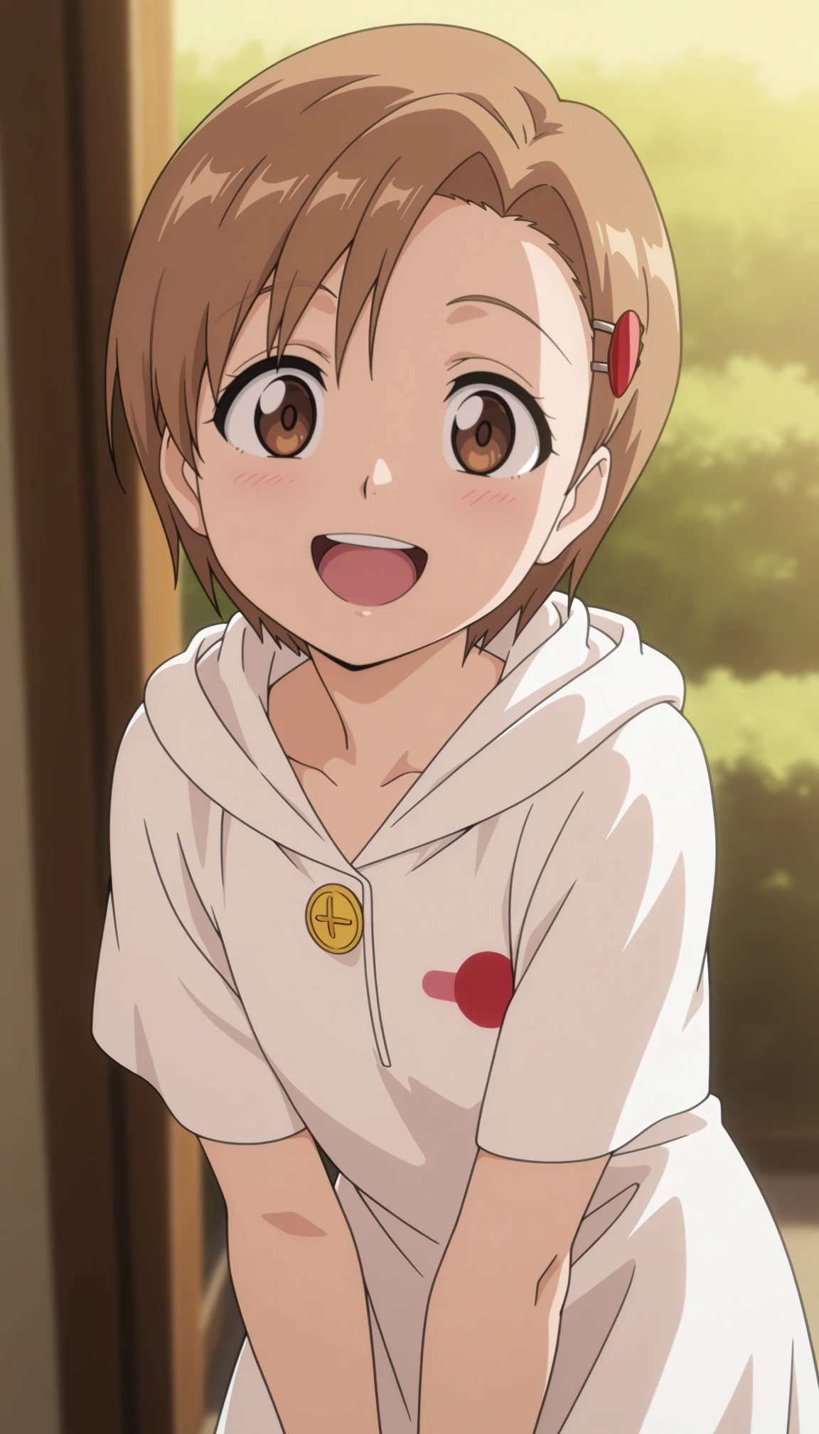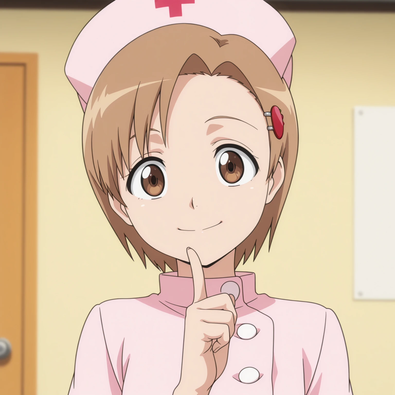 yuzu, 1girl, short hair, brown eyes, brown hair, hairclip, hair ornament,
