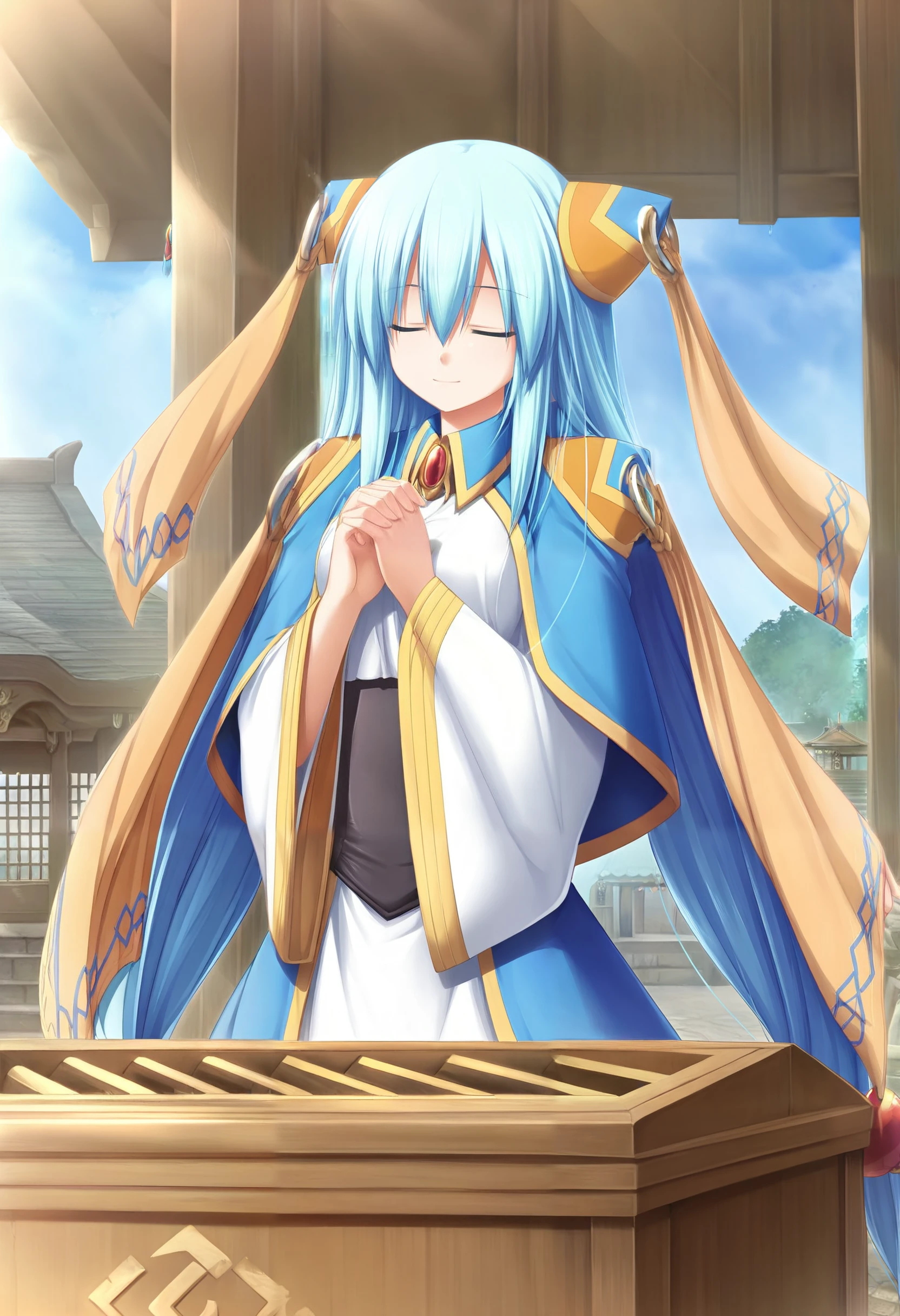 + Main descriptions: score_9, source_anime, KAM_Eliza, 1girl, solo, blue hair, blue eyes, angel wings, halo, large breasts