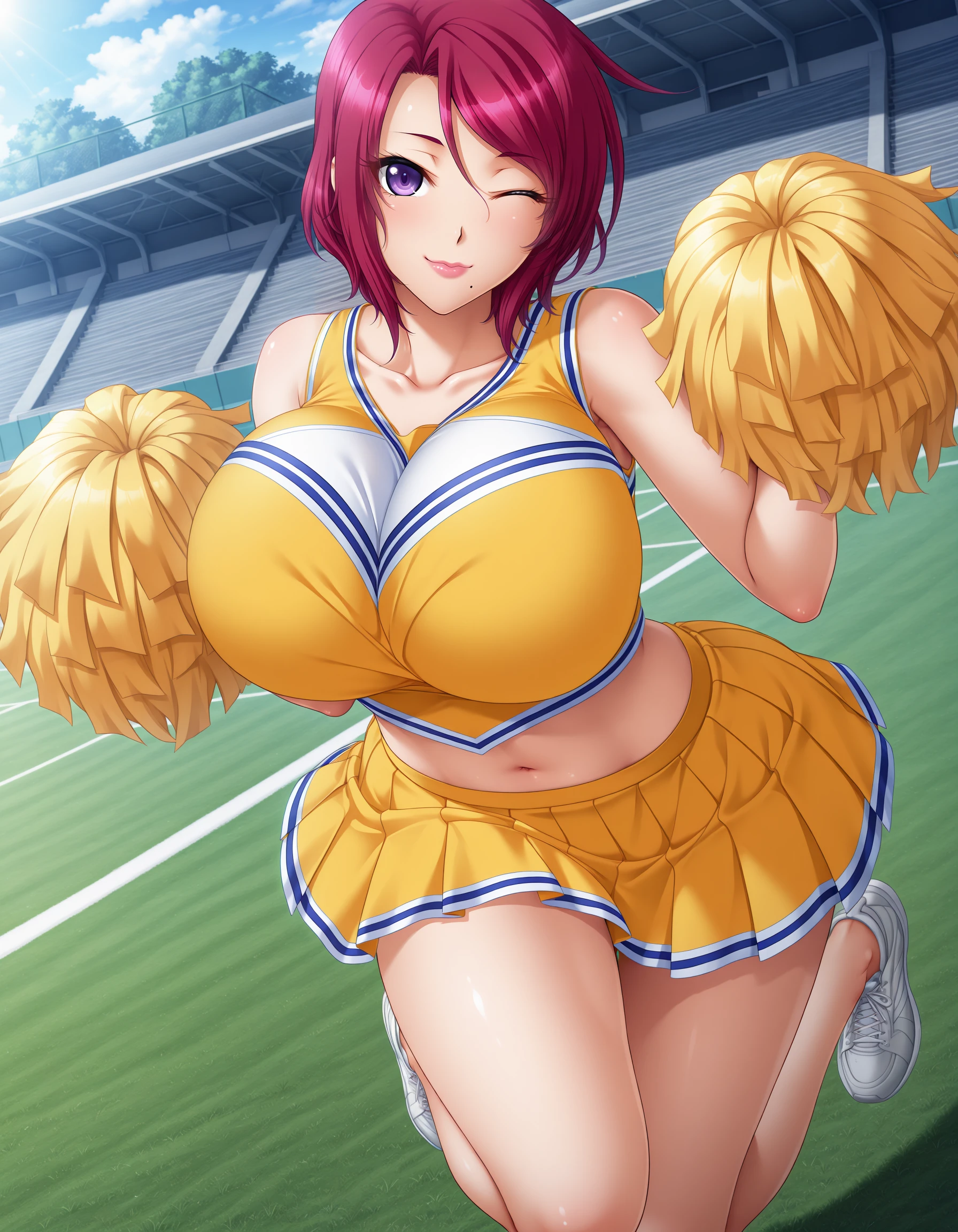cheerleader_outfit, yellow shirt, crop top, yellow skirt, pleated skirt