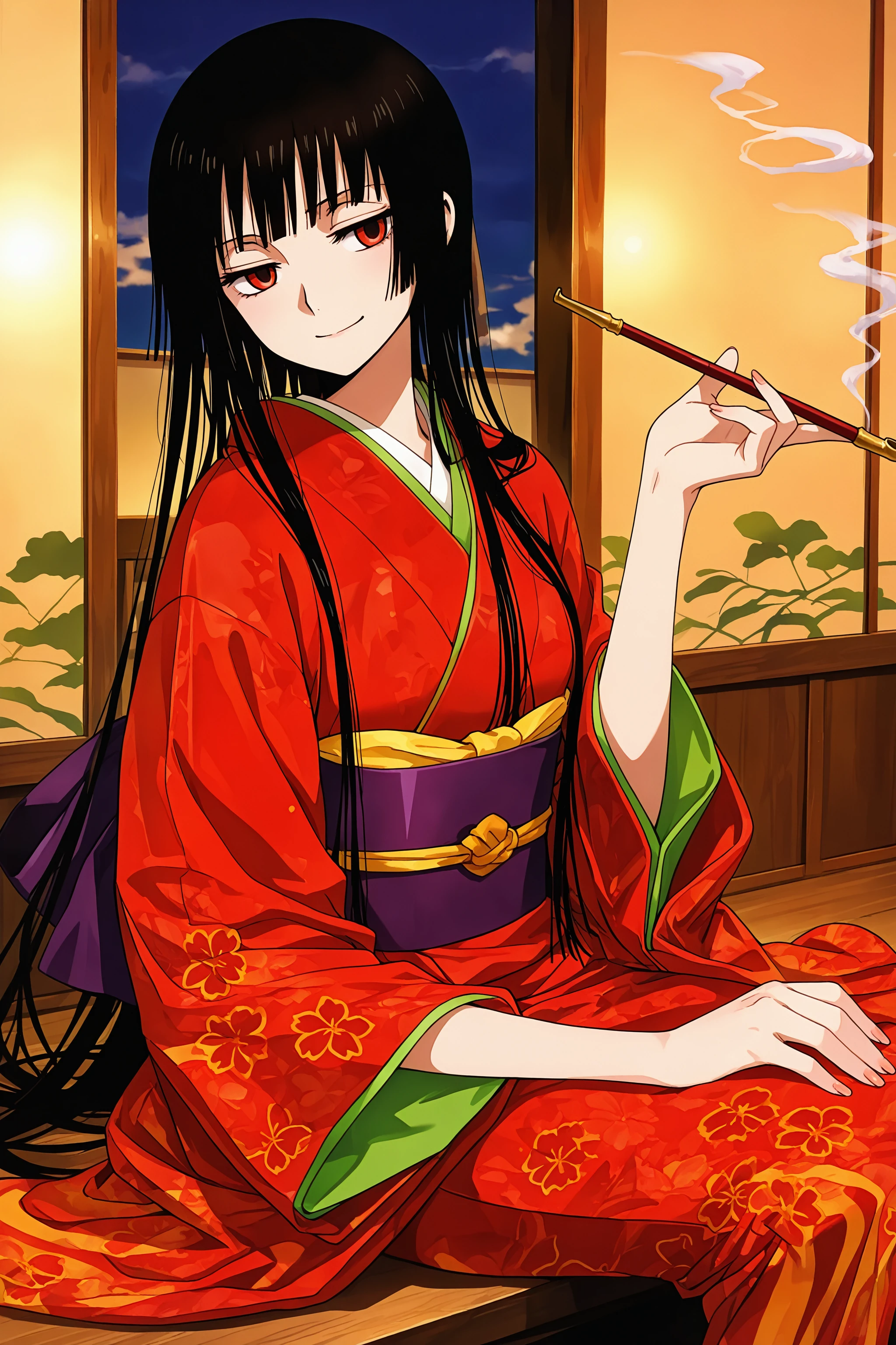 1girl yuuko ichihara, black hair, red eyes