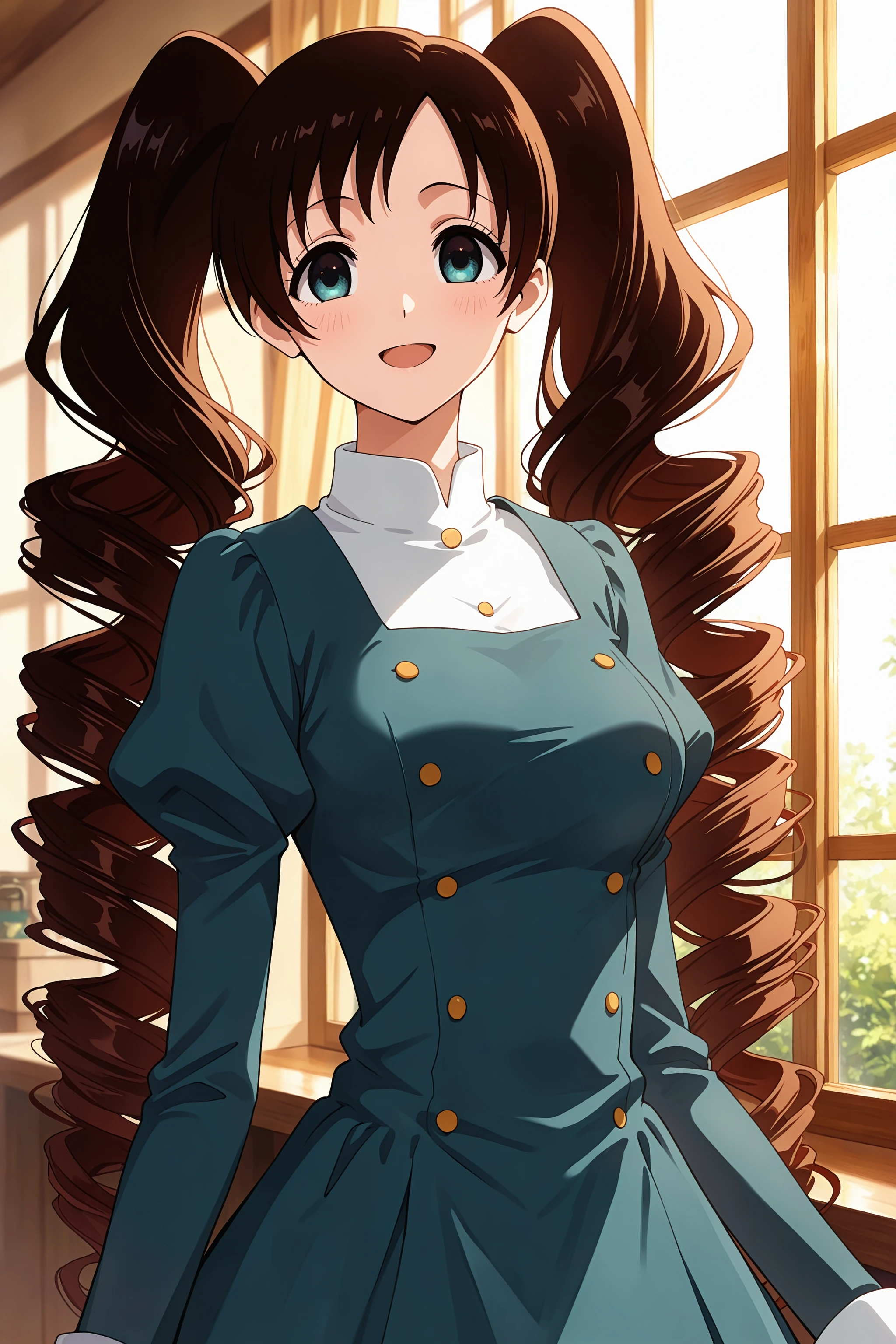 1girl himawari kunogi, twin drills, black hair
