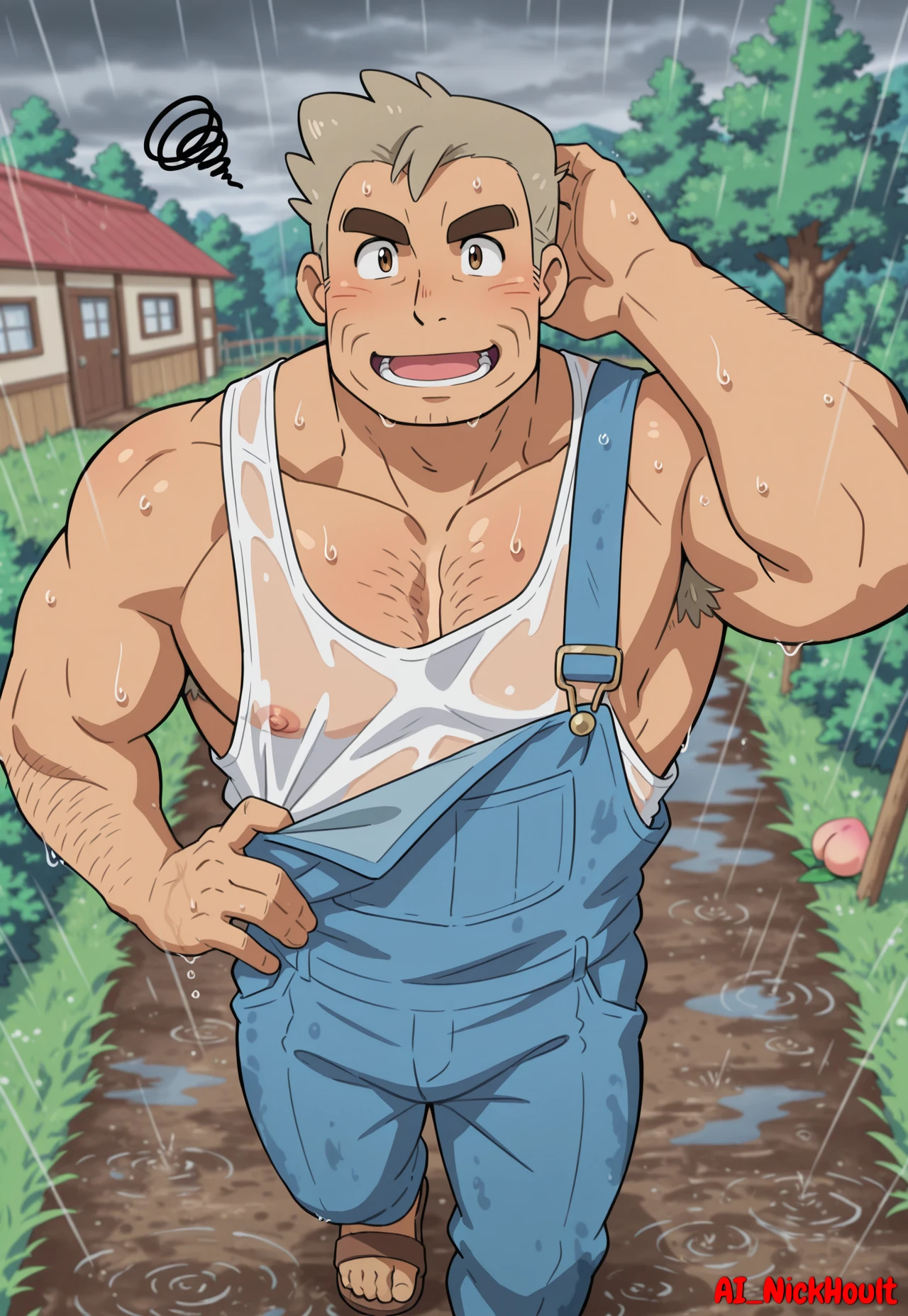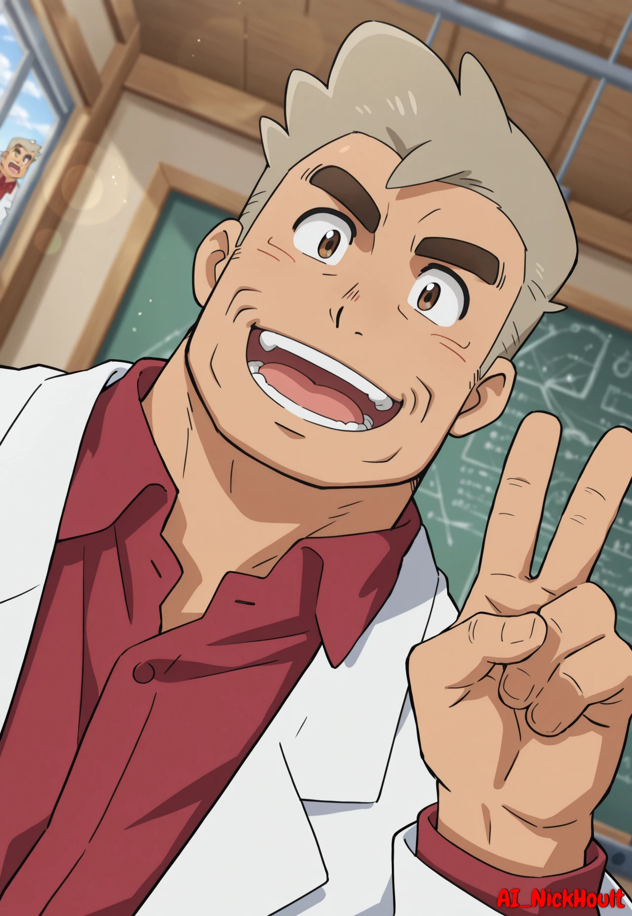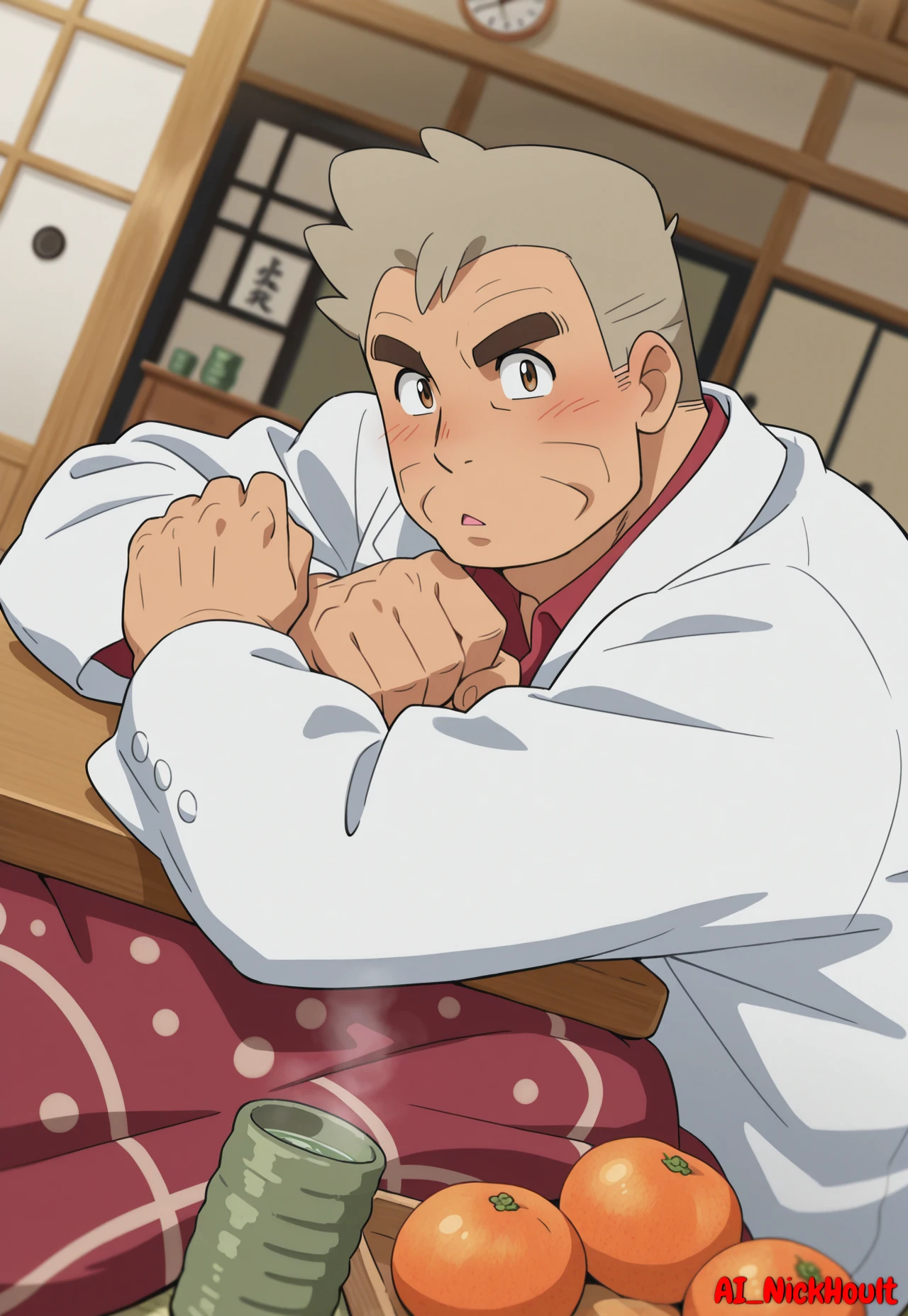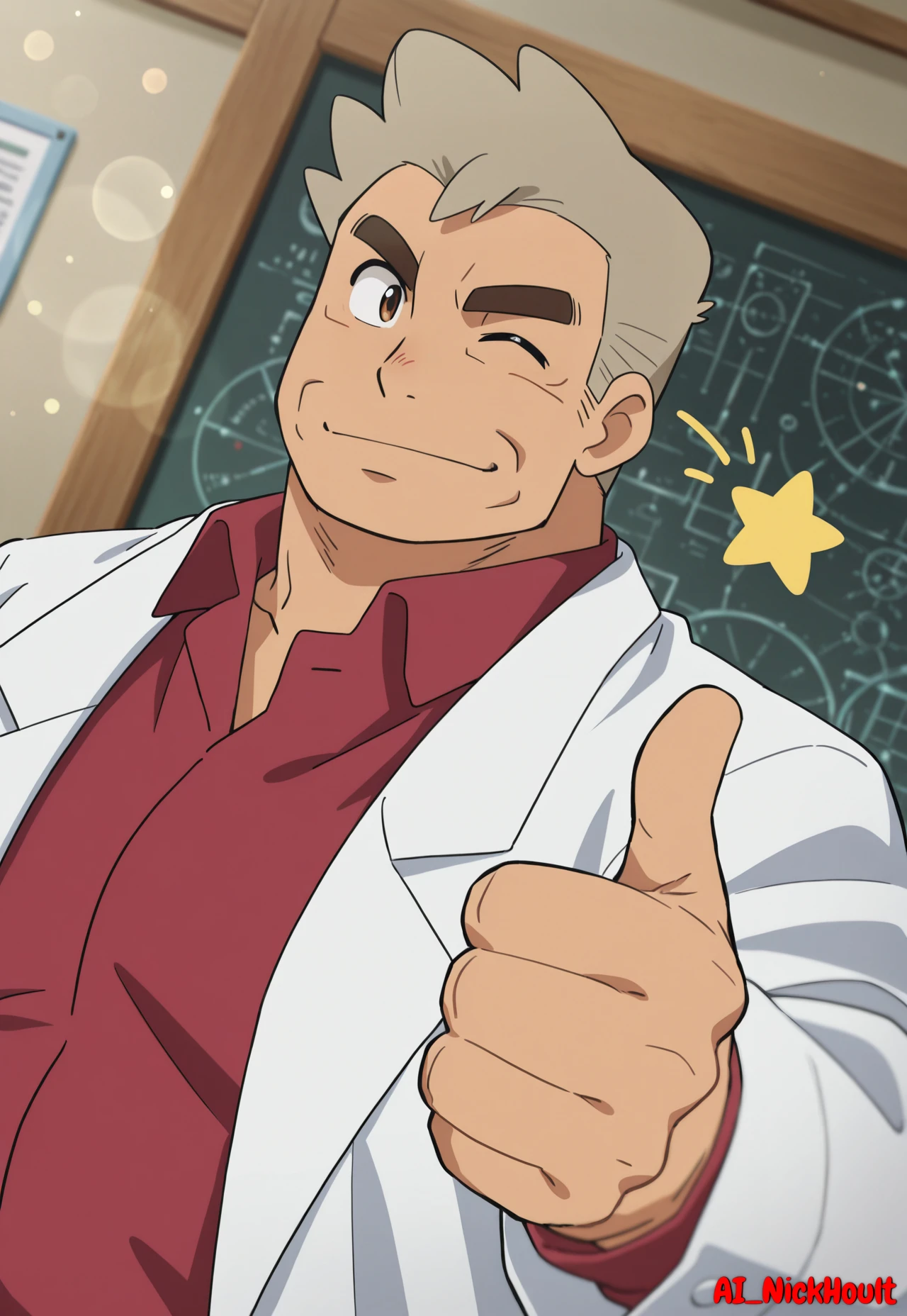 Professor_Oak, old man, peach skin, short hair, gray hair, thick eyebrows, brown eyes,