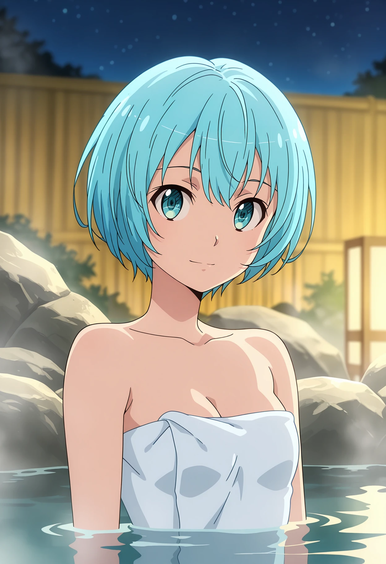 short hair, blue hair, blue eyes