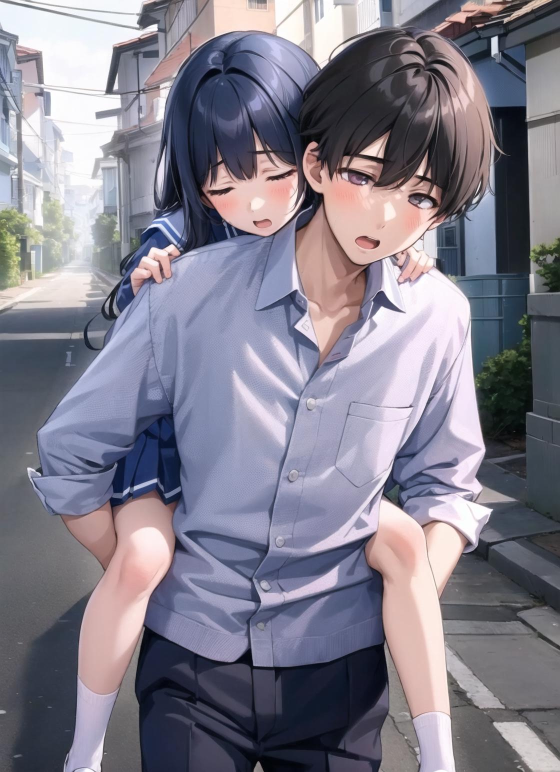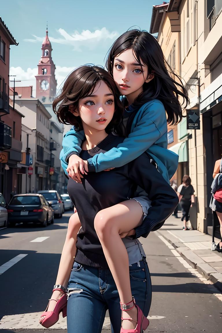 When generating a boy and a girl,the Lora is likely to generate a child being carried, although it can generate adults as well.