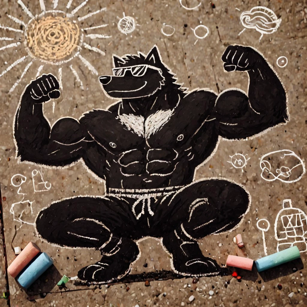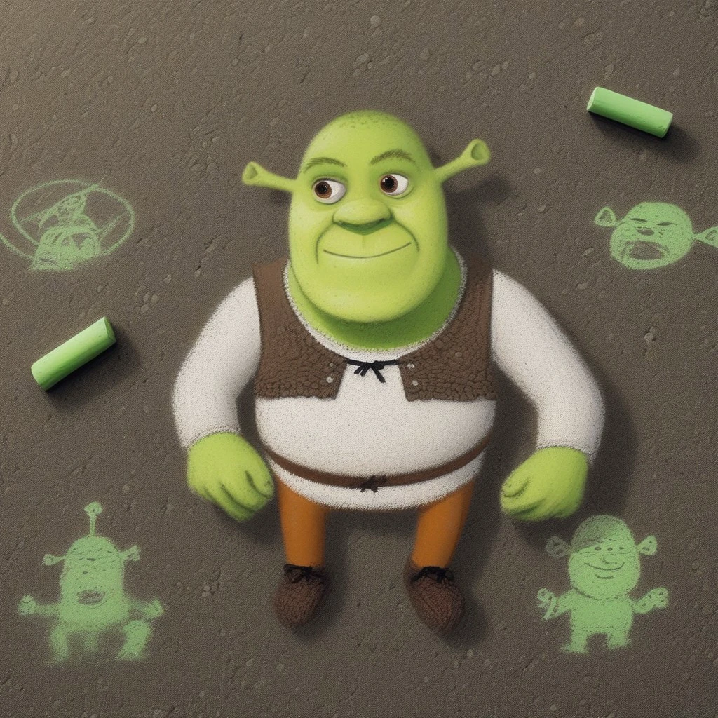 This model emulates the style of chalk drawings often found on sidewalks and roads in middle-class suburban neighborhoods.