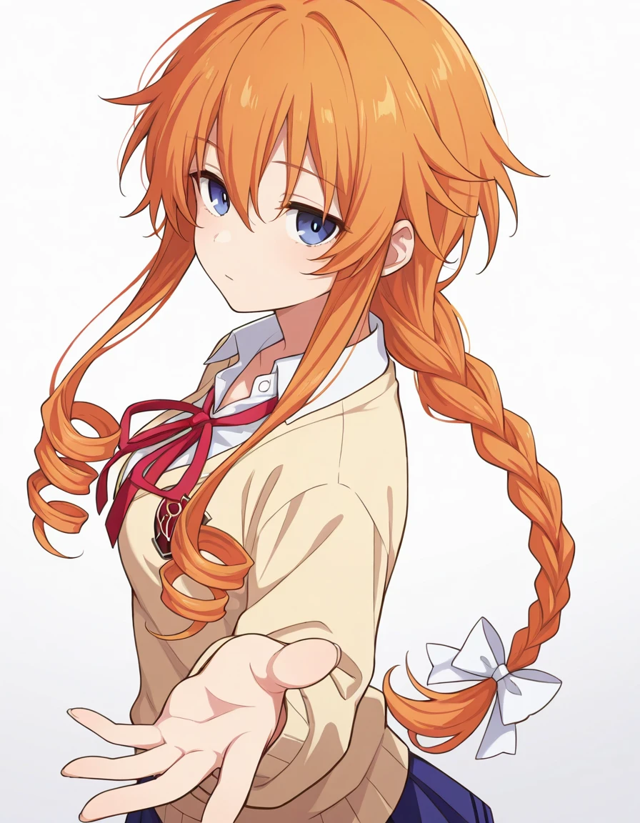 Yuzuru, long hair, orange hair, braid, long braid, single braid, drill sidelocks, blue eyesBerserk Astral Dress: