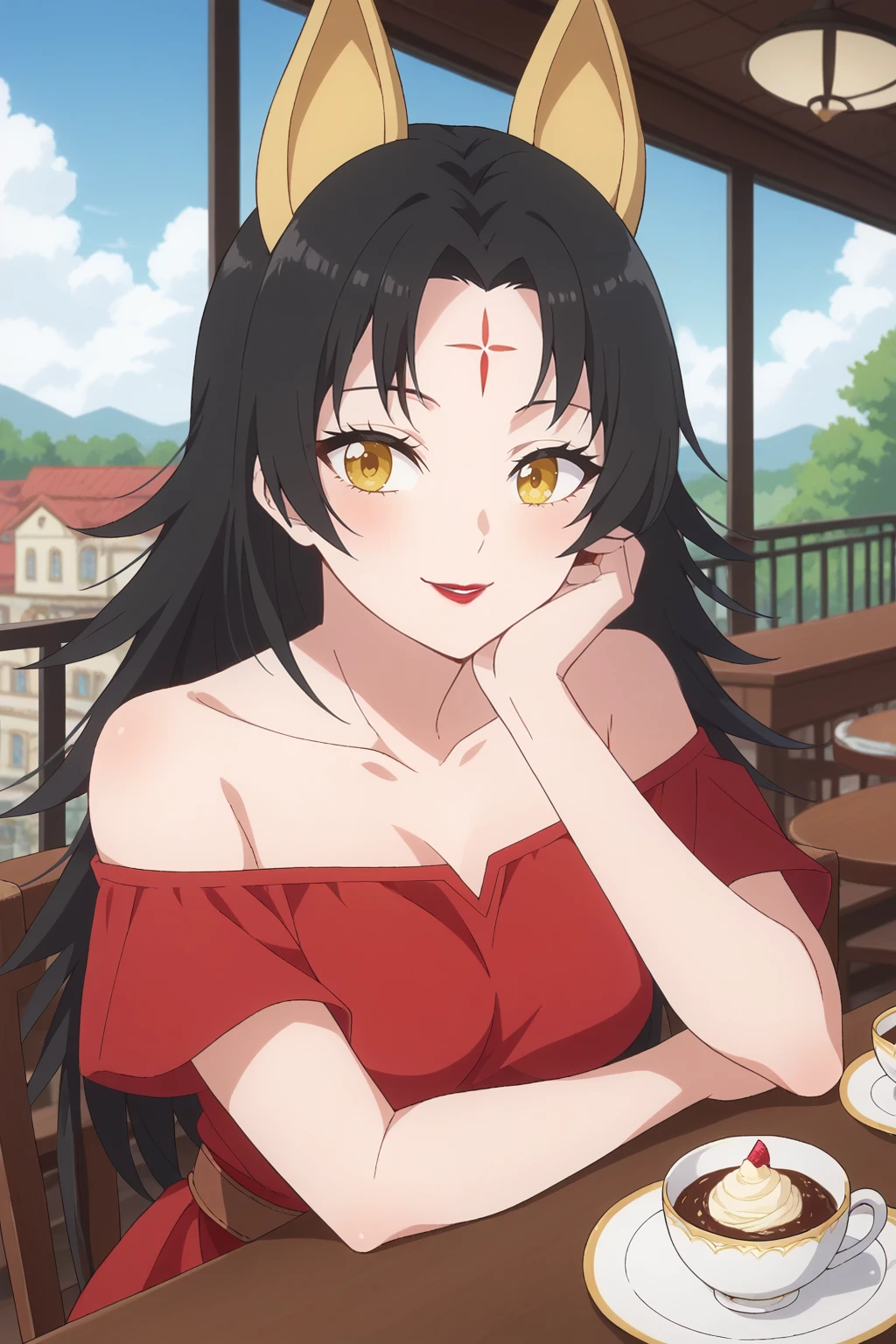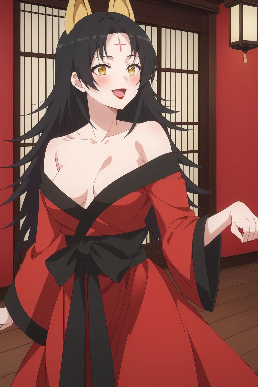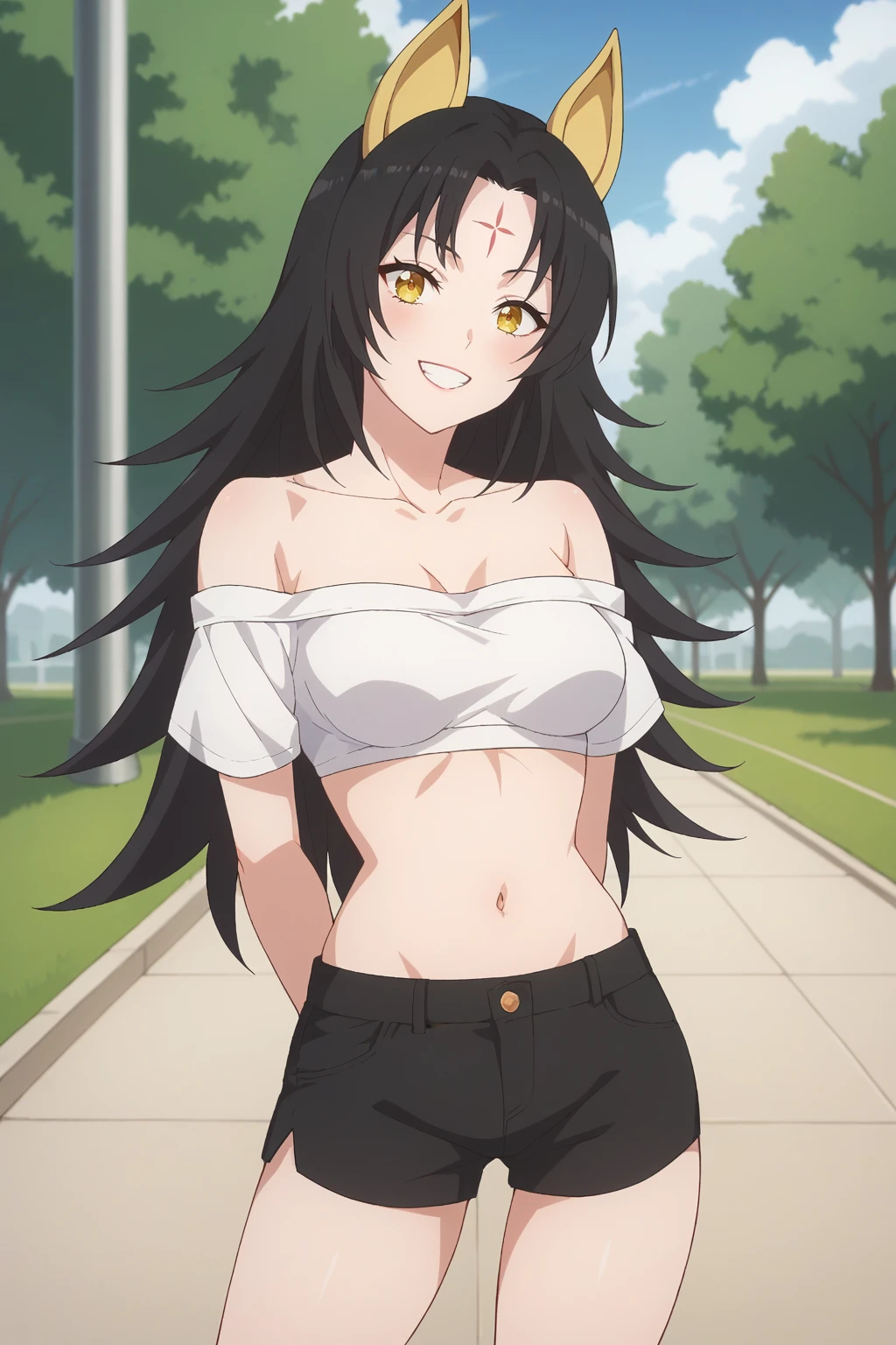 KJOmagino, black hair, yellow eyes, forehead mark, long hair, parted bangs, animal ears,