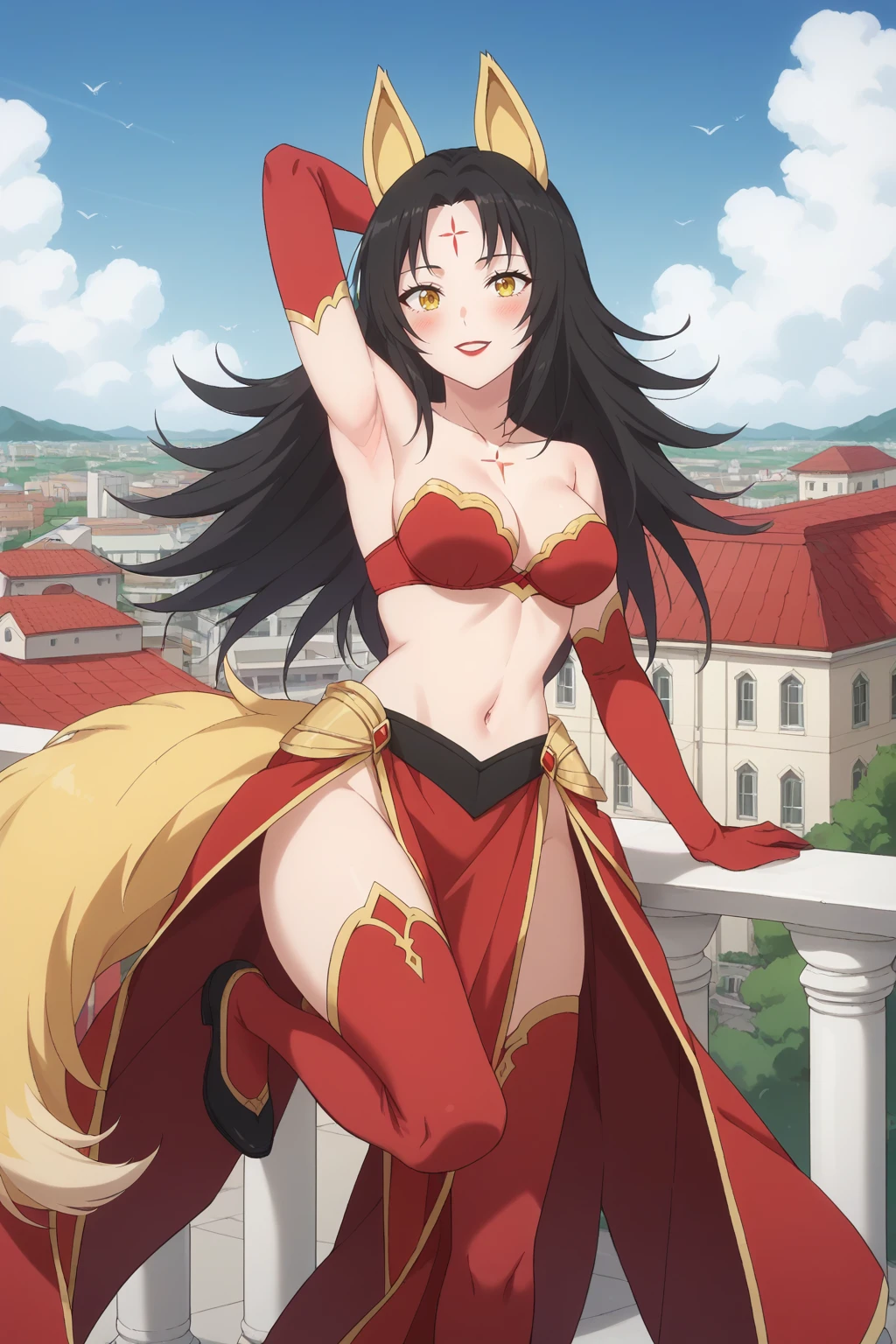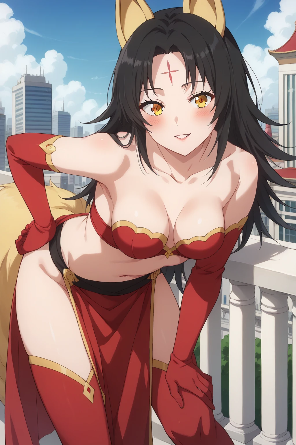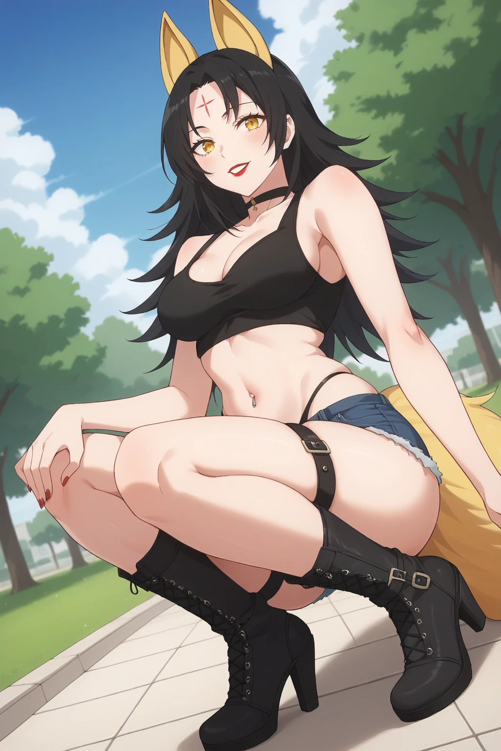 KJOmagino, black hair, yellow eyes, forehead mark, long hair, parted bangs, animal ears,
