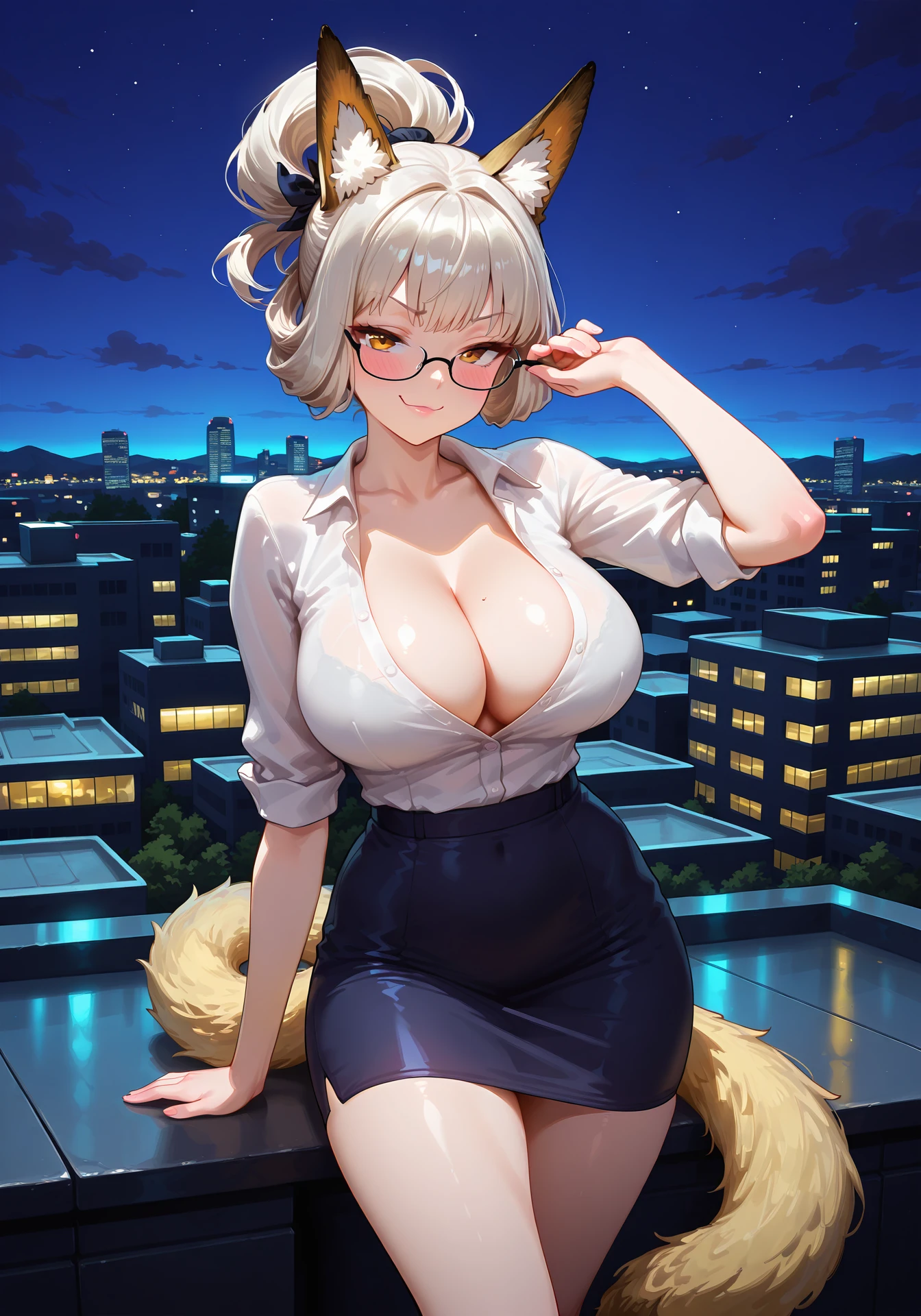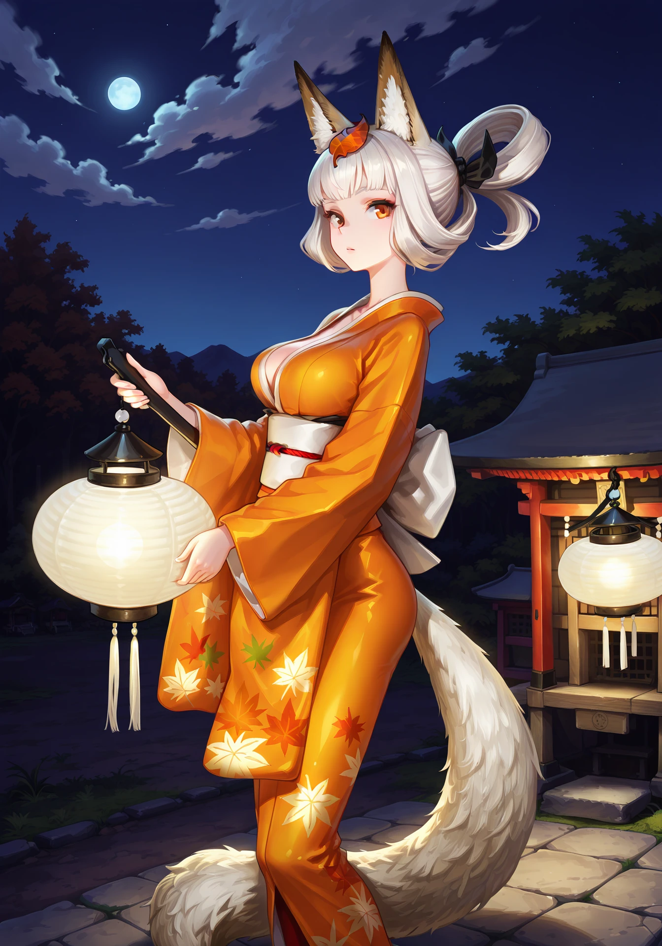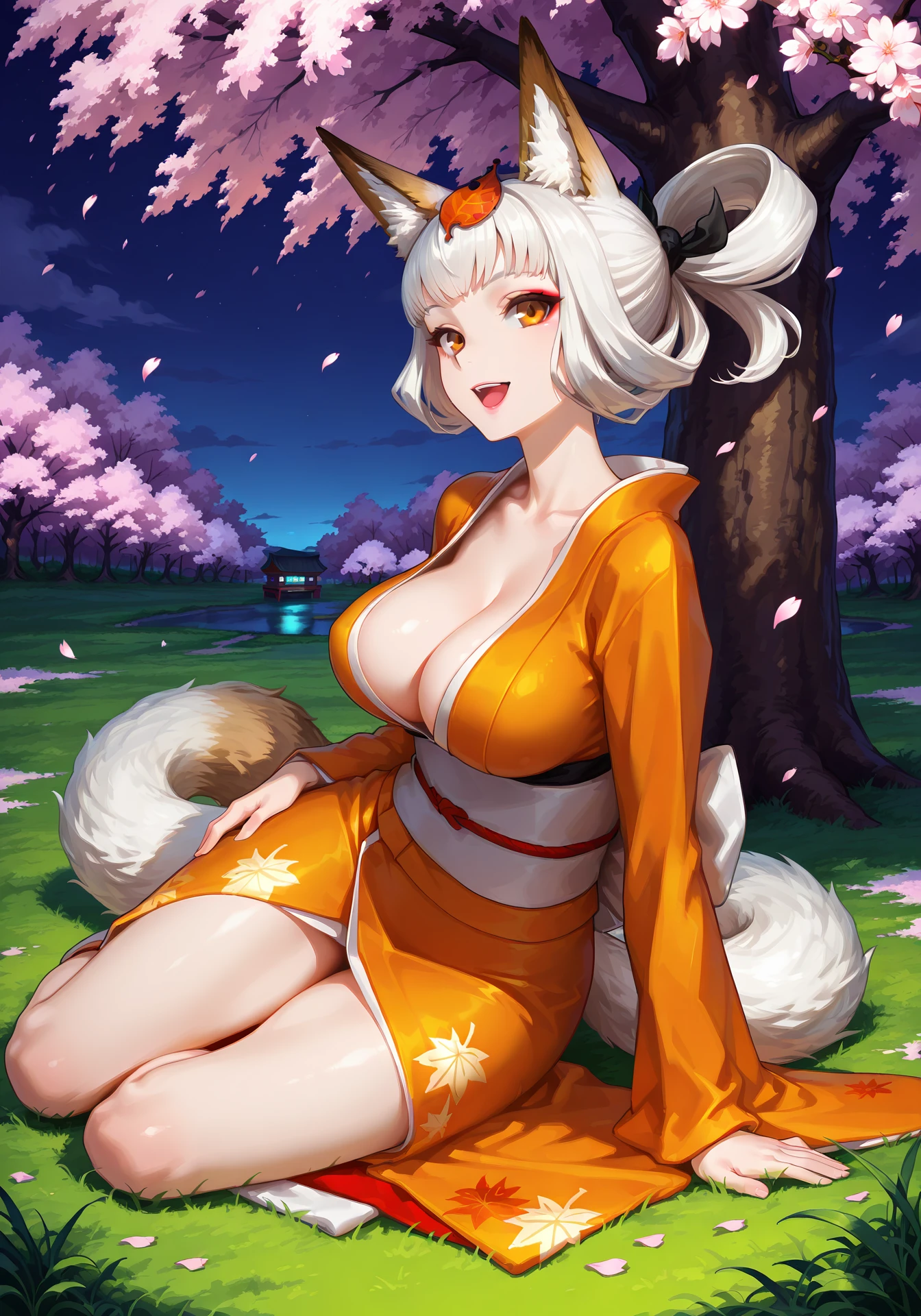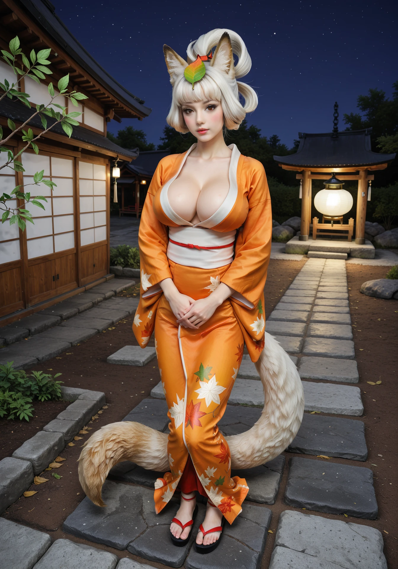 animal ears, animal tail, leaf on head