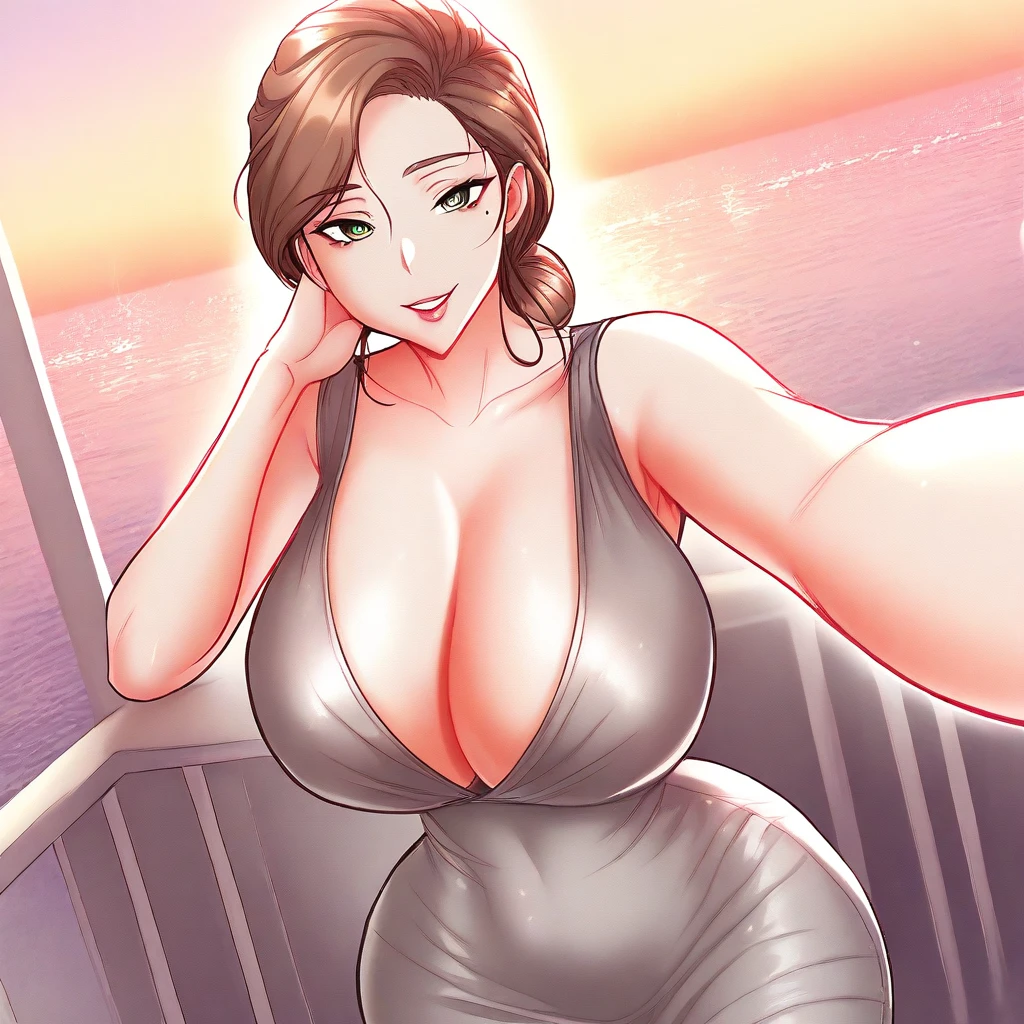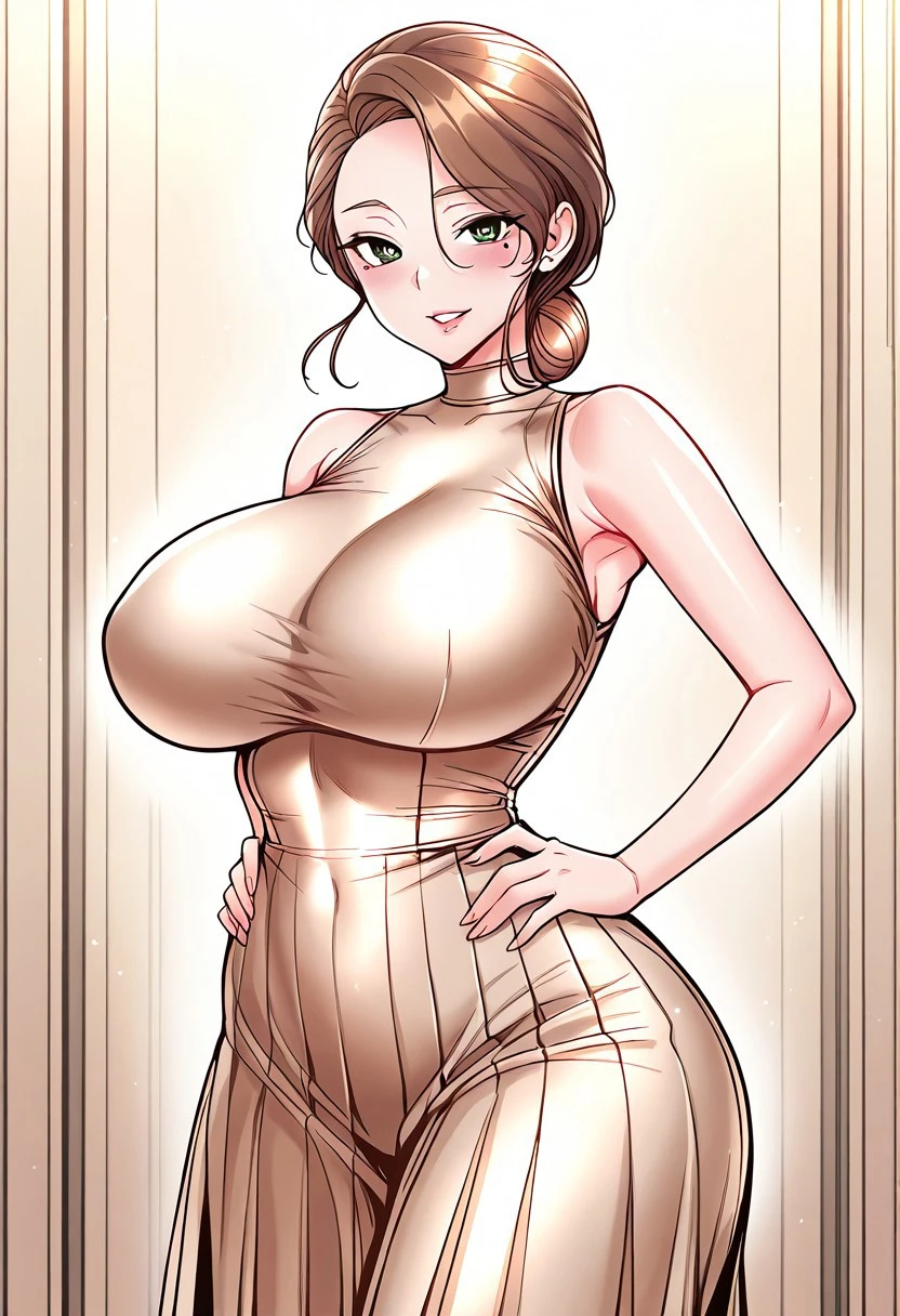 (( <lora:nurse_(grand_disciple):1> , nurse_(grand_disciple), piercing green eyes, clear eyes, bright pupils, beautiful eyes, beautiful chestnut-brown hair, beautiful low-bun hairstyle, thin waist, wide hips, beautiful skin, huge and shaggy breasts, natural beauty, extraordinary beautiful woman, attractive woman, super sexy woman, lustful body, sexy woman with seductive obscene body, sensual body, voluptuous body, sexy beauty, 1 mole under left eye, ))