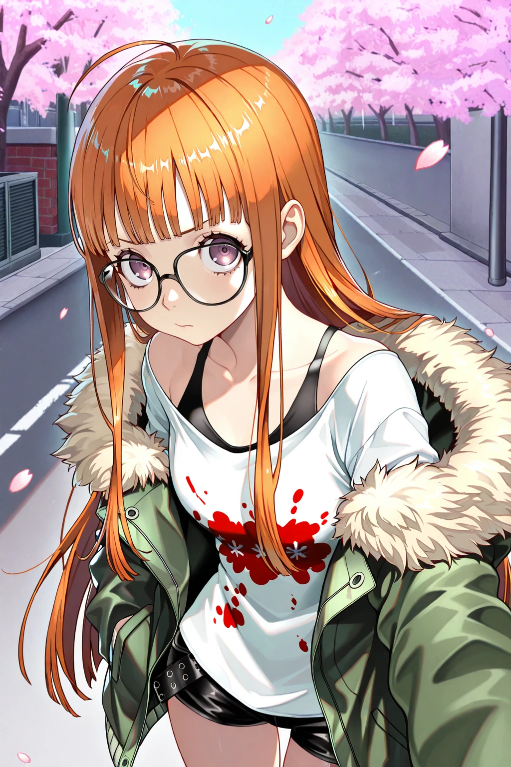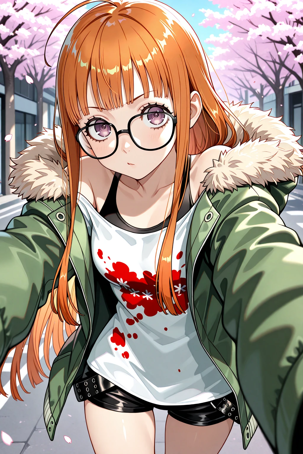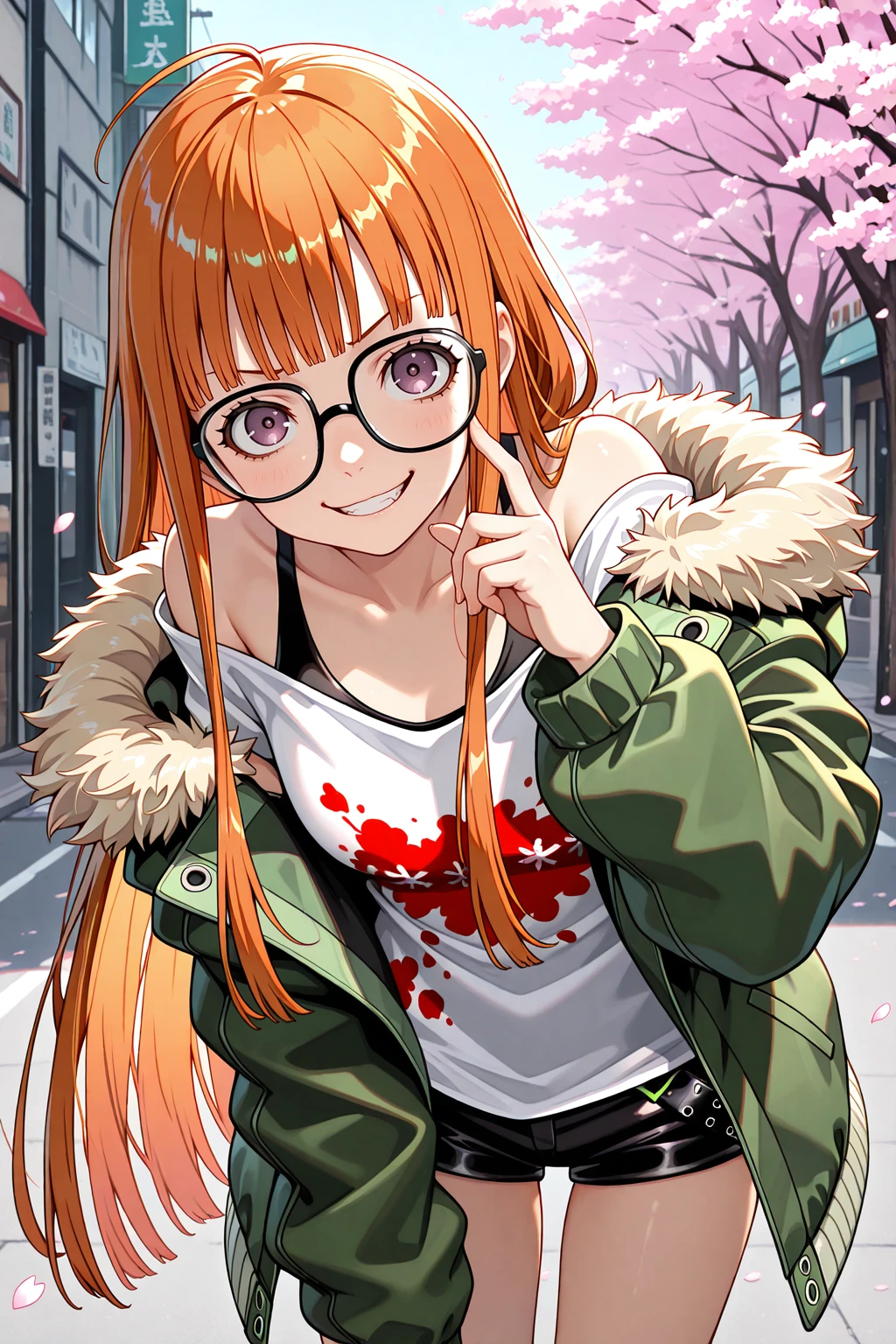sakura futaba, orange hair, long hair, purple eyes, black-framed eyewear, blunt bangs, sidelocks, ahoge๐ข๐๐๐ณ๐ถ๐: