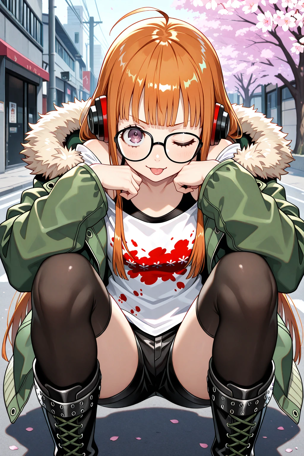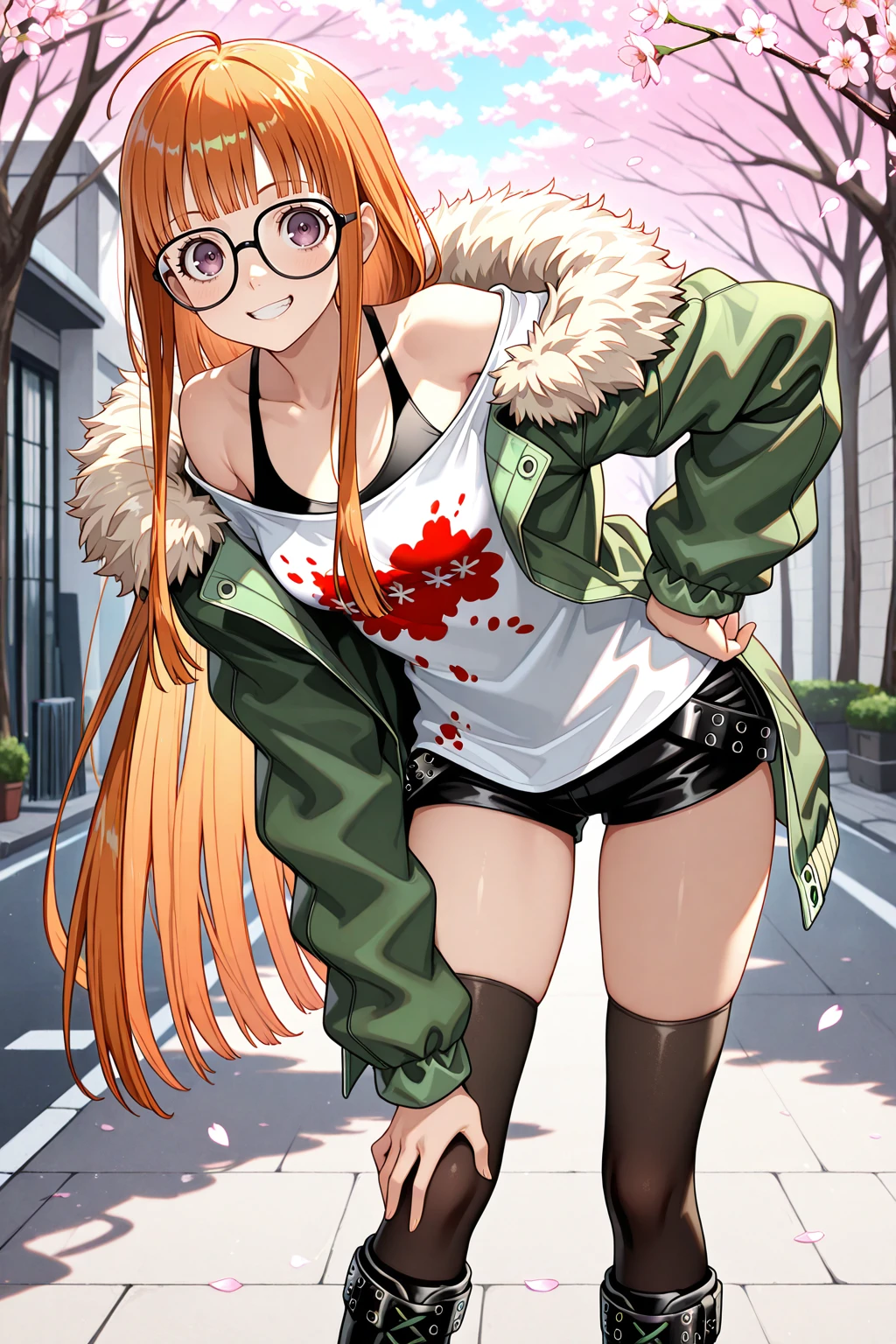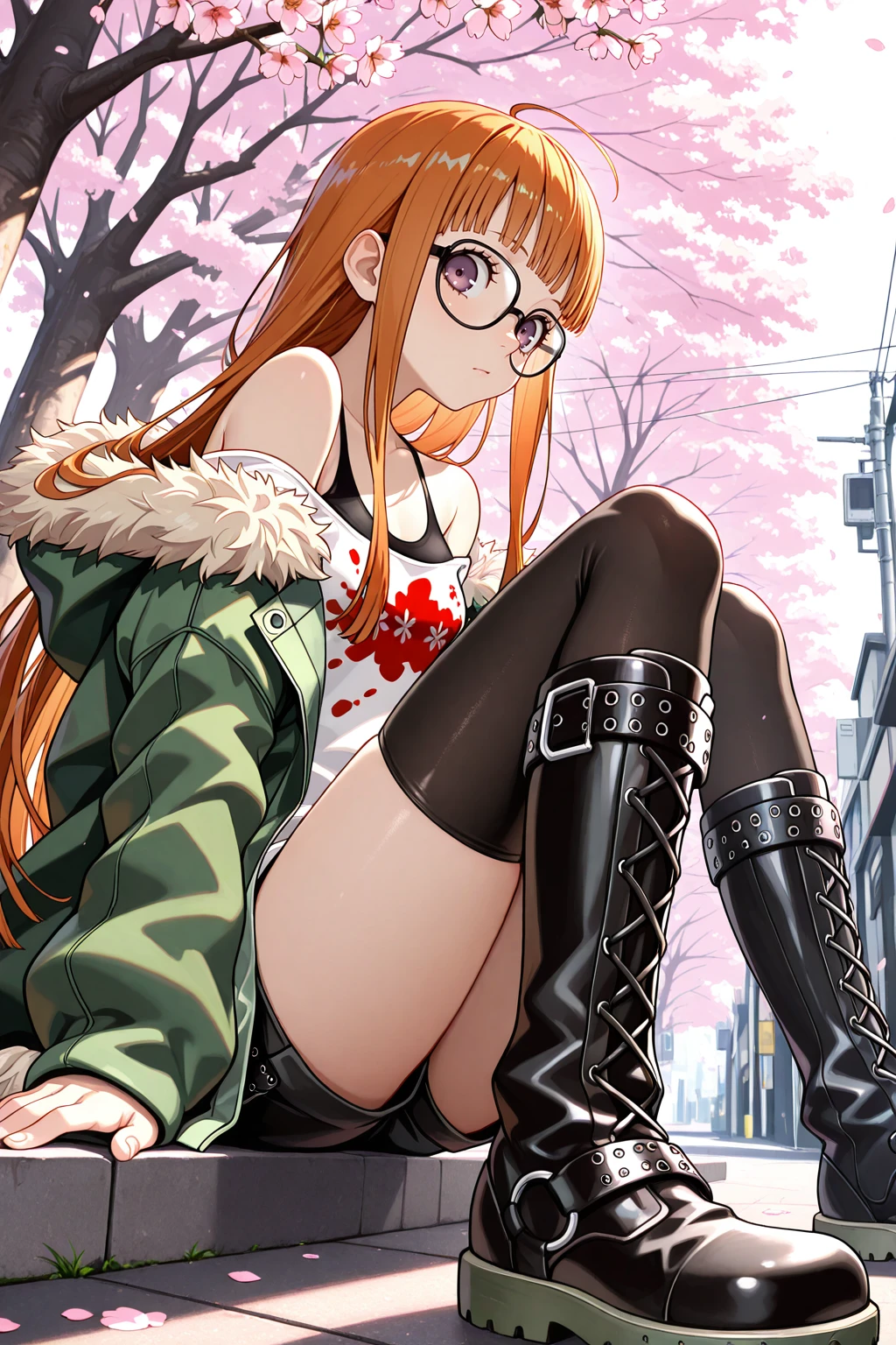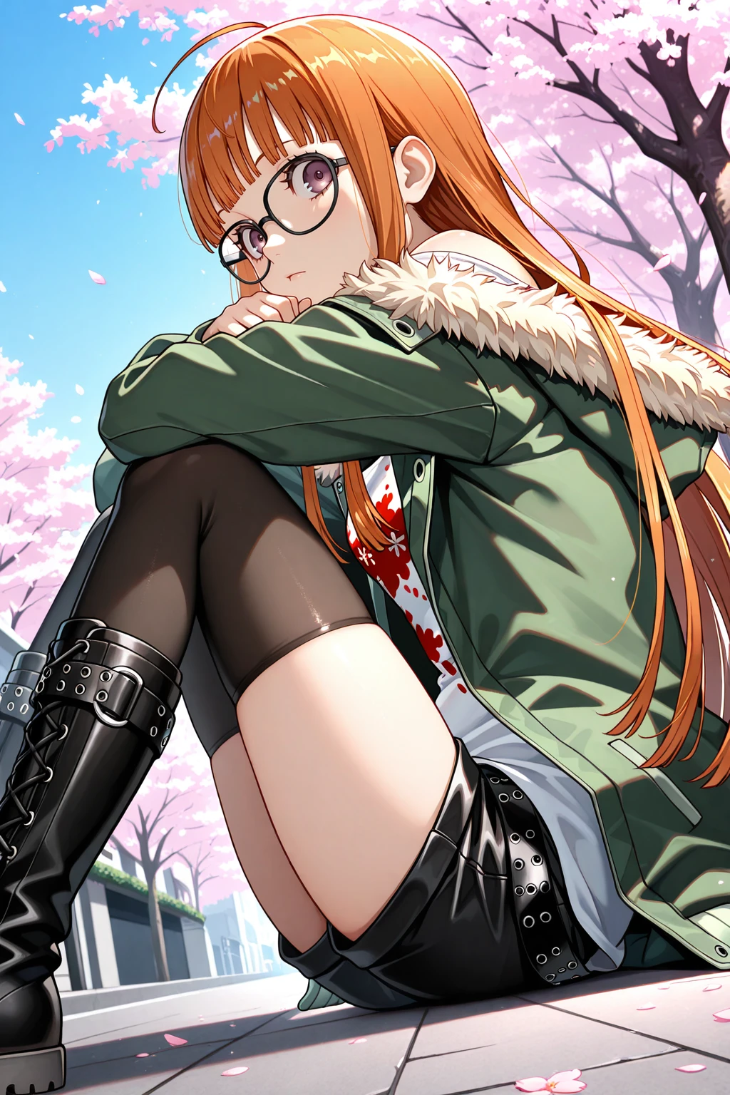 sakura futaba, orange hair, long hair, purple eyes, black-framed eyewear, blunt bangs, sidelocks, ahoge๐ข๐๐๐ณ๐ถ๐:
