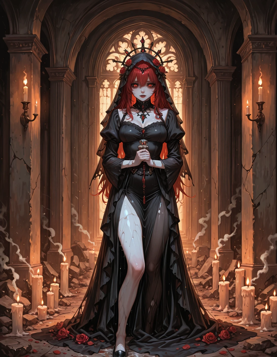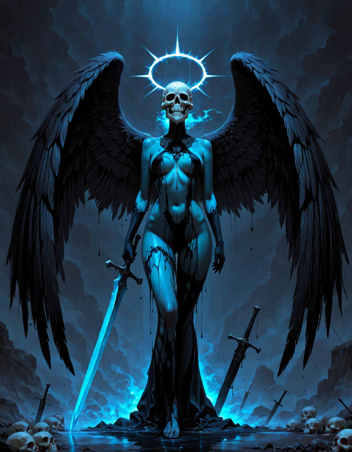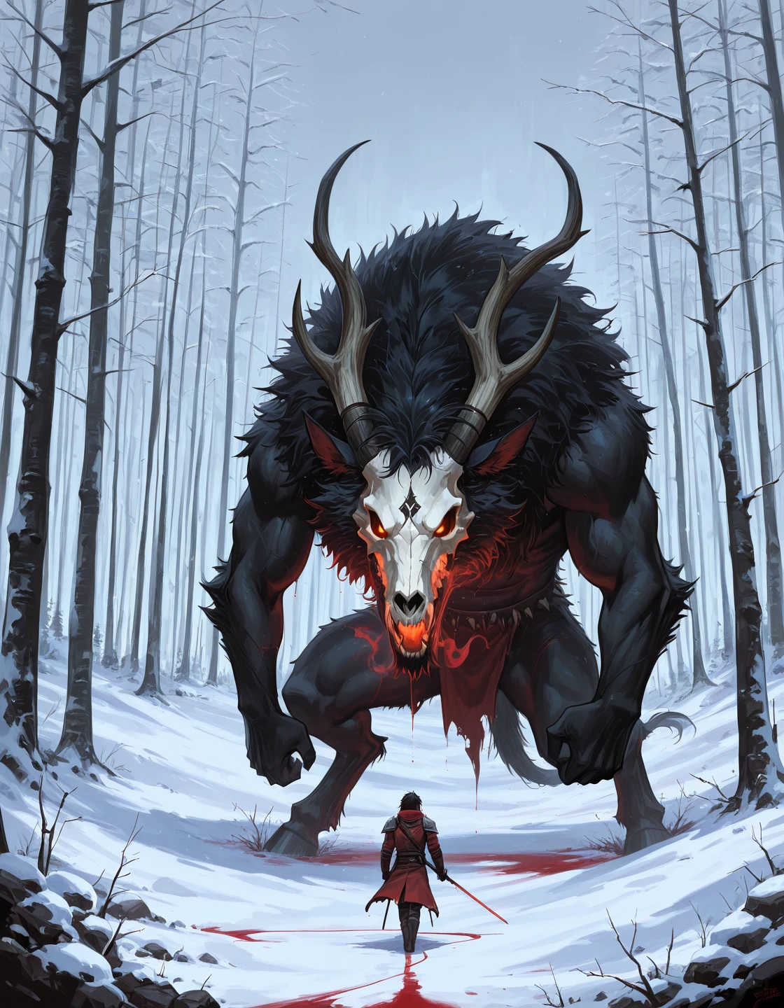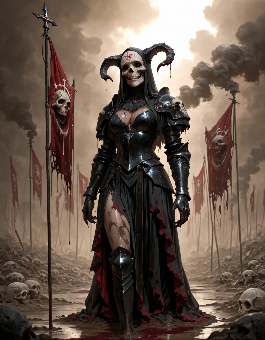 Trained on Illustrious with dark fantasy artworks focused on bleak atmosphere, sacred horror, rough oil-painted rendering, skeletal and monstrous imagery and blood-dark accents, also some erotica here and there.