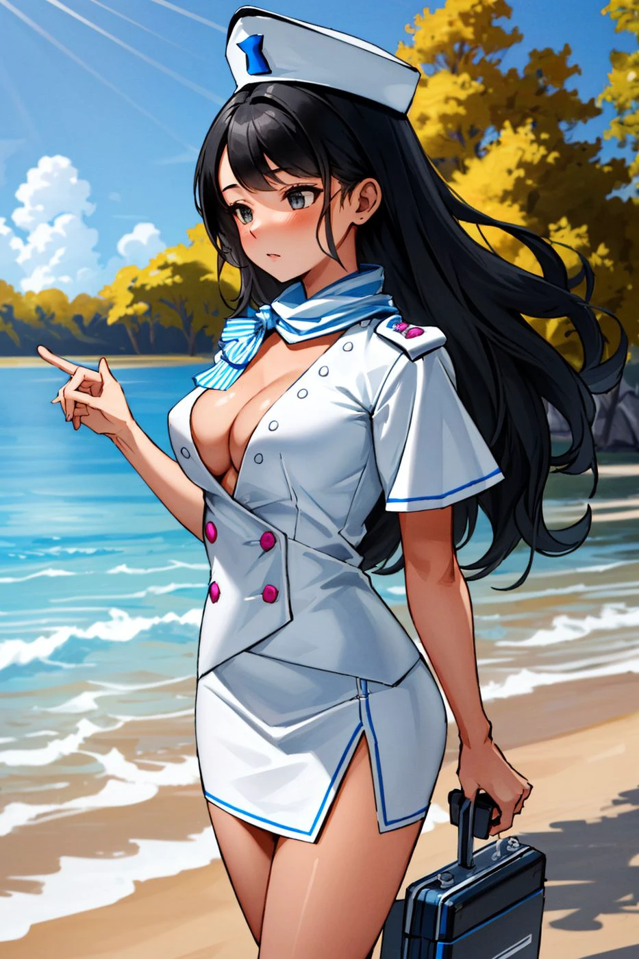 iflyuniform, blue and white scarf, short skirt, side slit skirt, breasts, short sleeves