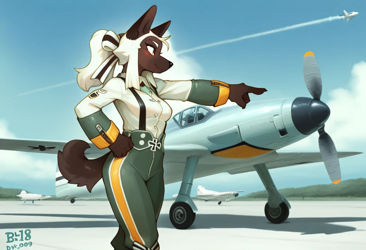 Messerschmitt Bf 109, one of K88Comet's dog girls. This lora is trained to be very on-model and style consistent at 1.0 strength, reduce strength if you want to style mix.