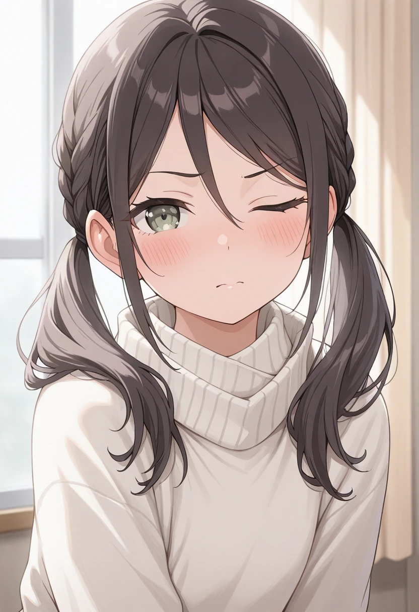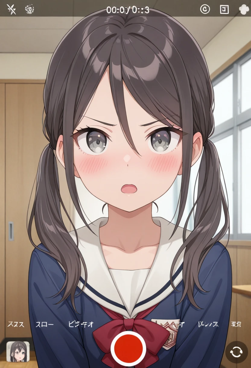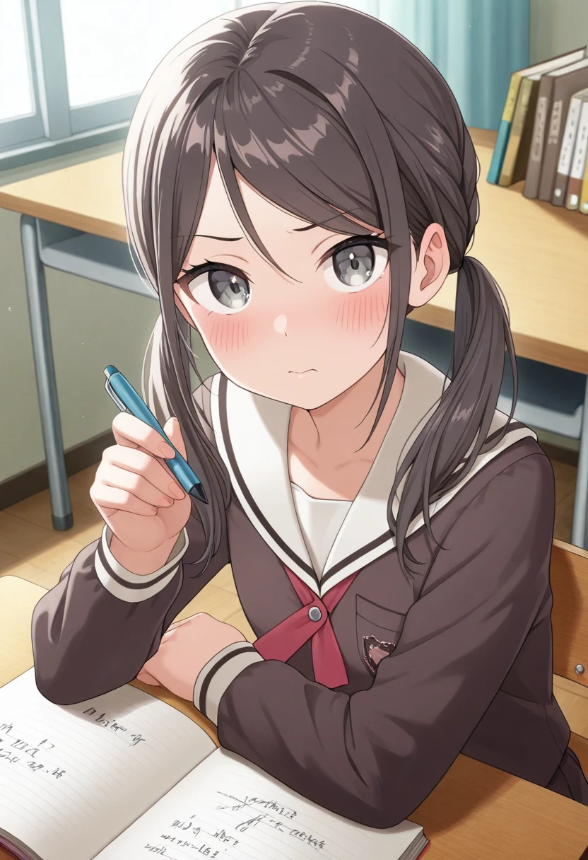 Trigger Words: naganawa yuna, dark brown hair, long hair, twintails, grey eyes
