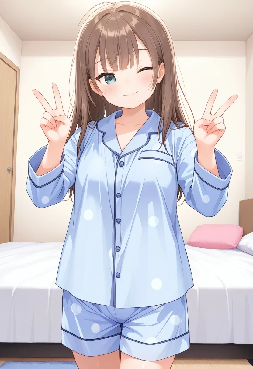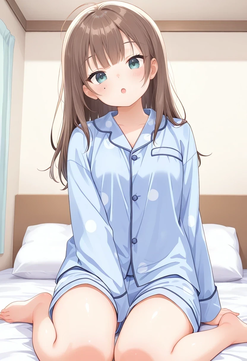 blue pajamas,shorts,polka dot,