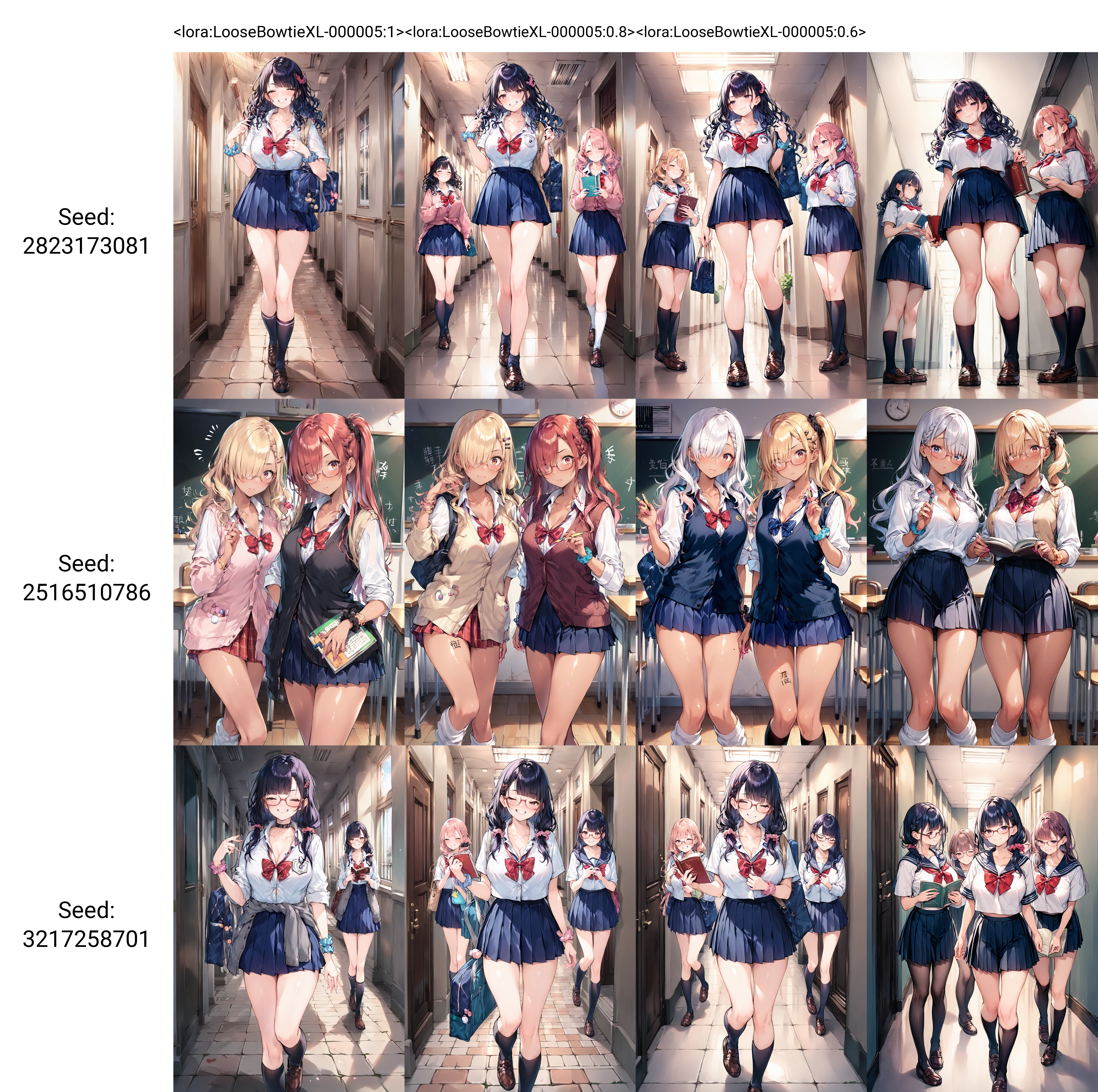 制服を着たギャルが着崩した際のゆるいリボンタイを出せるようにしました。自分の環境ではWeight0.8ぐらいがちょうどよく出る感じがするのでお勧めですが、適宜調整してください。