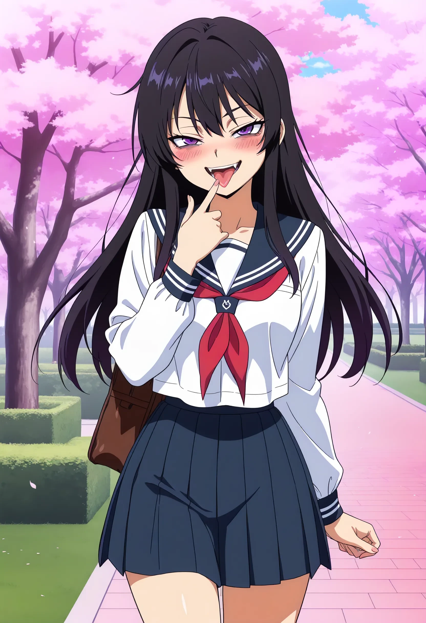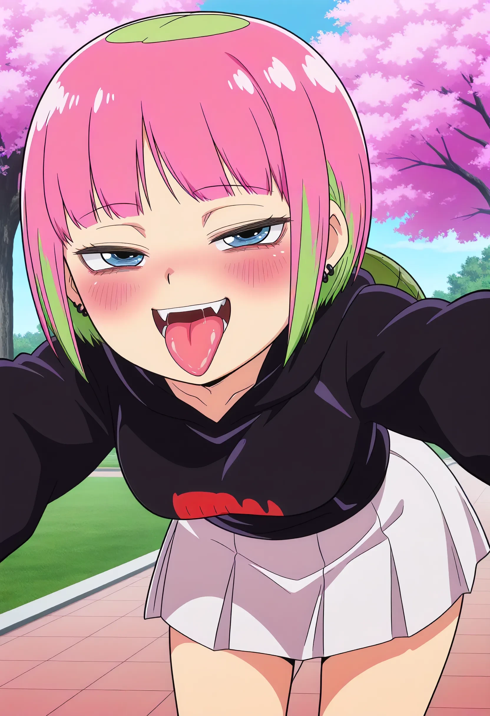 togalike face, bags under eyes, blush, naughty face, fangs,