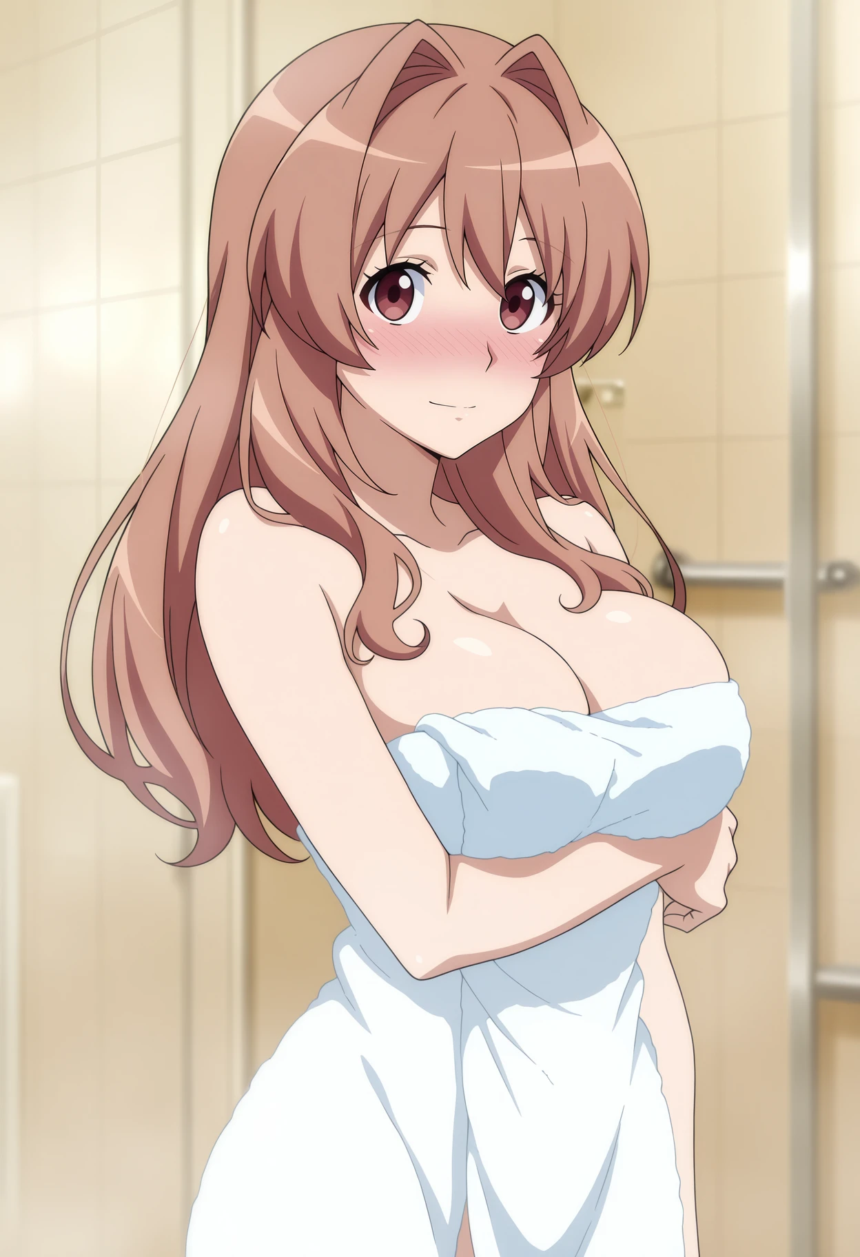 naked towel, cleavage, large breasts