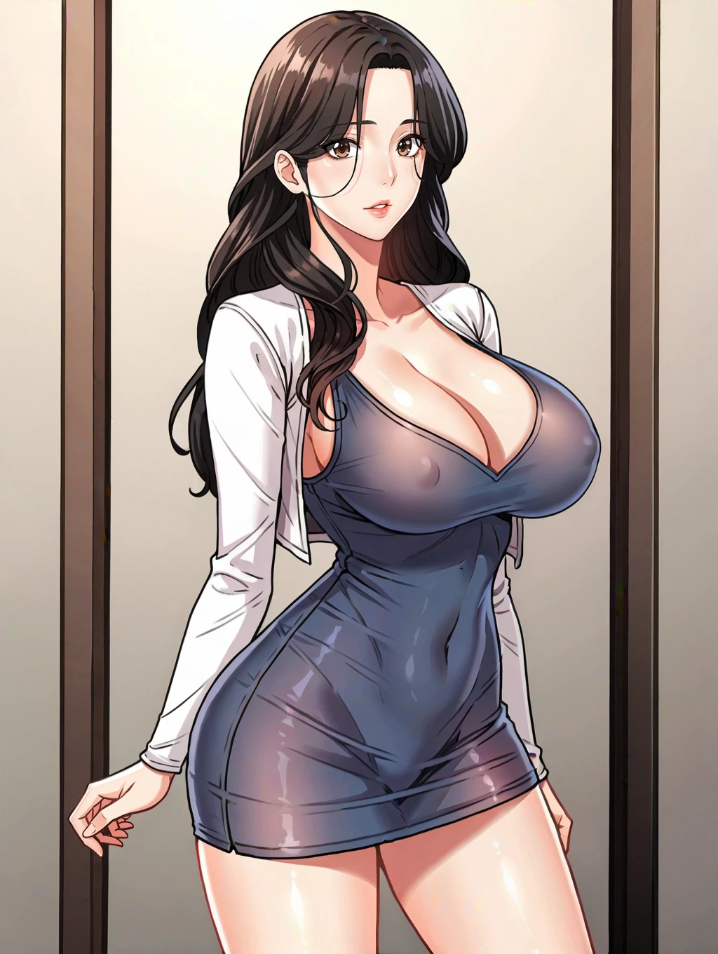 eunhye, black hair, long hair, brown eyes, large breasts,