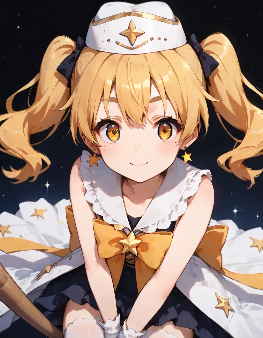 Outfit Magicaldress : hikaru , hikaru_mg , hat , magical girl , sleeveless , yellow bow , star earrings , skirt