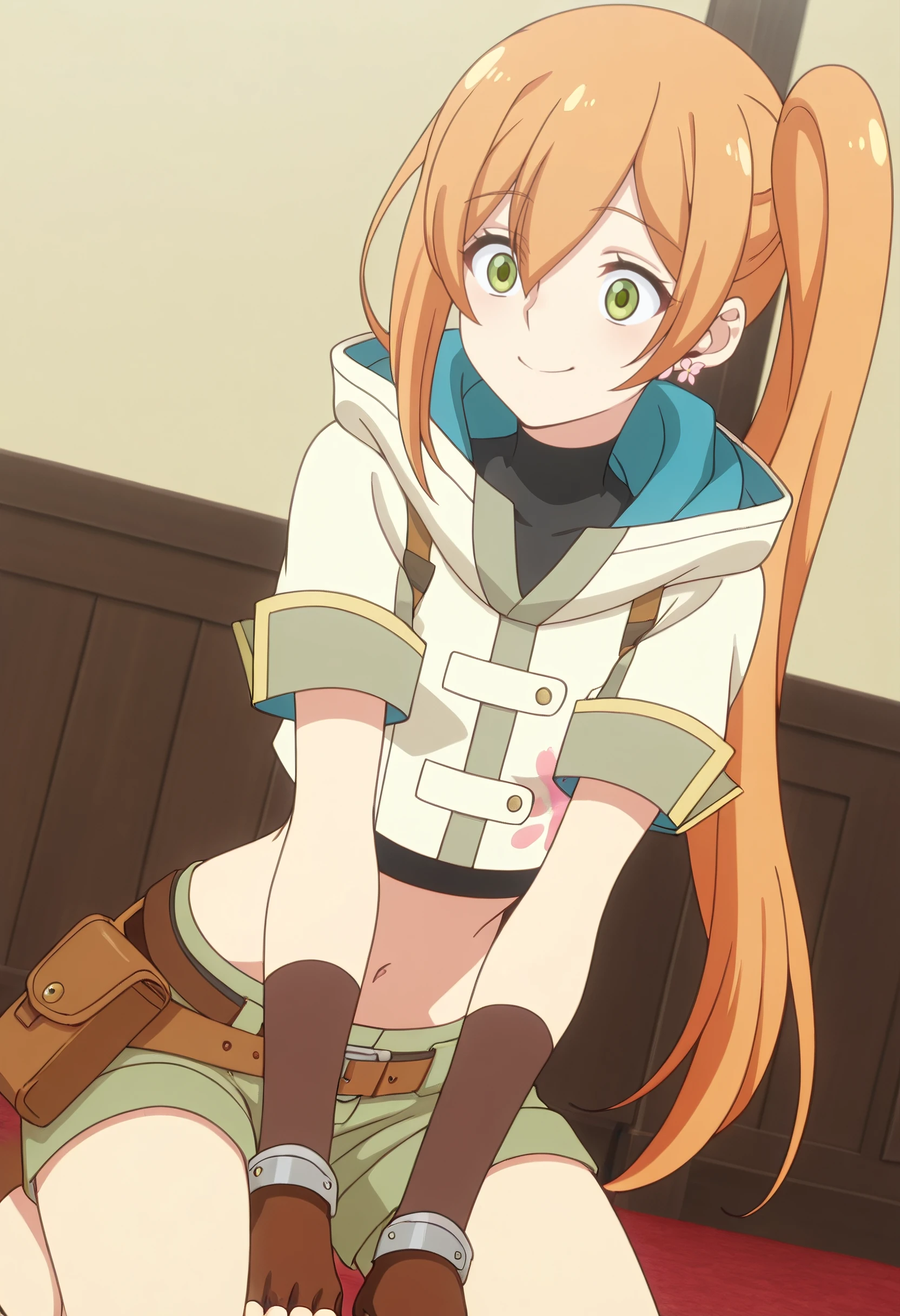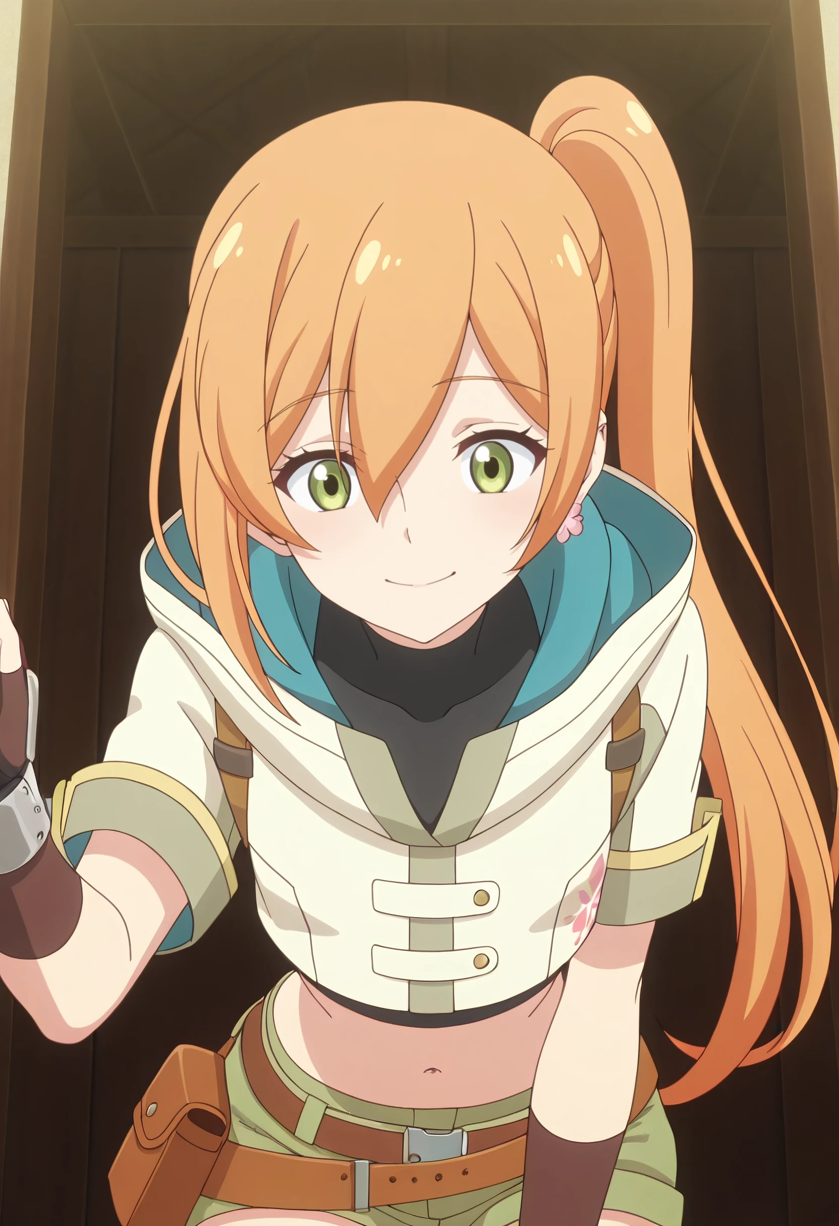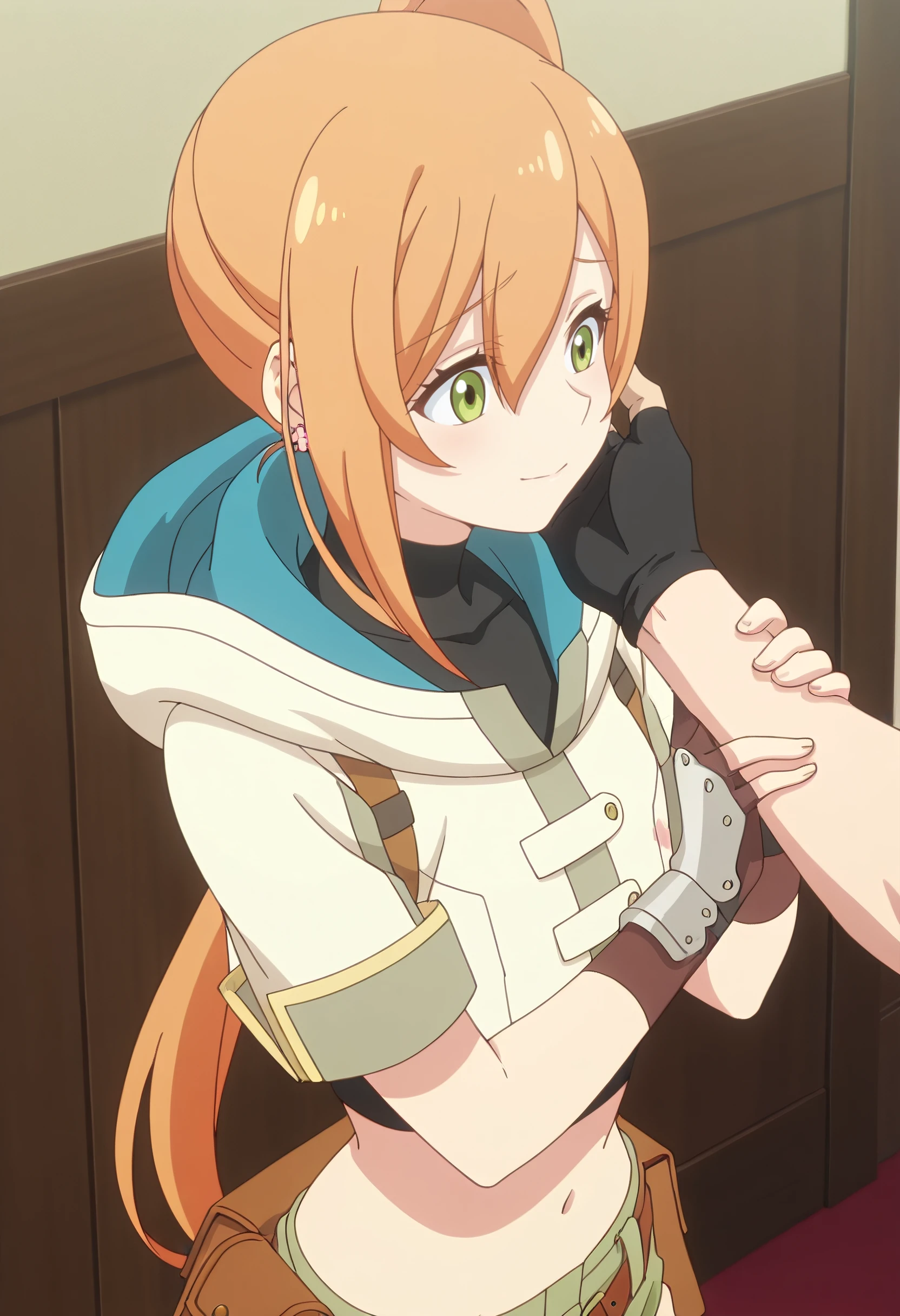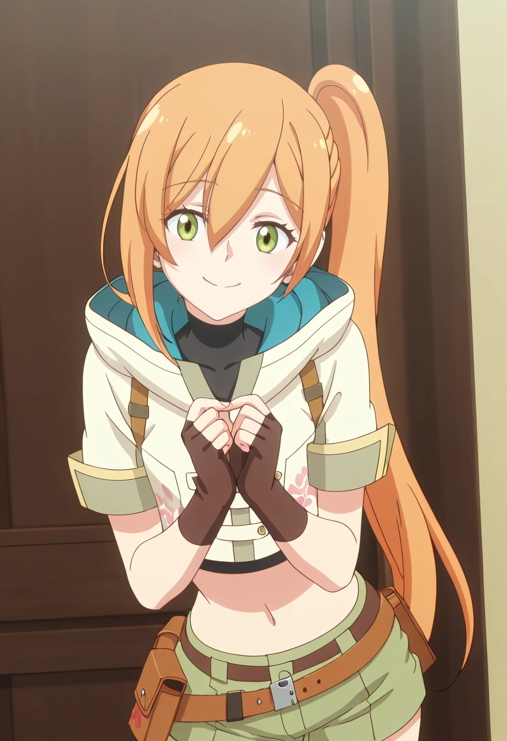 KNASina, long hair, orange hair, side ponytail, green eyes, hair between eyes, ponytail, high side ponytail,