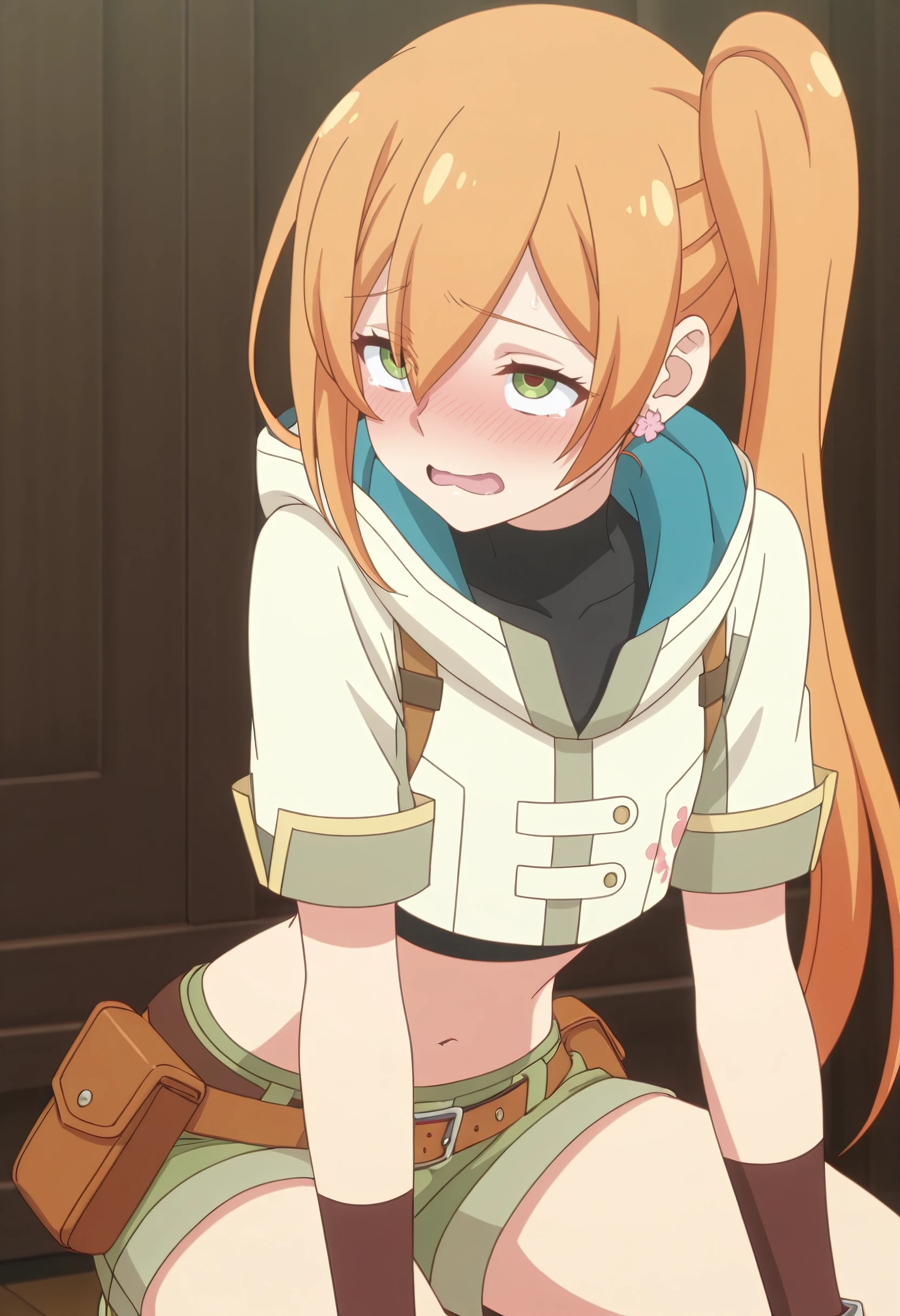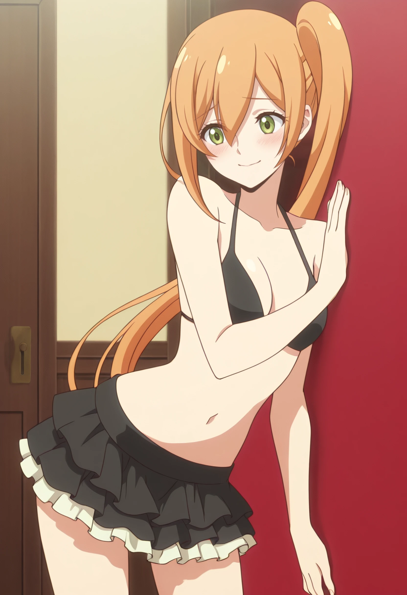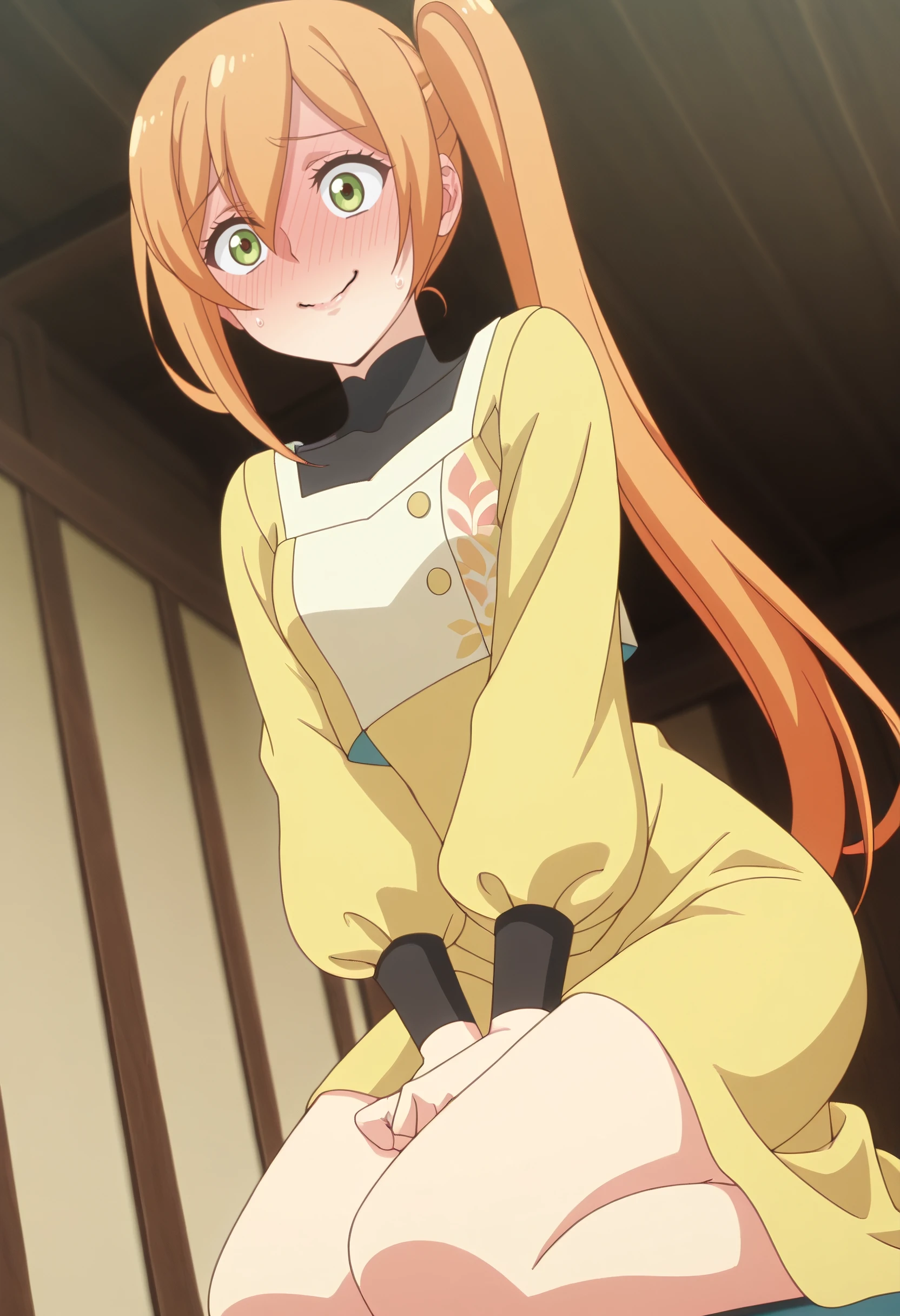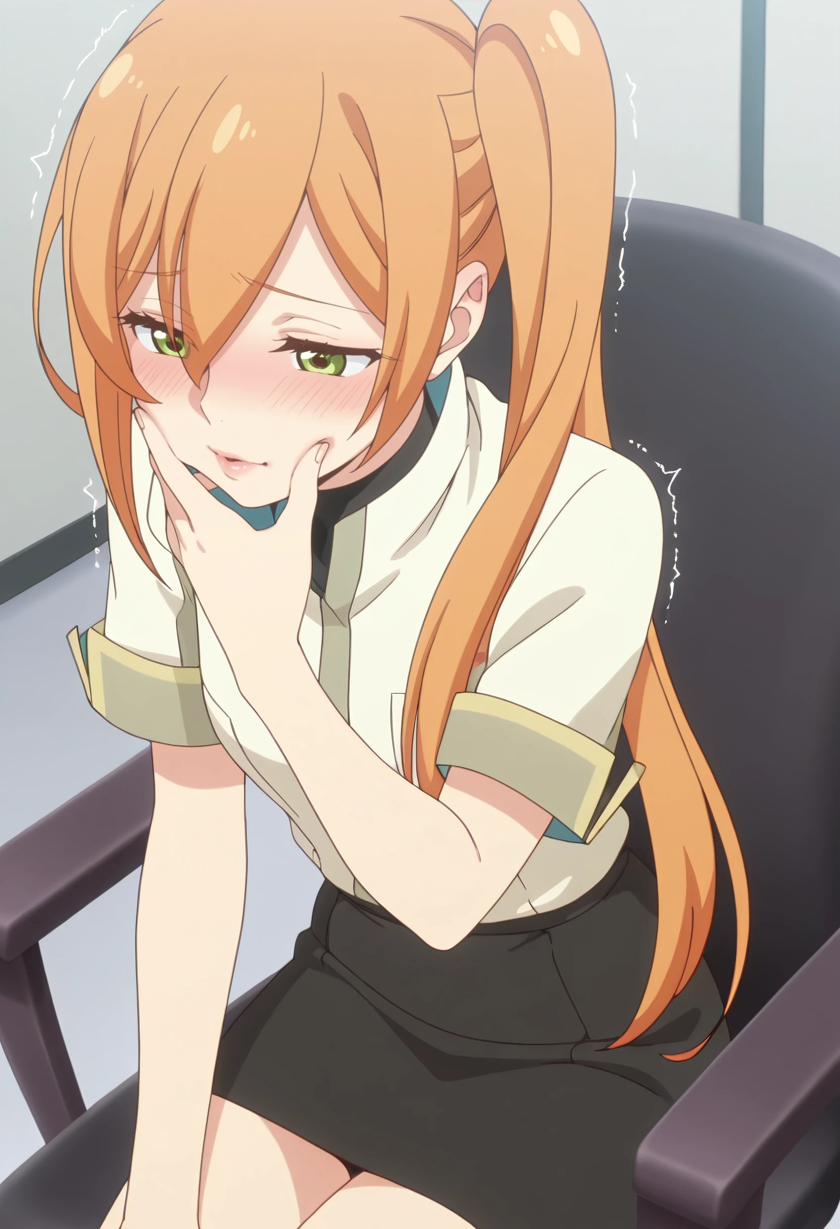 KNASina, long hair, orange hair, side ponytail, green eyes, hair between eyes, ponytail, high side ponytail,