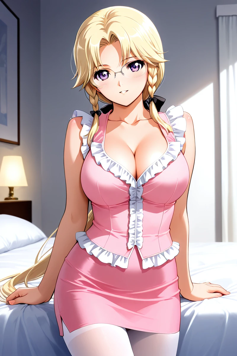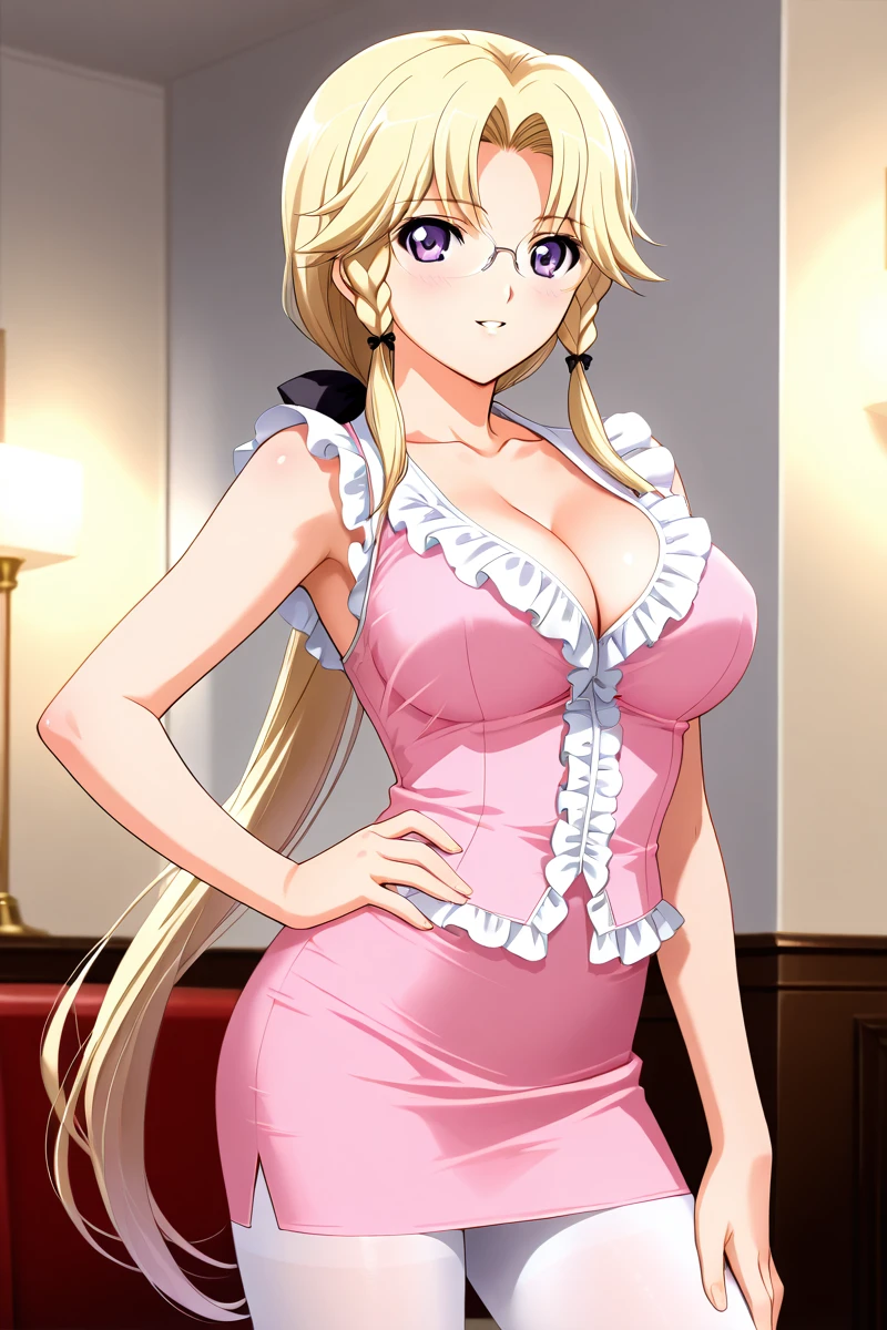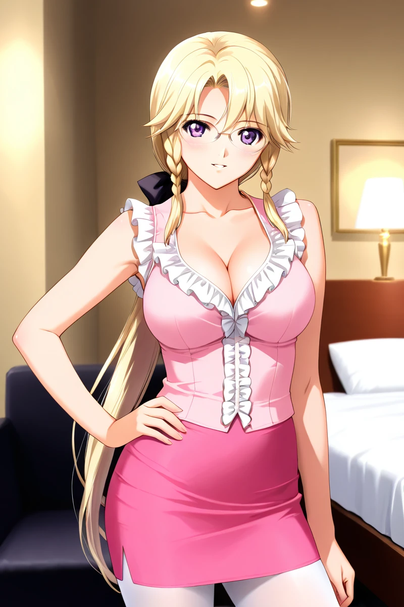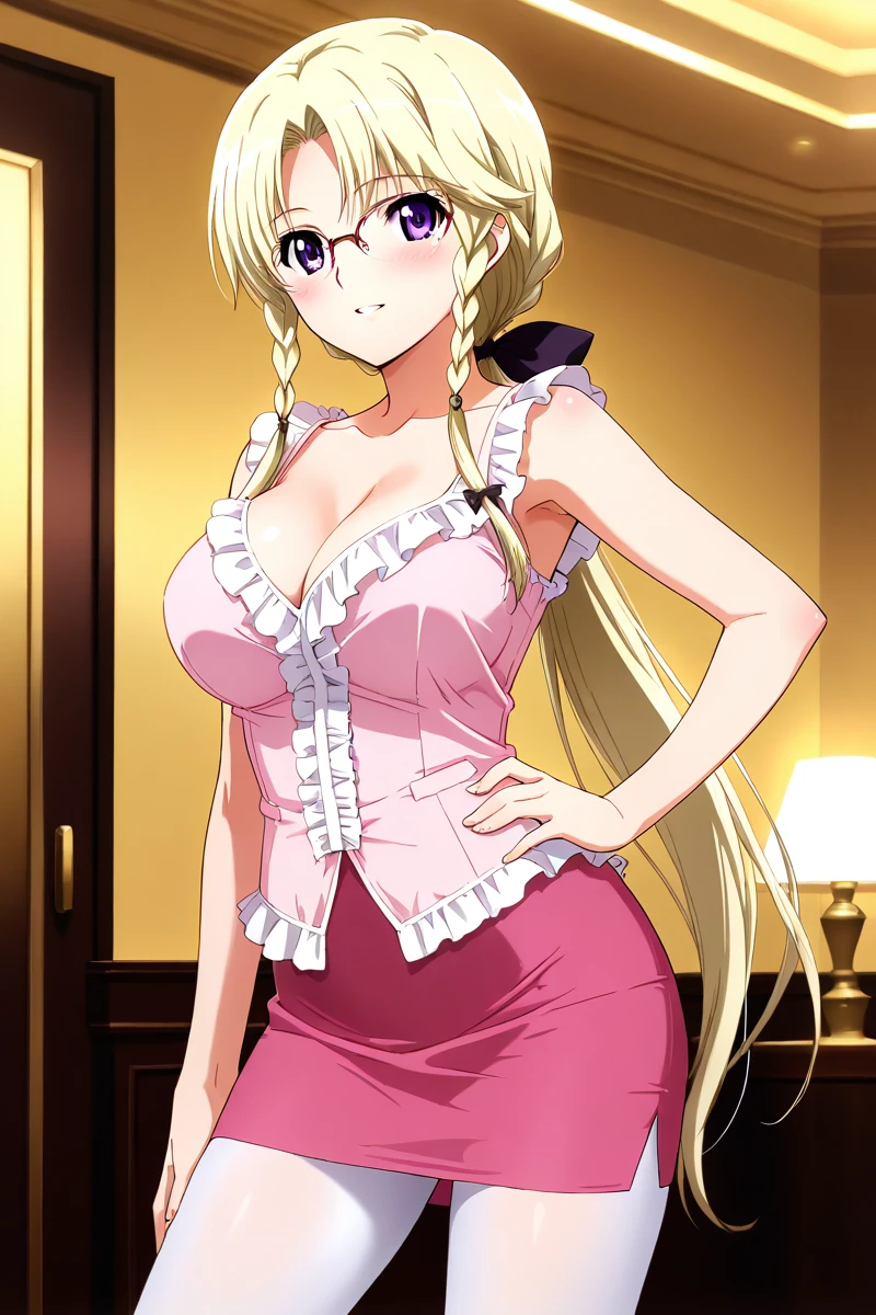 In the animated series, Miki is frequently portrayed wearing revealing attire. Her outfits often consist of a plunging neckline that showcases her considerable cleavage, as well as short skirts, black stockings, and a low ponytail that adds to her attractiveness. She also dons glasses that enhance her mature and sophisticated appearance, despite her youthful-looking face. Nevertheless, Miki's allure is undeniably potent, making her my top pick for best heroine in this series.