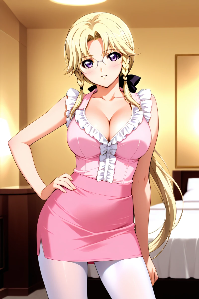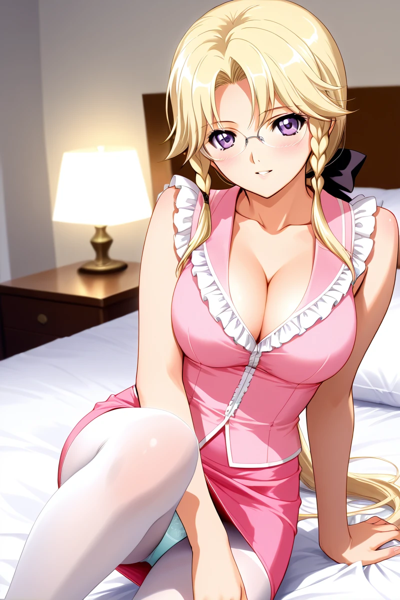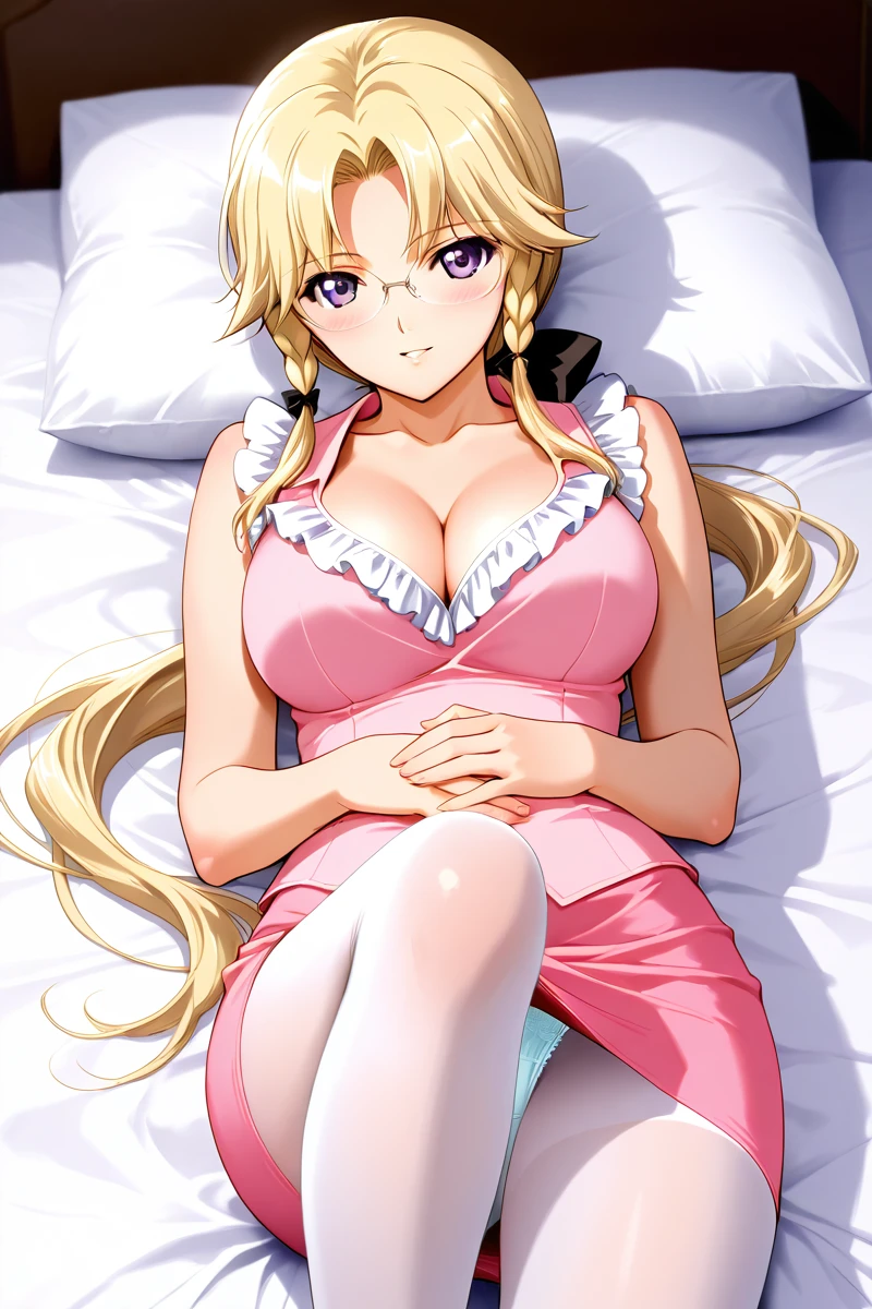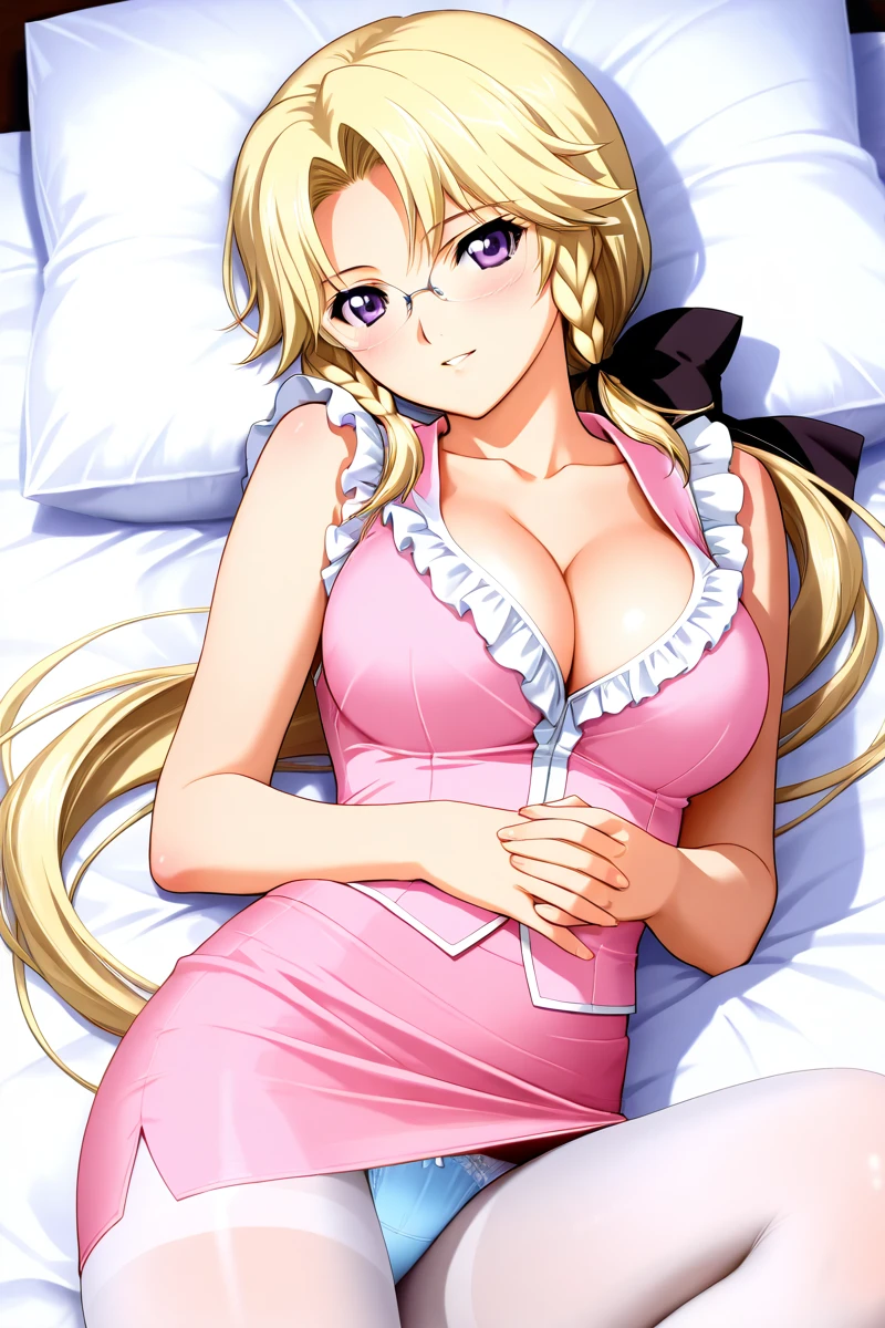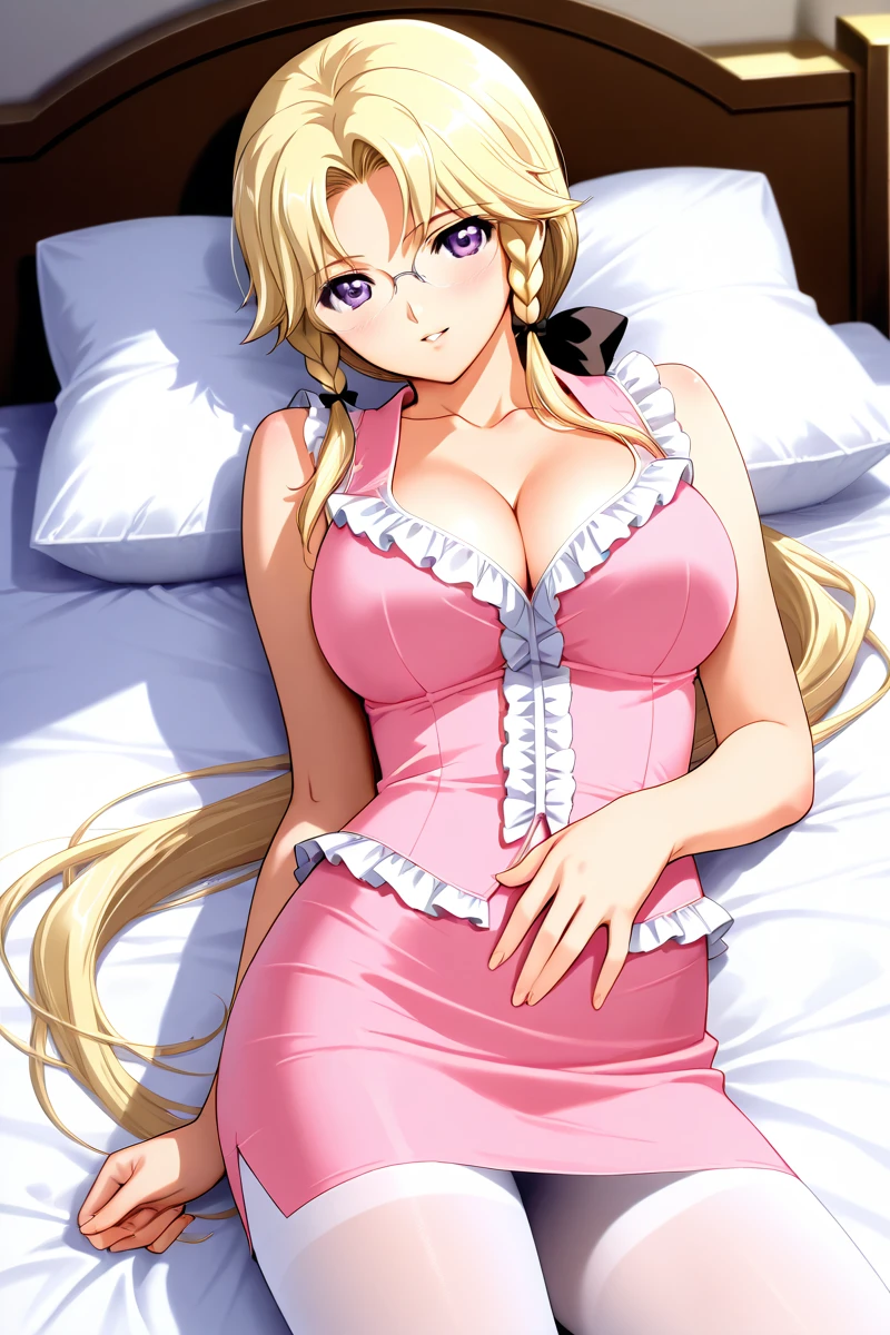 In the animated series, Miki is frequently portrayed wearing revealing attire. Her outfits often consist of a plunging neckline that showcases her considerable cleavage, as well as short skirts, black stockings, and a low ponytail that adds to her attractiveness. She also dons glasses that enhance her mature and sophisticated appearance, despite her youthful-looking face. Nevertheless, Miki's allure is undeniably potent, making her my top pick for best heroine in this series.
