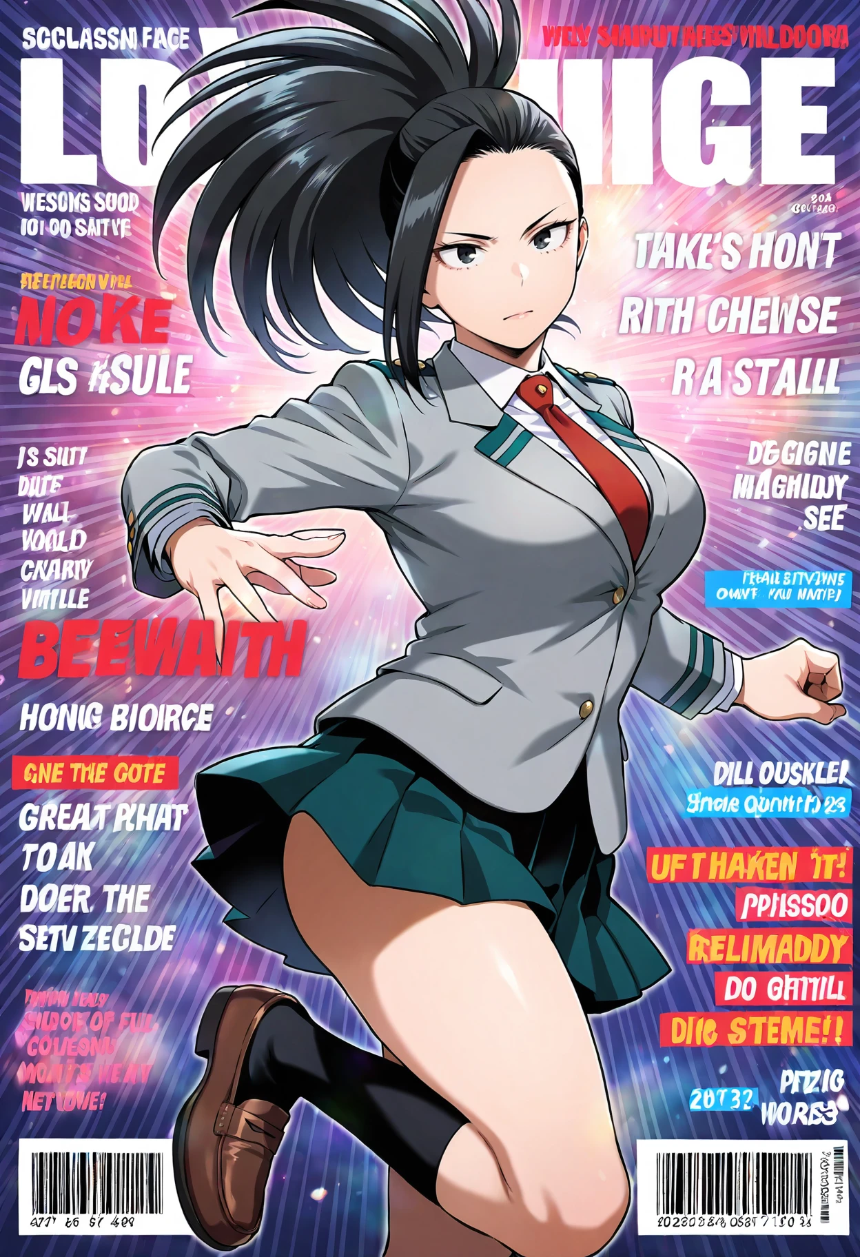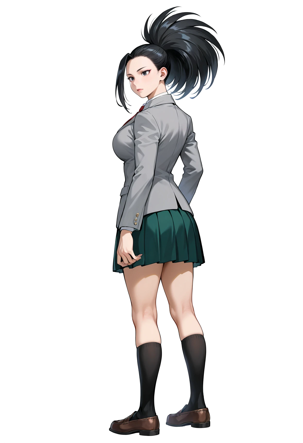 1girl,black hair,ponytail,black eyes,high ponytail,large breasts,bangs,wide ponytail,long hair