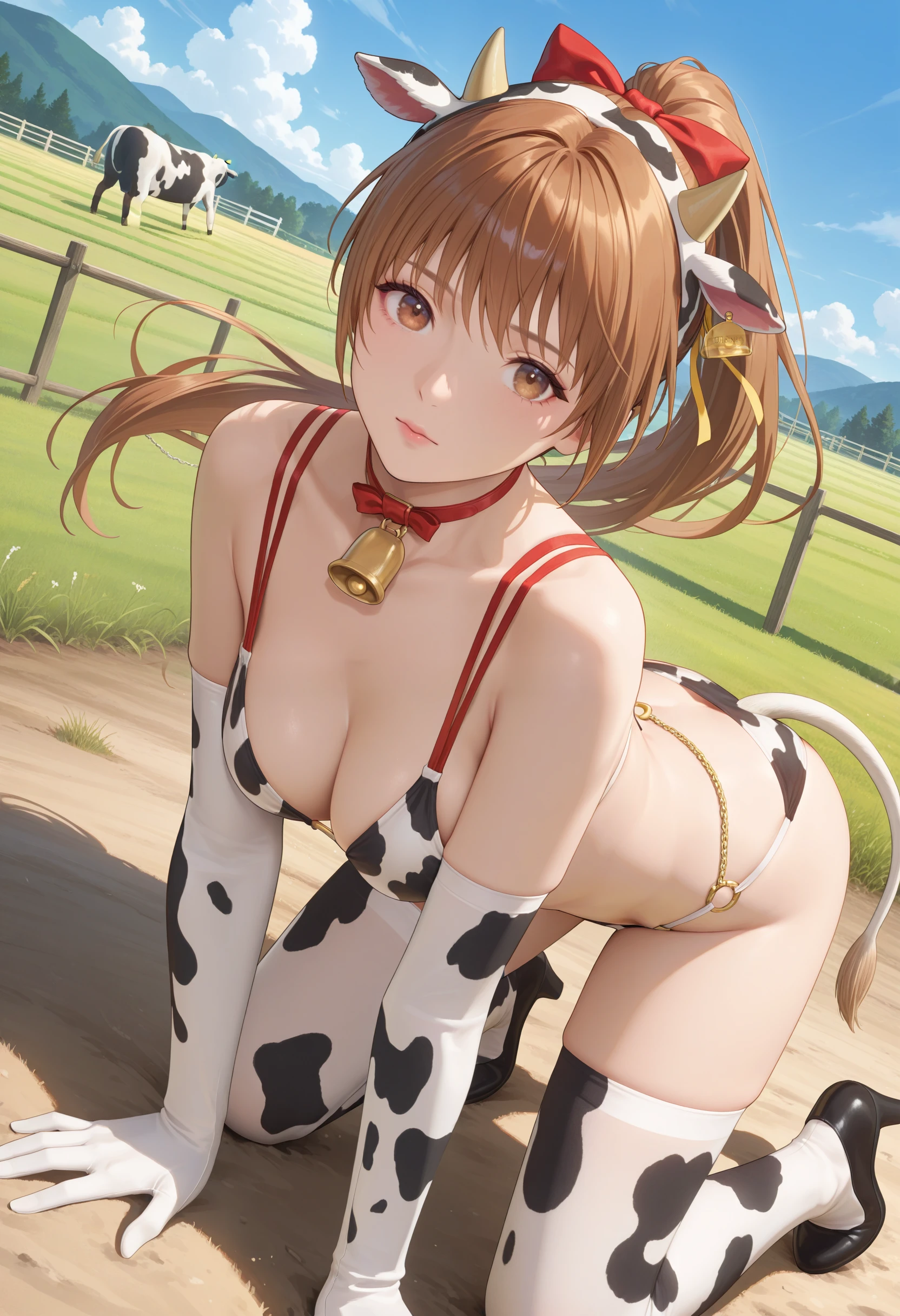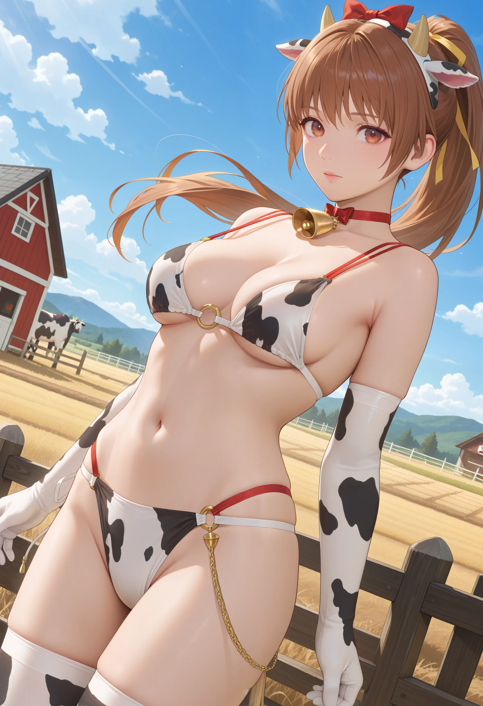 基本プロンプト:"MoomooBikini,red bow on head,cowbell,red bow choker,cow girl,elbow gloves,side chain,thighhighs,high heels".