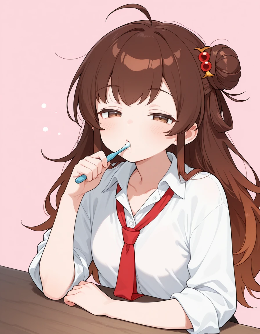 <lora:meg_raspberry-aru majo_s1-v2-ixl-anime-soralz:1>, meg raspberry (aru majo), long hair, brown hair, gradient hair, ahoge, hair ornament, single hair bun, hair bobbles, brown eyes