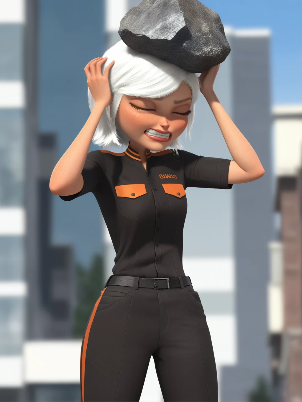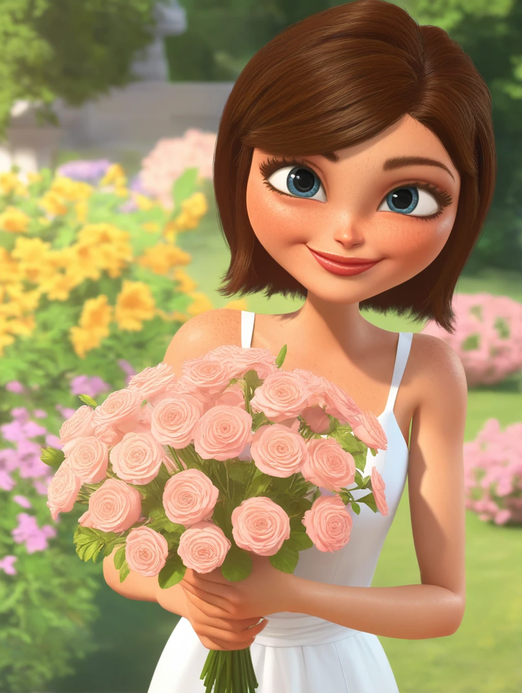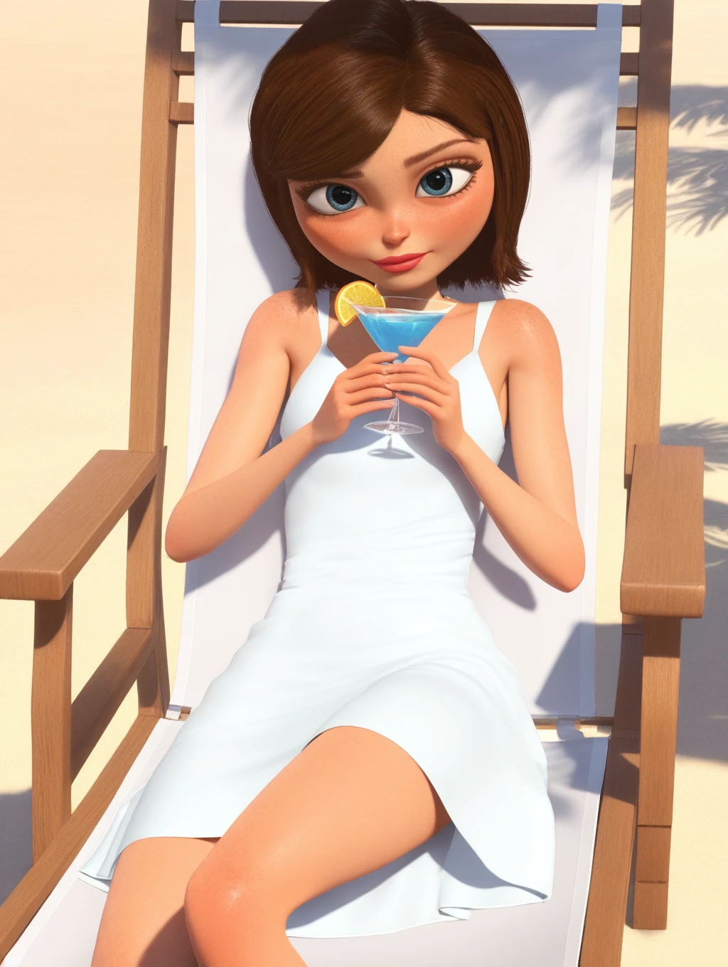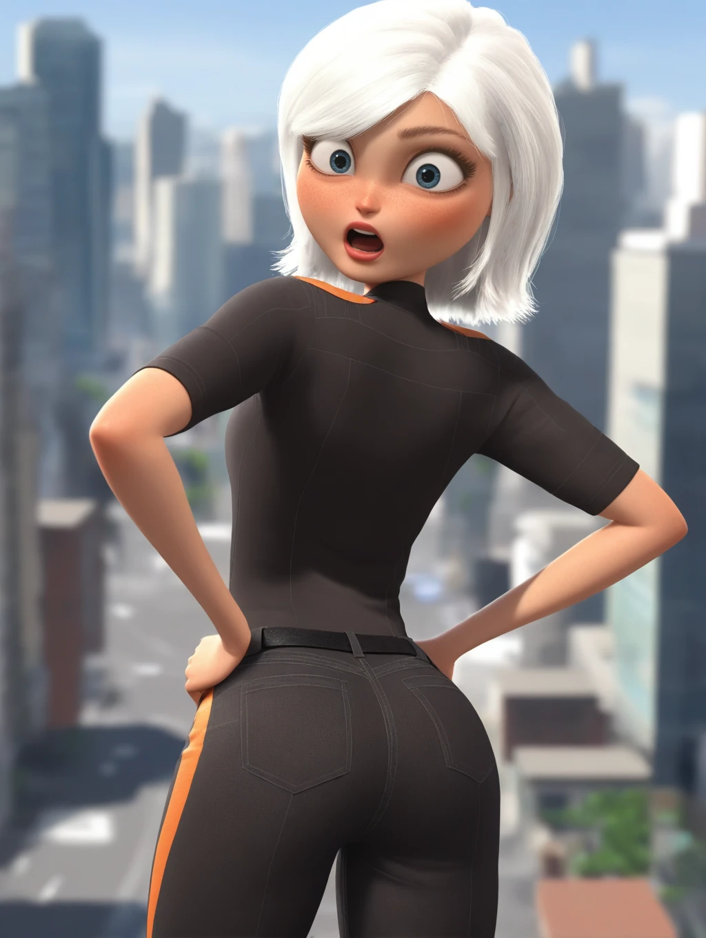 MvA_Susan, short hair, white hair, blue eyes, eyelashes, lips, 1girl, solo, swept bangs, freckles, official style, 3d, render