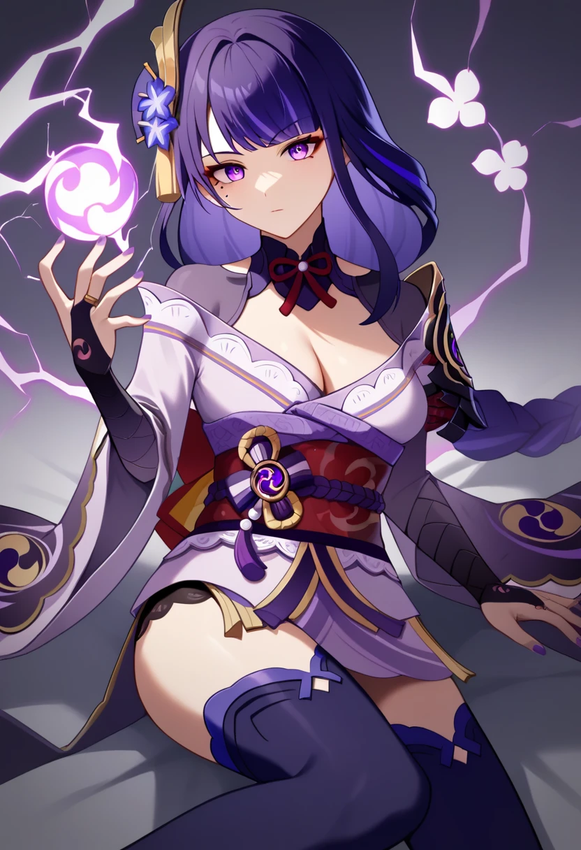 Trigger words: 1girl, raiden_shogun, kimono, obi, solo, mole, hair_ornament, armor, ribbon, shoulder_armor, breasts.