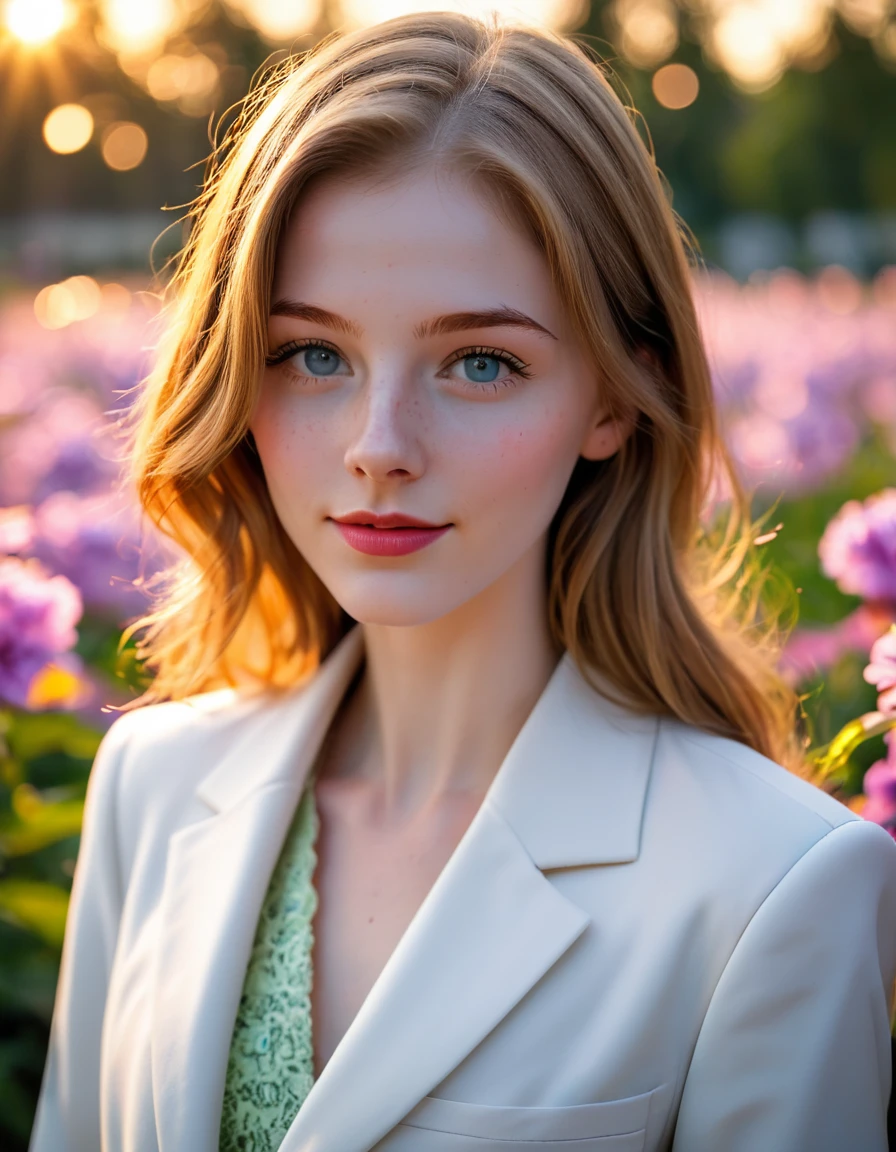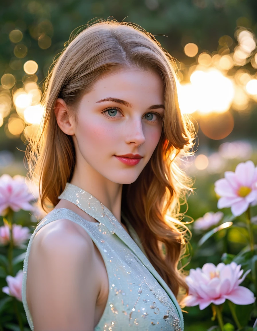 professional portrait, beautiful (cute, sweet) 22yo woman wearing a spring dress,