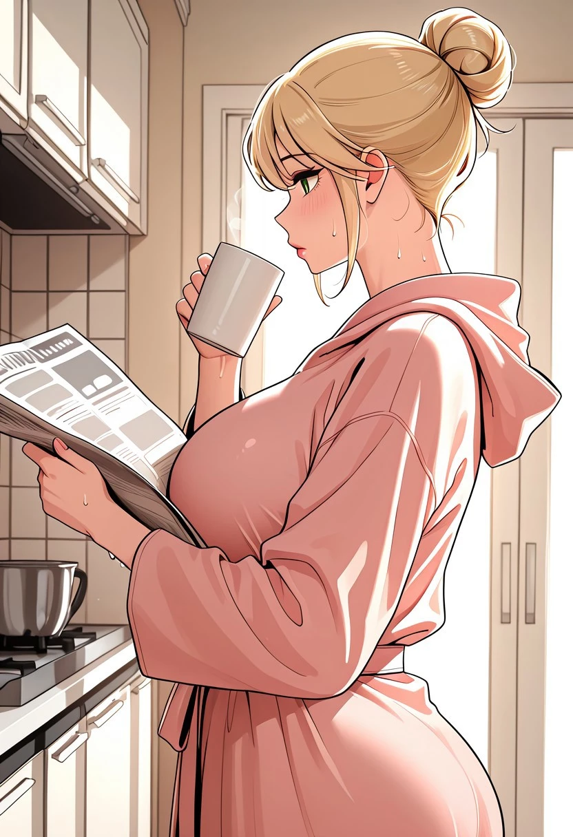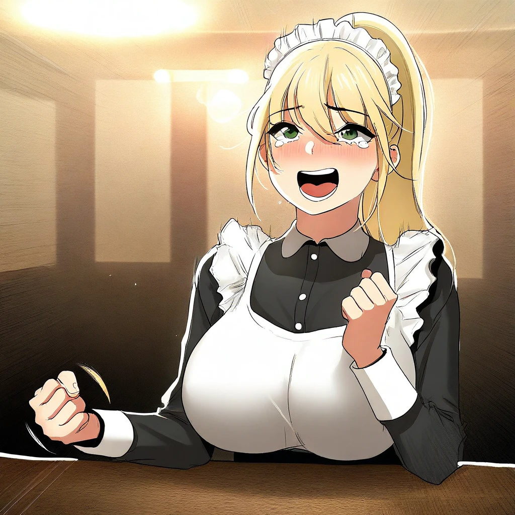h5_m1n-j4o3g ((h5_m1n-j4o3g : busty woman with long ponytail with bangs, and huge breasts, blonde hair, green eyes, beautiful fair skin, )) huge breasts, sexy lips, oversized natural breasts, skindentation, perky natural breasts, normal waist, wide hips, voluptuous body, curvy, hourglass body,