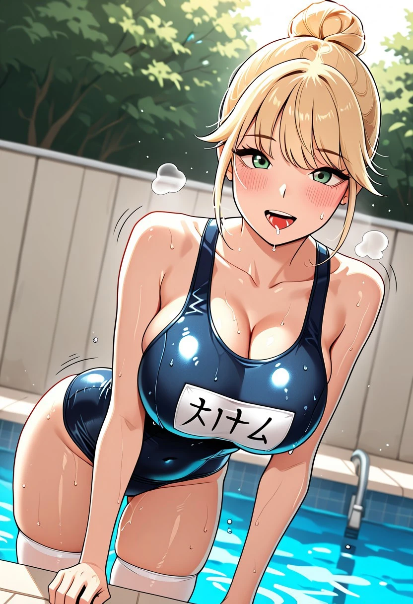 (( <lora:h5_m1n-j4o3g:1> , h5_m1n-j4o3g, beautiful green eyes, clear eyes, bright pupils, beautiful blonde hair, beautiful long ponytail, bangs, huge and shaggy breast, skindentation, huge breasts, perky breasts, thin waist, wide hips, beautiful skin, hourglass body, natural busty beauty, extraordinary beautiful woman, attractive woman, super sexy woman, lustful body, sexy woman with seductive obscene body, sensual body, voluptuous body, sexy beauty, ))