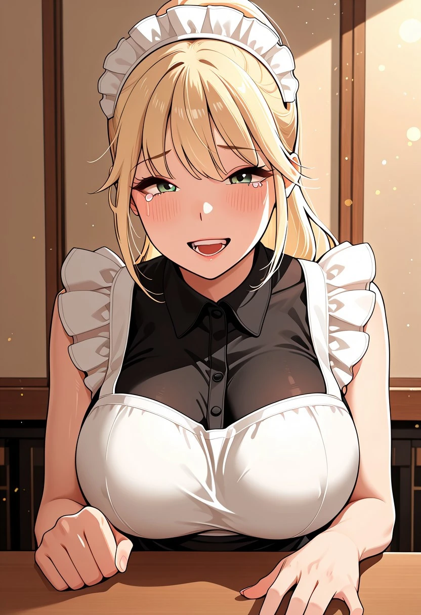 10. ((sexy frilled maid outfit, black dress, white maid apron, black skirt, frilled white maid headdress, )) black panties,