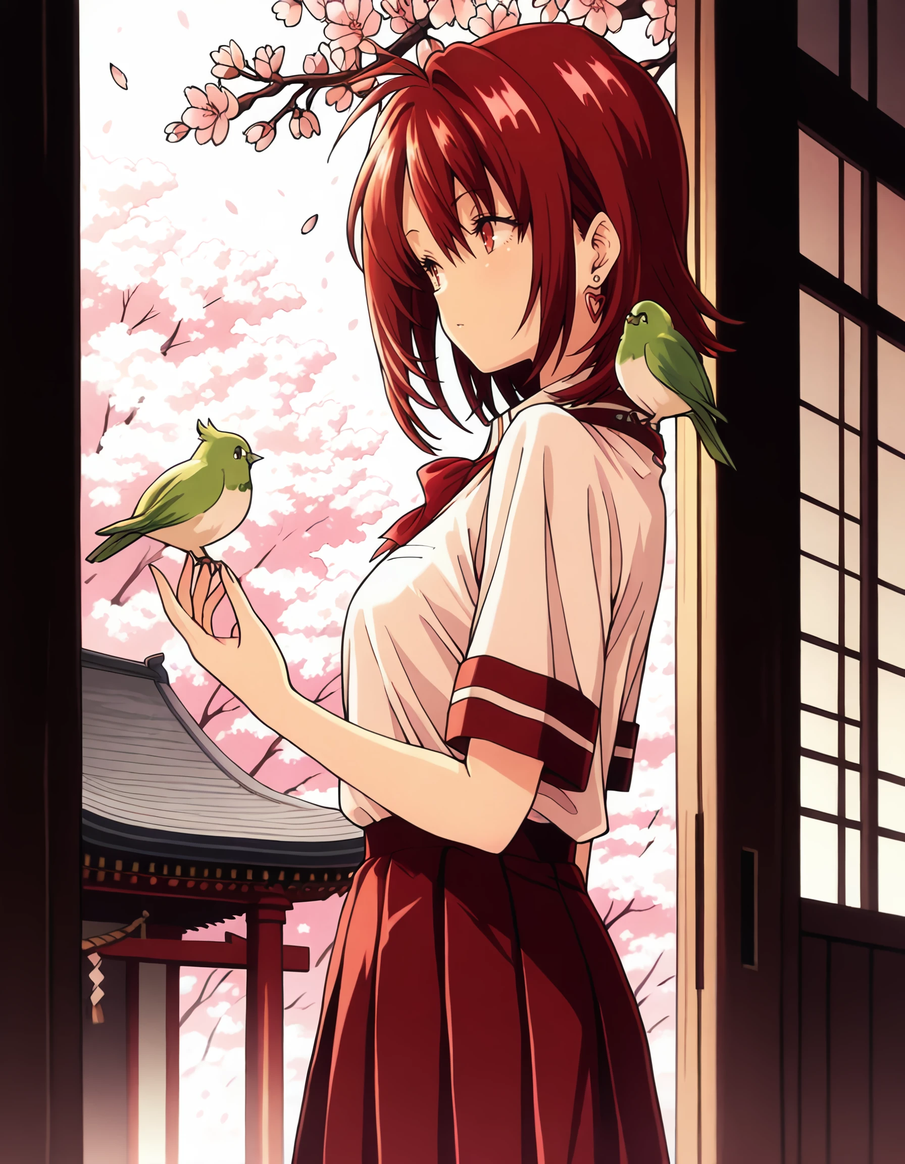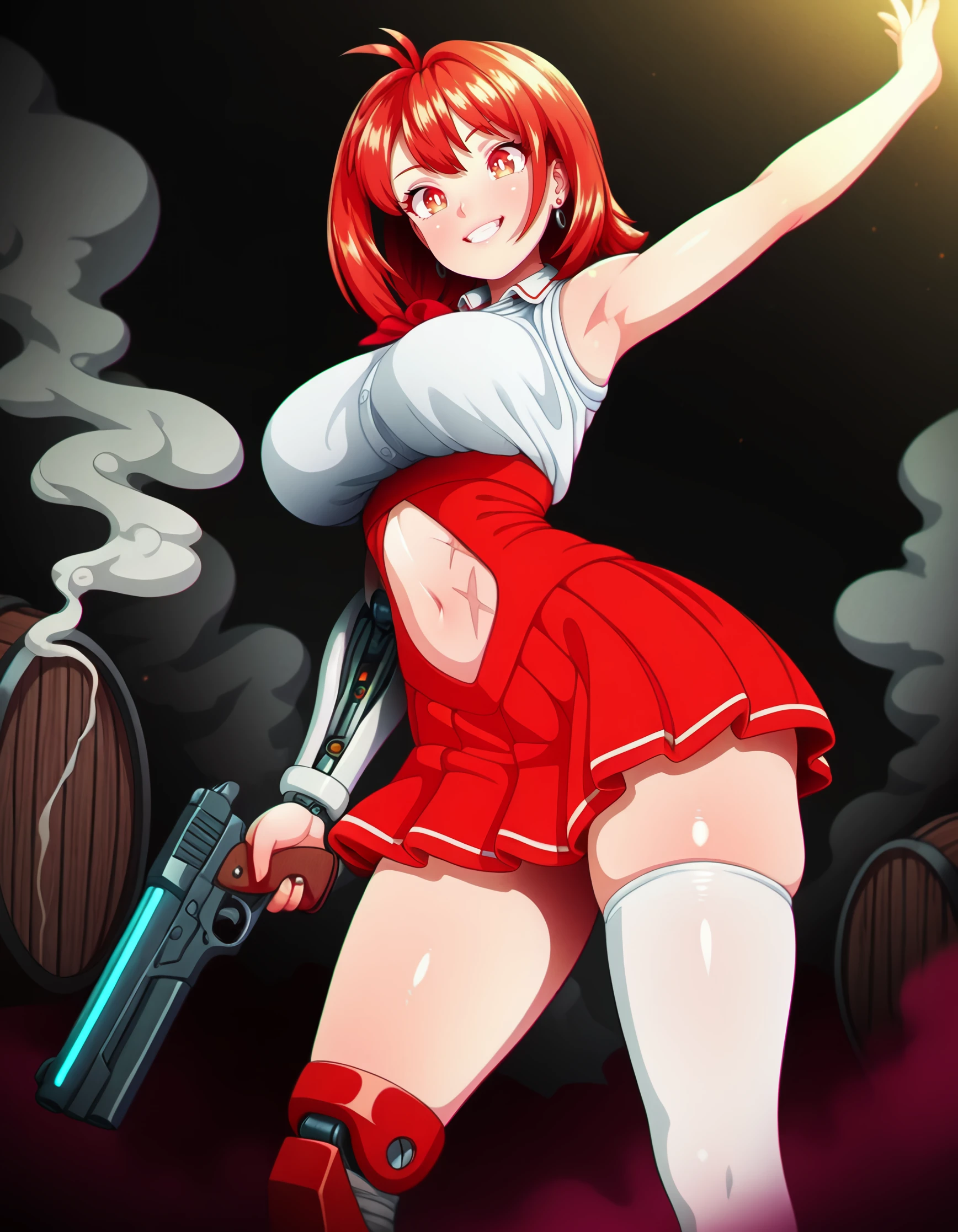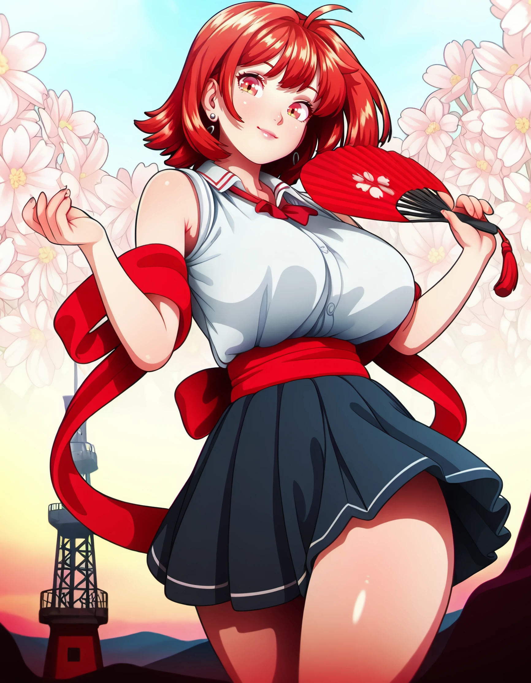 tsundero_-_yuuka_yoshii, red_hair, short_hair, jewelry, earrings, red_eyes
