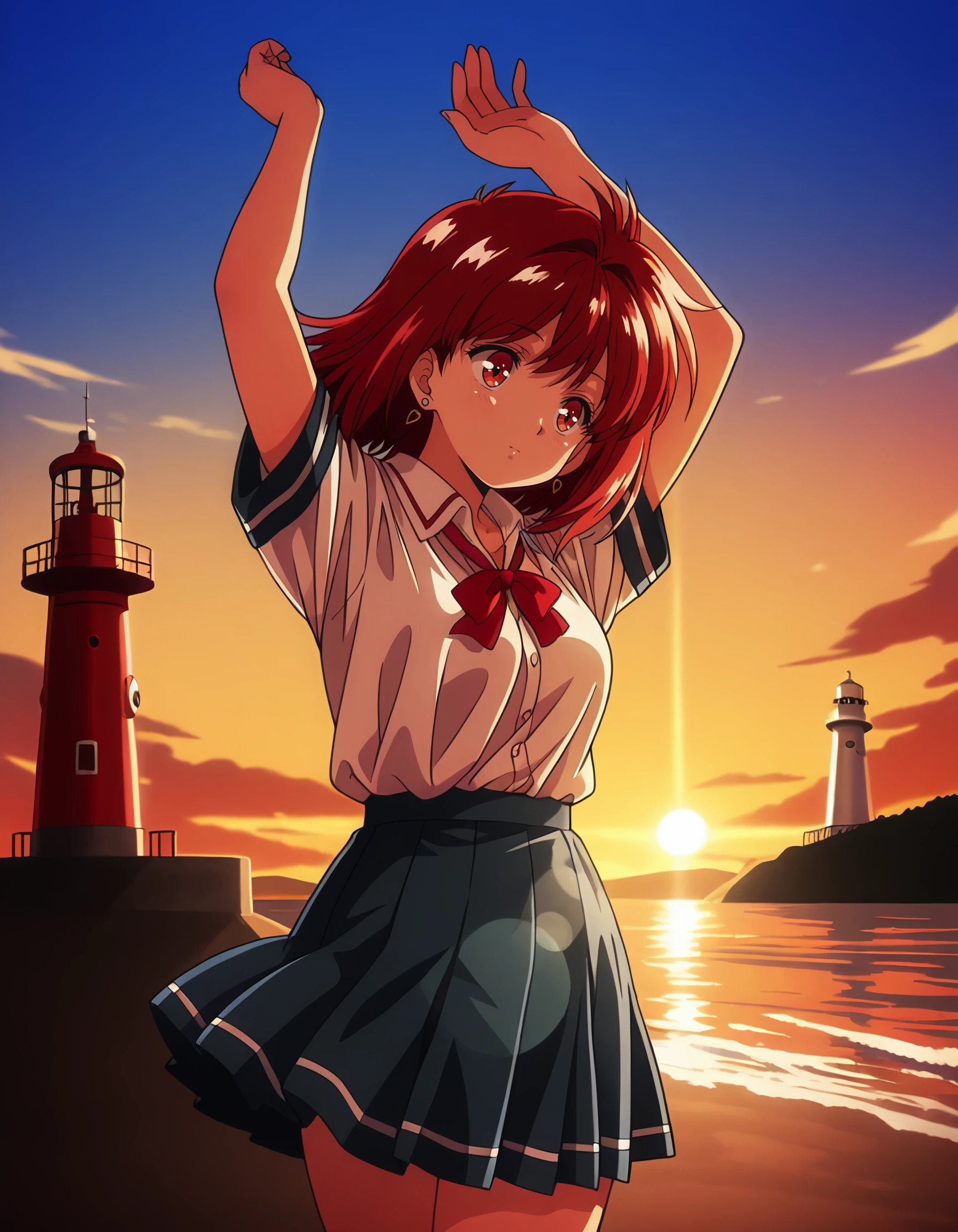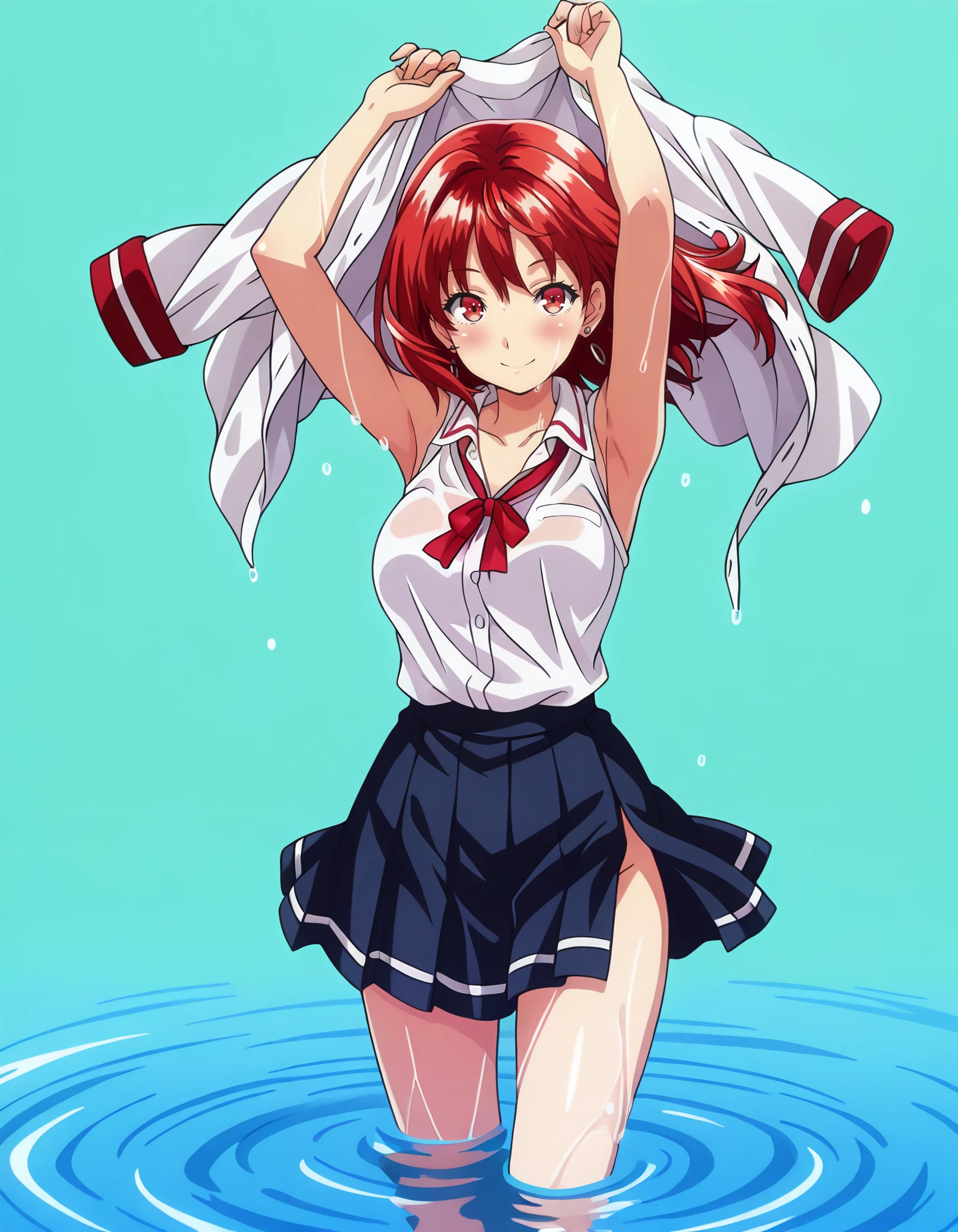 school_uniform, red_ribbon, white_shirt, pleated_skirt