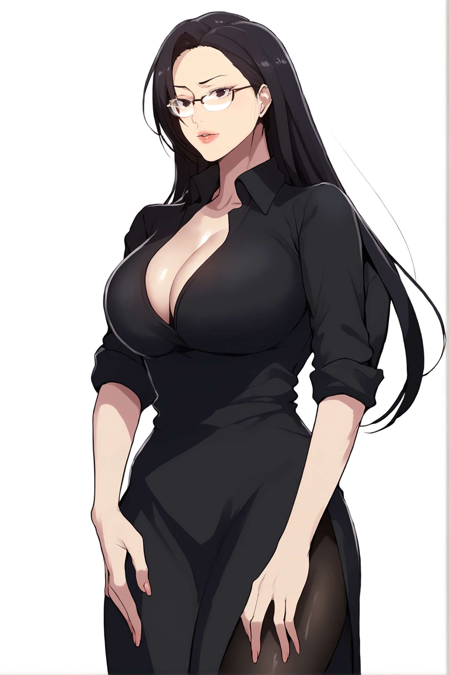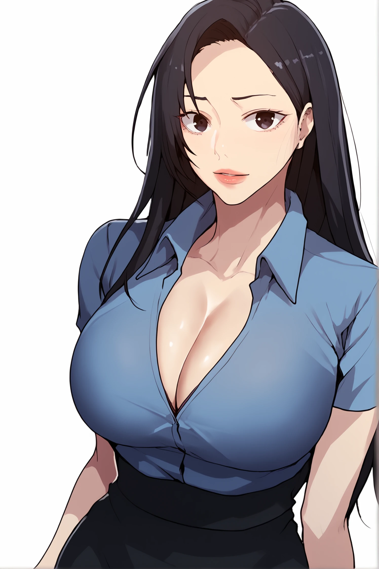 seolheedef, black eyes, black hair, long hair